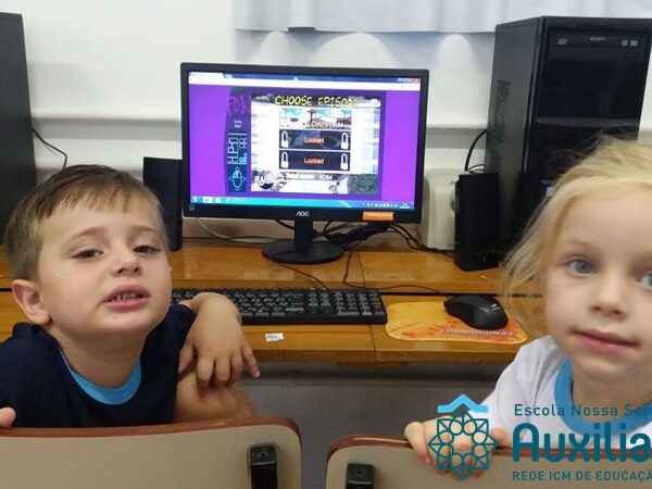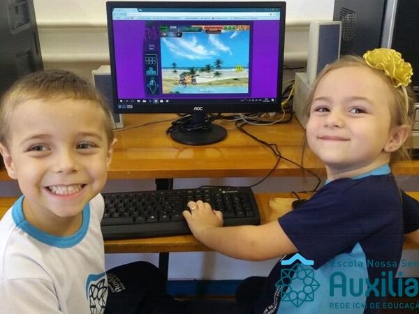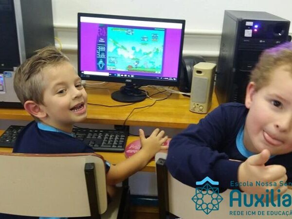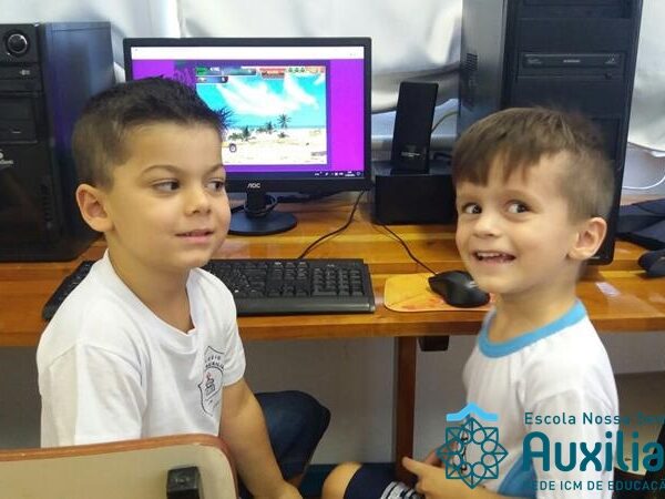 As turmas do Pré A estão adorando a novidade… aulas de informática. Toda semana as turmas se divertem e aprendem no Laboratório através de jogos. As aulas tem por objetivo: – Manusear o mouse, aprimorando sua motricidade fina; -Adquirir independência e autonomia no manuseio do computador, conscientizando-se dos cuidados que devemos ter para a preservação e manutenção dos equipamentos; -O saber “esperar sua vez” quando dividem o computador com o colega; -dentre outros objetivos… Confira!