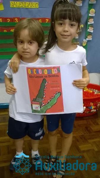 ☑ Releitura em dupla da História “Os crocodilos não lavam os dentes”. ➡😉Vejam! 👩🏫 Profe Marilene Pavan.