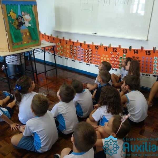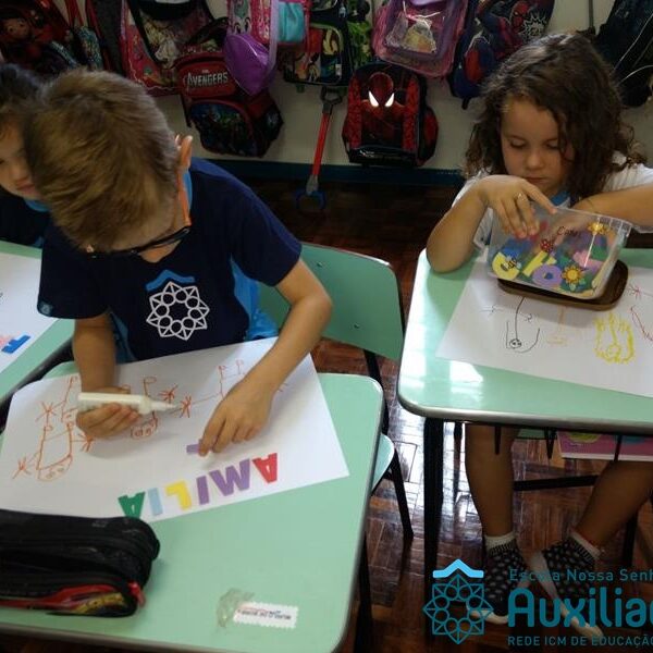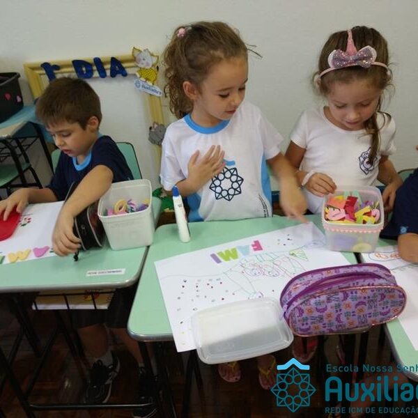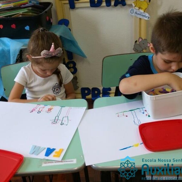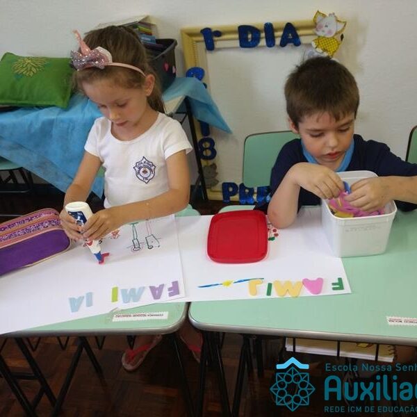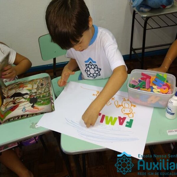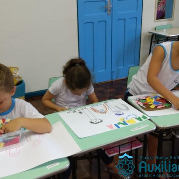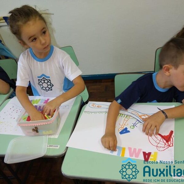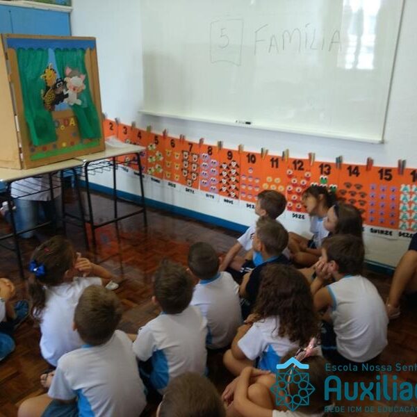 A literatura ensina através do encantamento, da fantasia e imaginação! A história “Família é feita de amor” contada através de um teatro de palitoches, nos mostrou que não importa como é constituída uma família, o que realmente importa é o amor que nela existe. Após apreciarem a história as crianças do Pré B desenharam suas famílias e tiveram o primeiro contato com o alfabeto móvel. Foi uma tarde muito gostosa e de muito aprendizado!