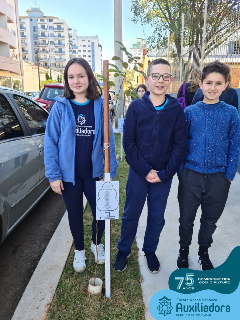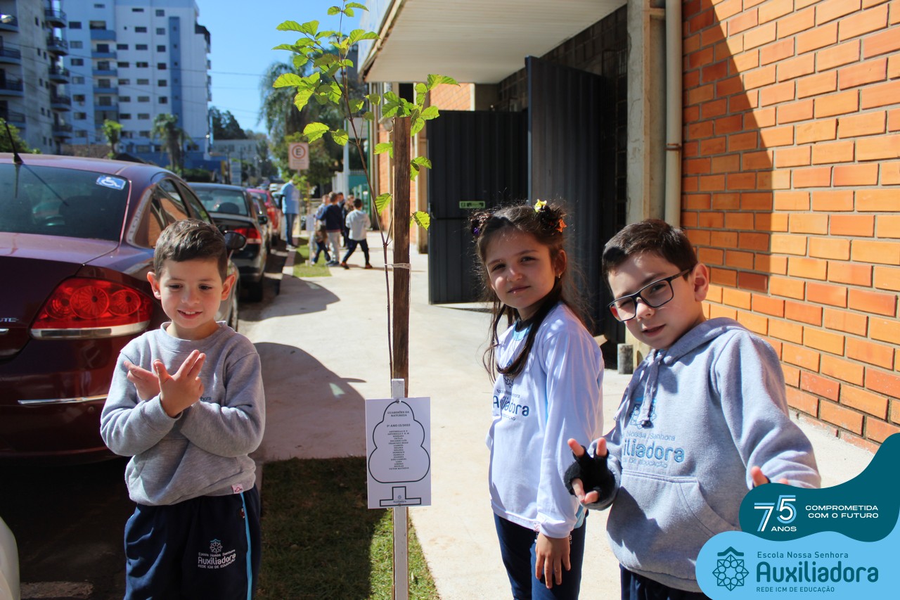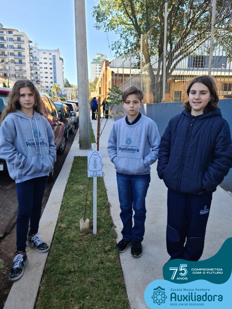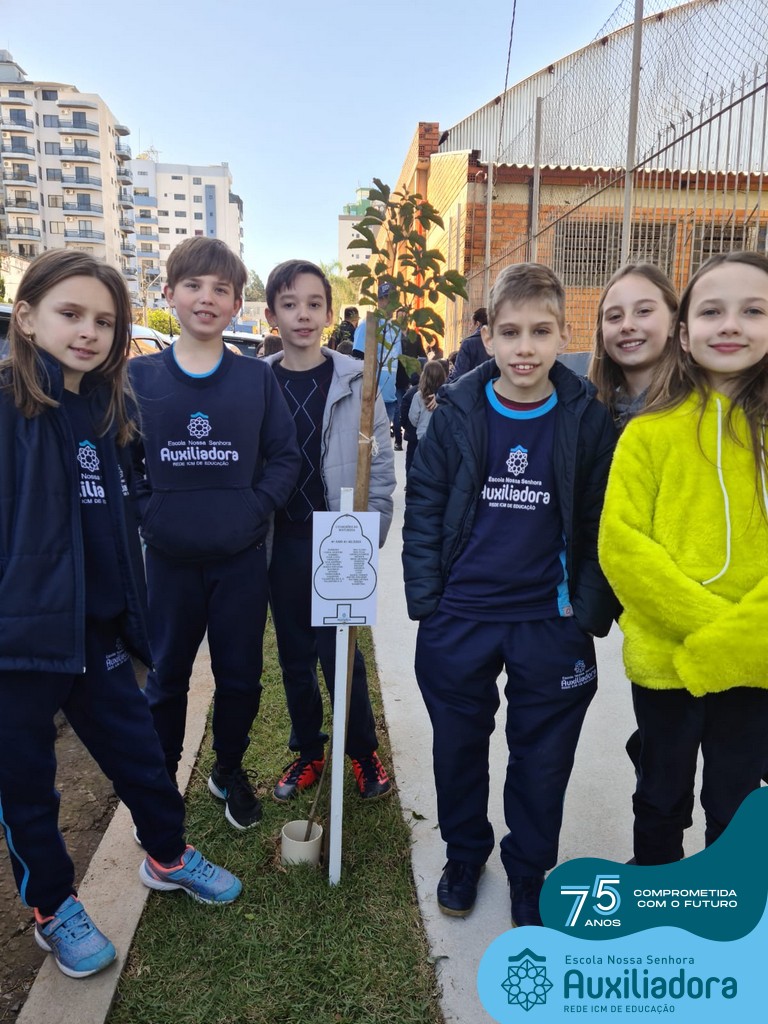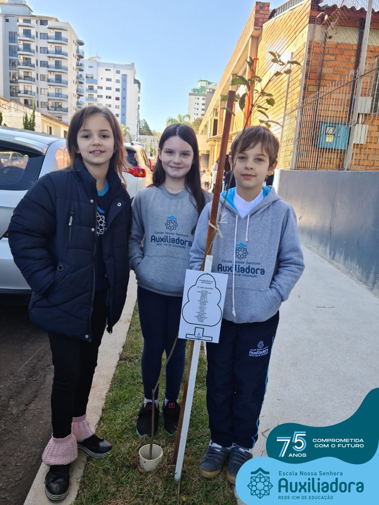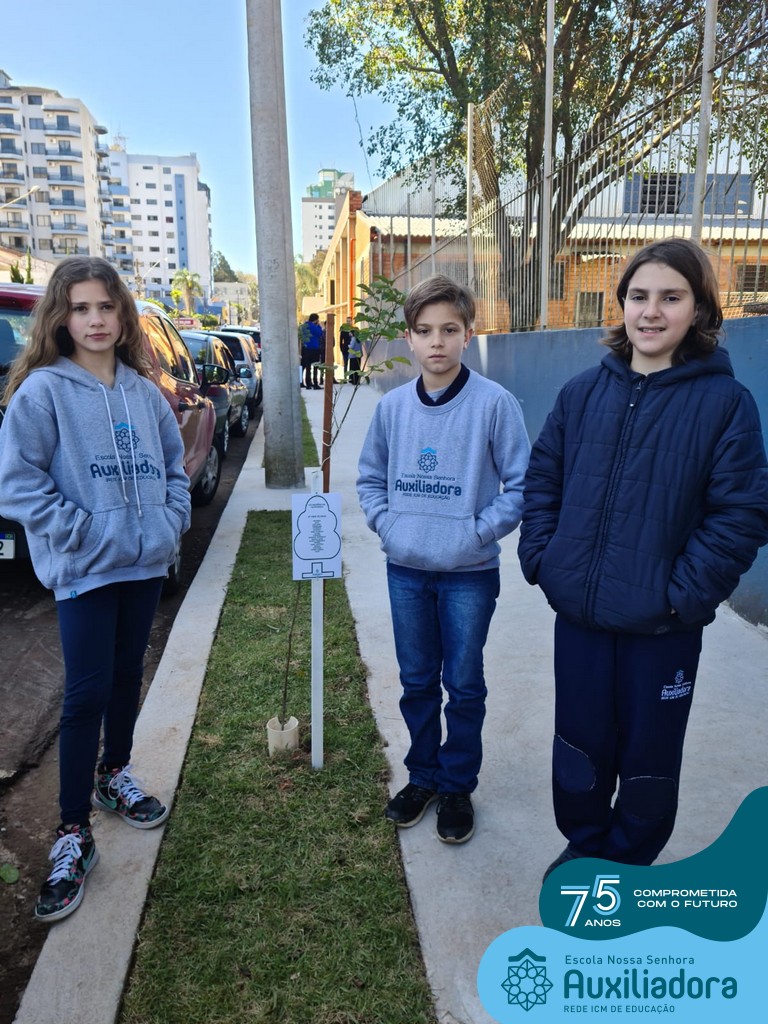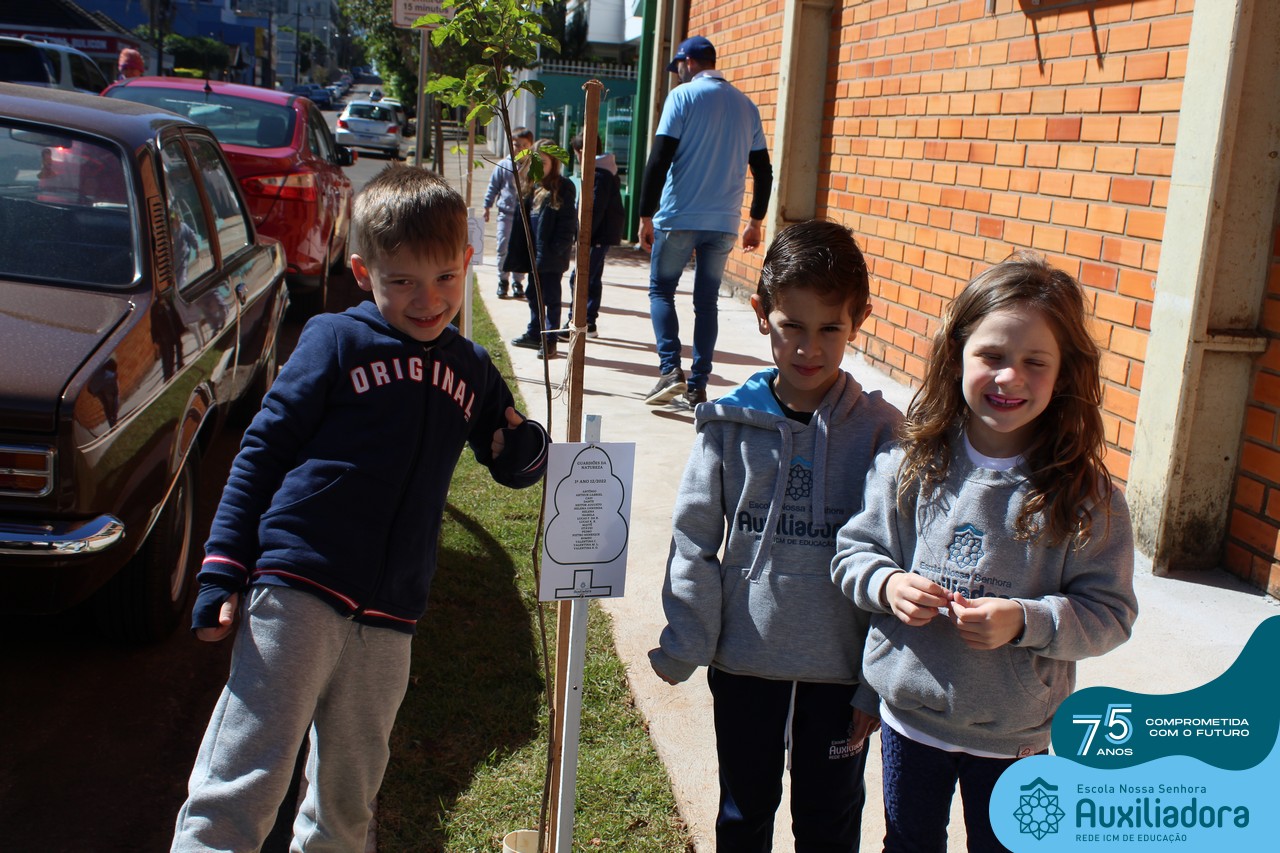 A ocasião contou com a presença dos alunos da Escola Nossa Senhora Auxiliadora, do 1° ao 5° ano, que “adotaram” as árvores plantadas.