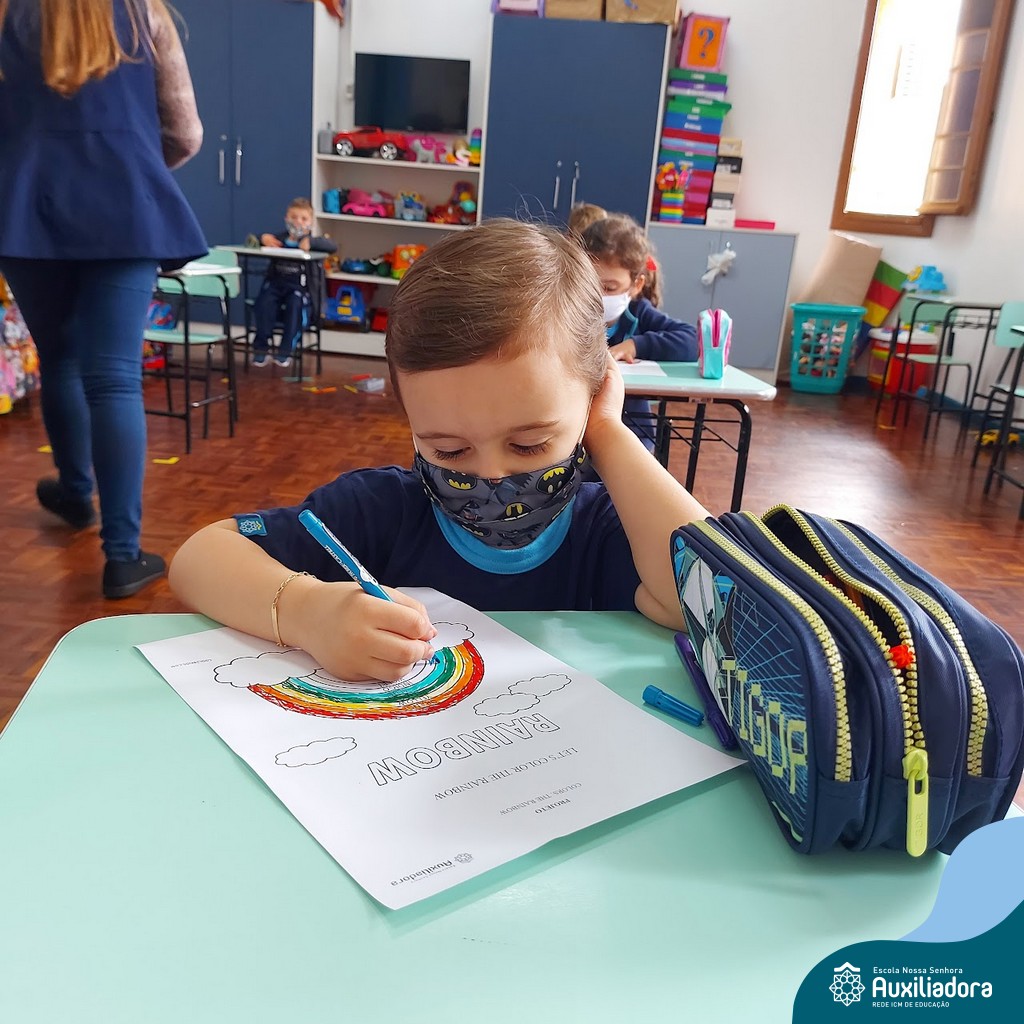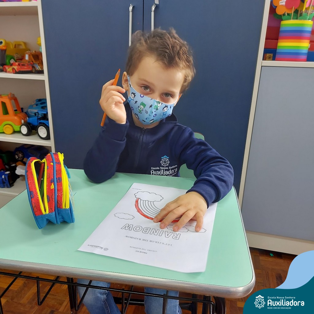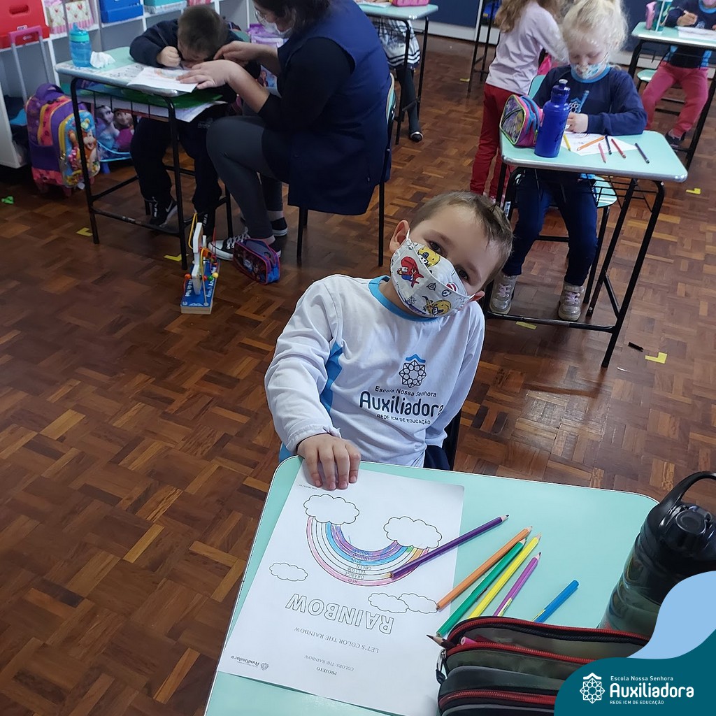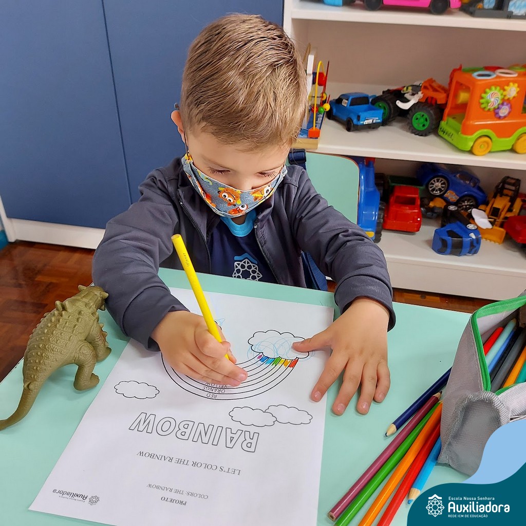 Com o objetivo de refletir sobre de onde vem e do que são feitas as cores do arco-íris os alunos do Pré 1 B foram convidados a observar e pesquisar sobre: