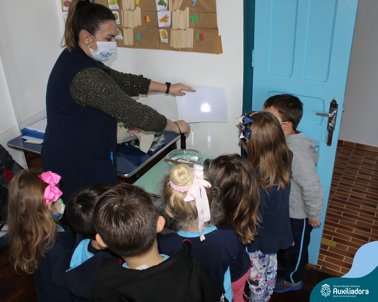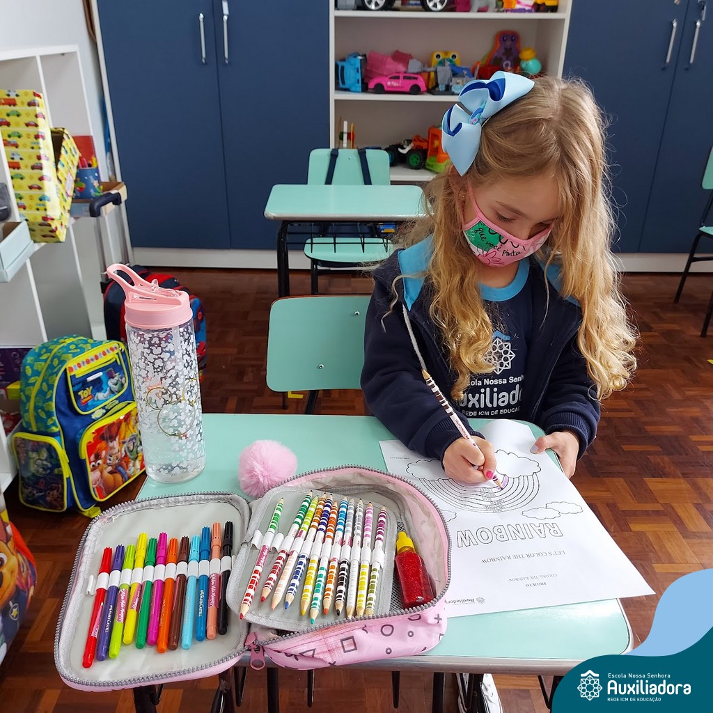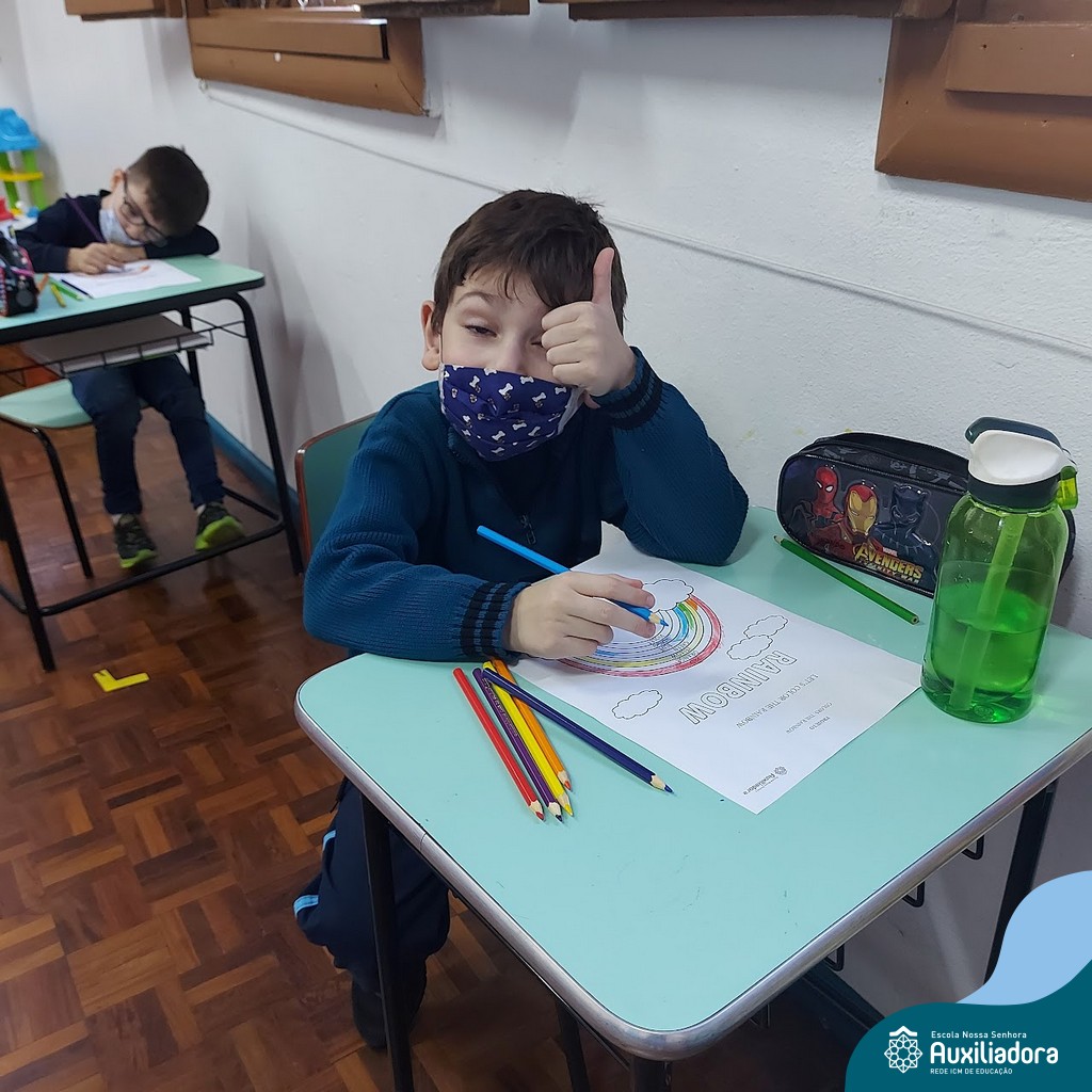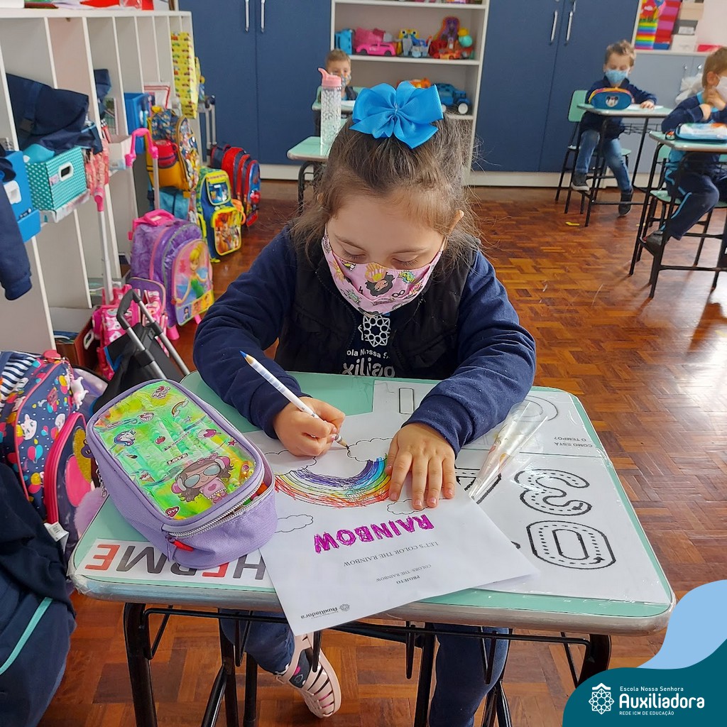 Com o objetivo de refletir sobre de onde vem e do que são feitas as cores do arco-íris os alunos do Pré 1 B foram convidados a observar e pesquisar sobre: