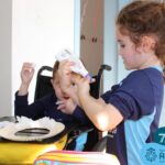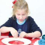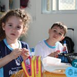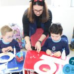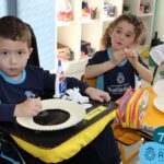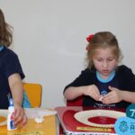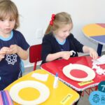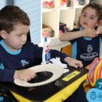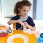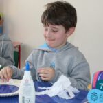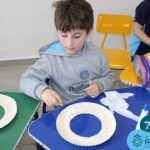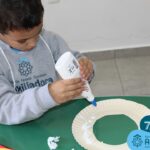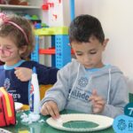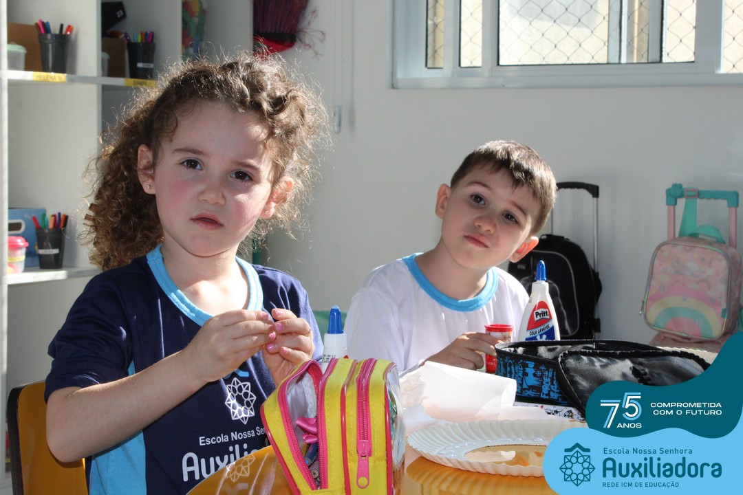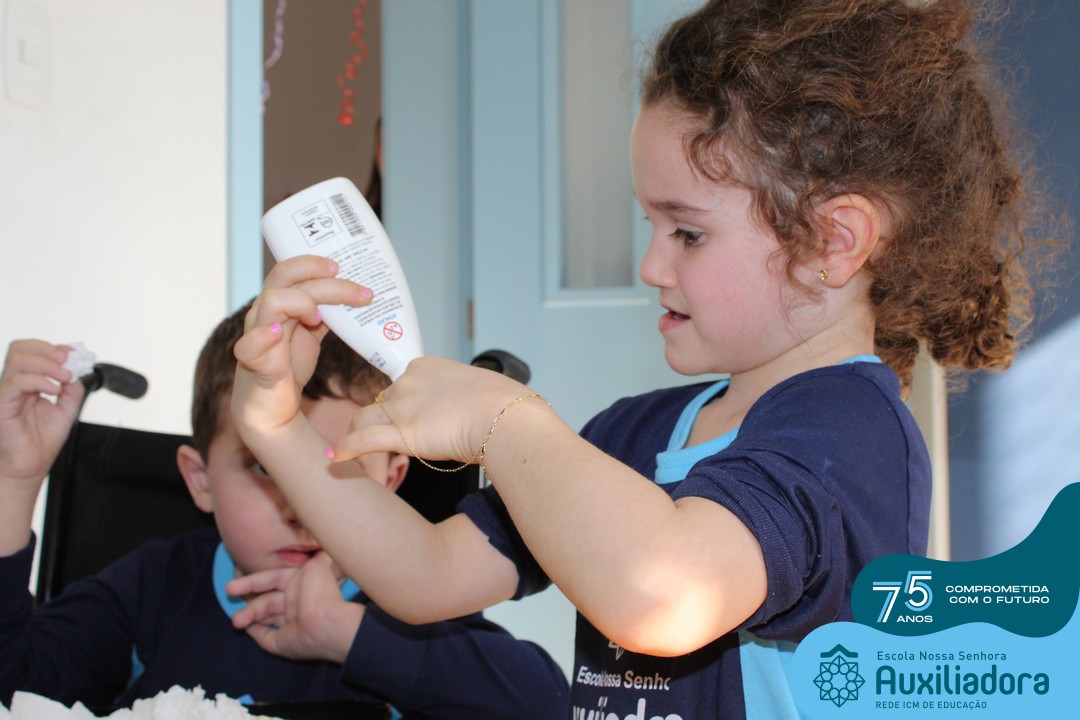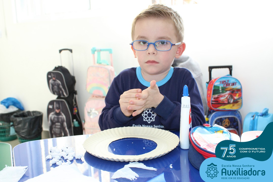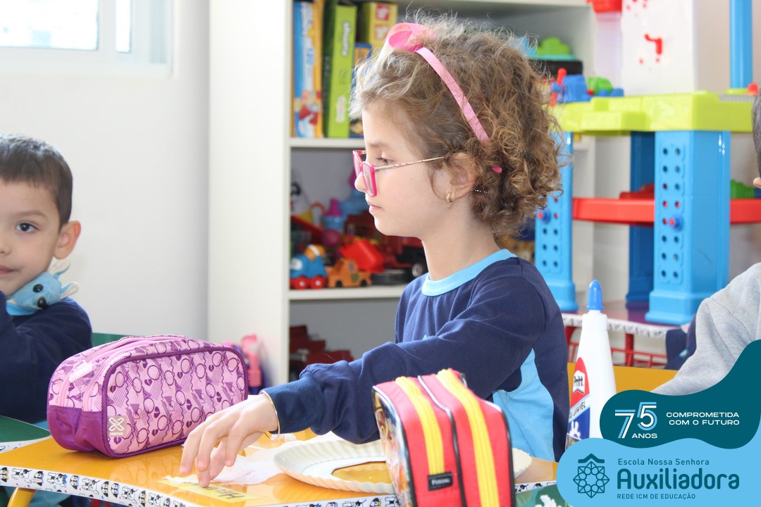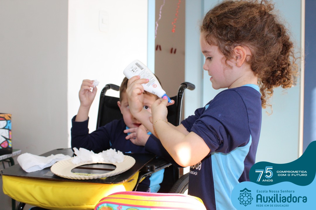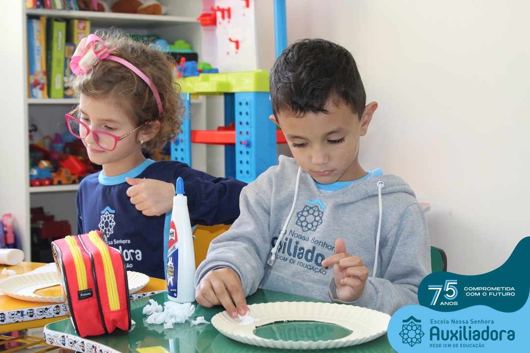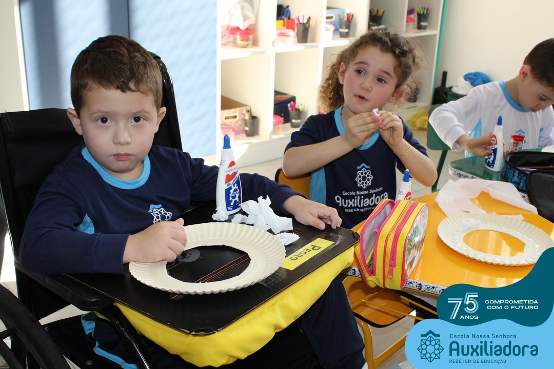 Durante a atividade, exercitamos o vocabulário, a coordenação motora e a ludicidade, pois aprendemos como nomear o animal em Inglês, fizemos bolinhas de papel para preencher a máscara deixando-a com a textura fofa como a lã da ovelha e também, nos divertimos imitando o bichinho.