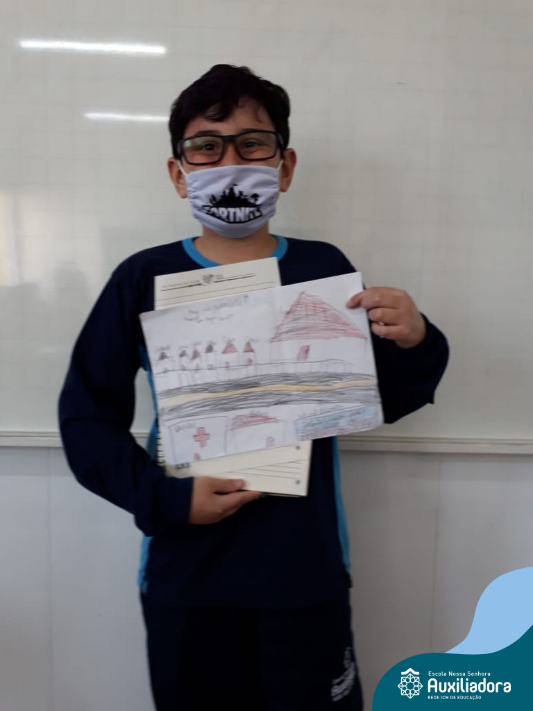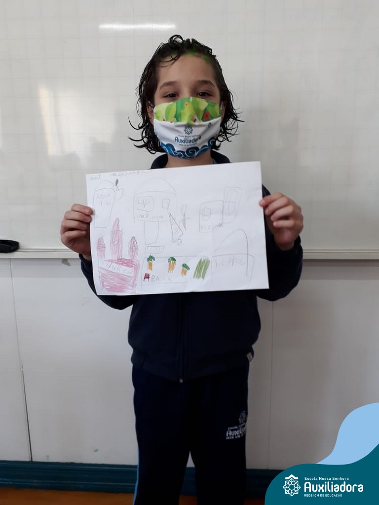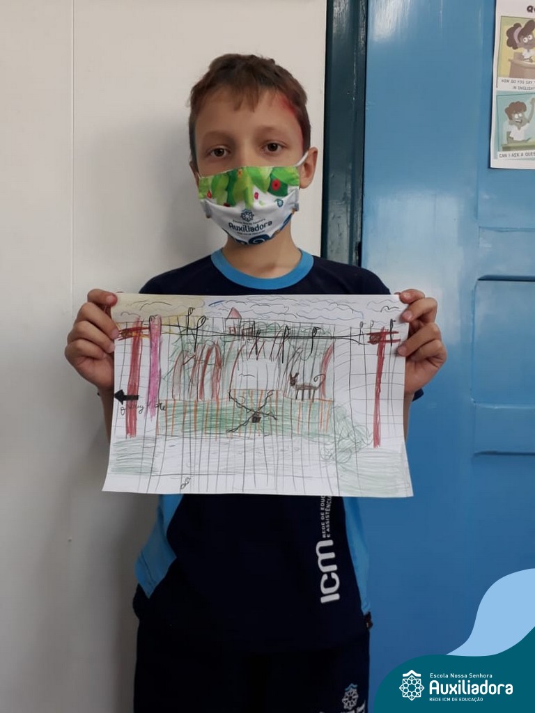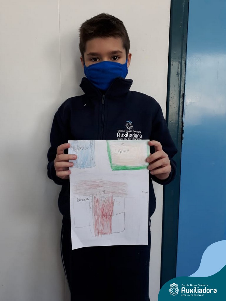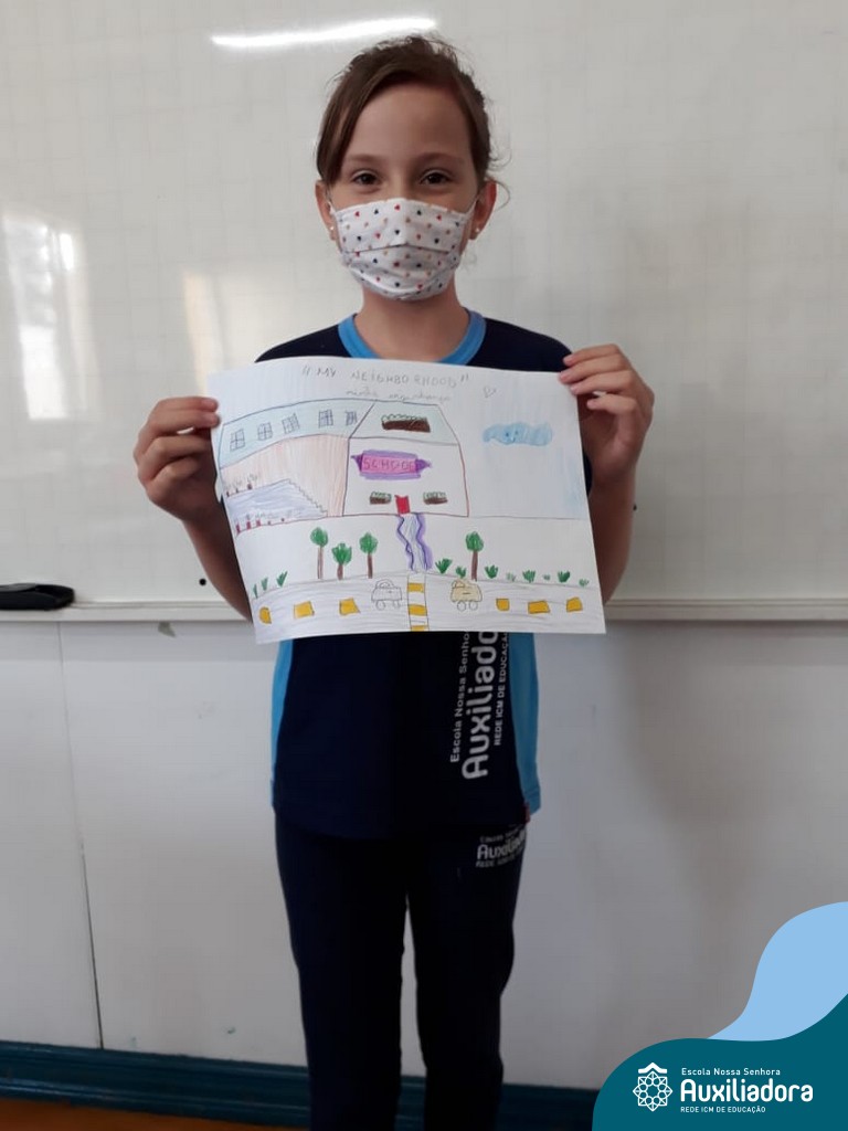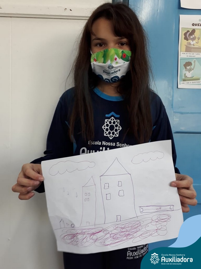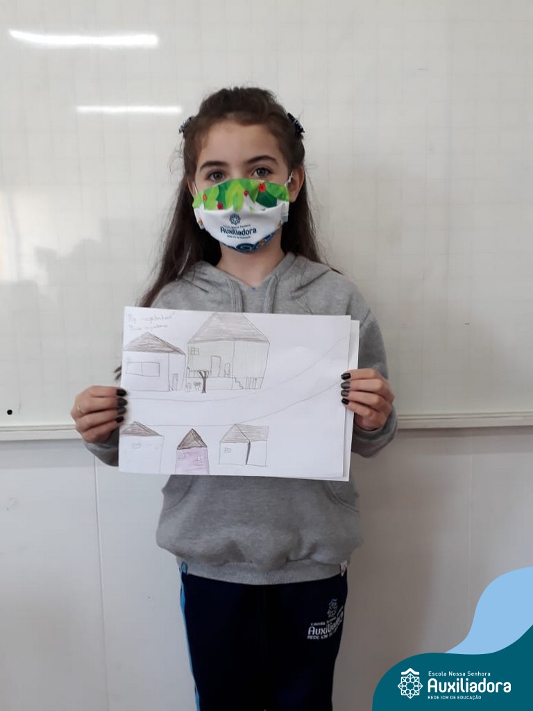 As turmas 31 e 32, na disciplina de Inglês, com o teacher Diego, fizeram atividades sobre “My neighborhood” – Minha vizinhança. Como forma de aprender o nome dos espaços que compõem a cidade, os alunos desenharam o lugar onde vivem e os nomearam em Inglês.