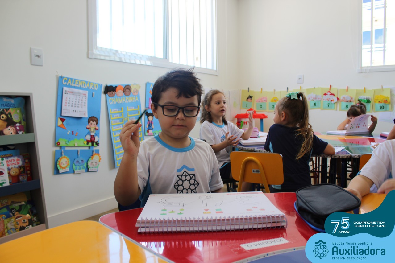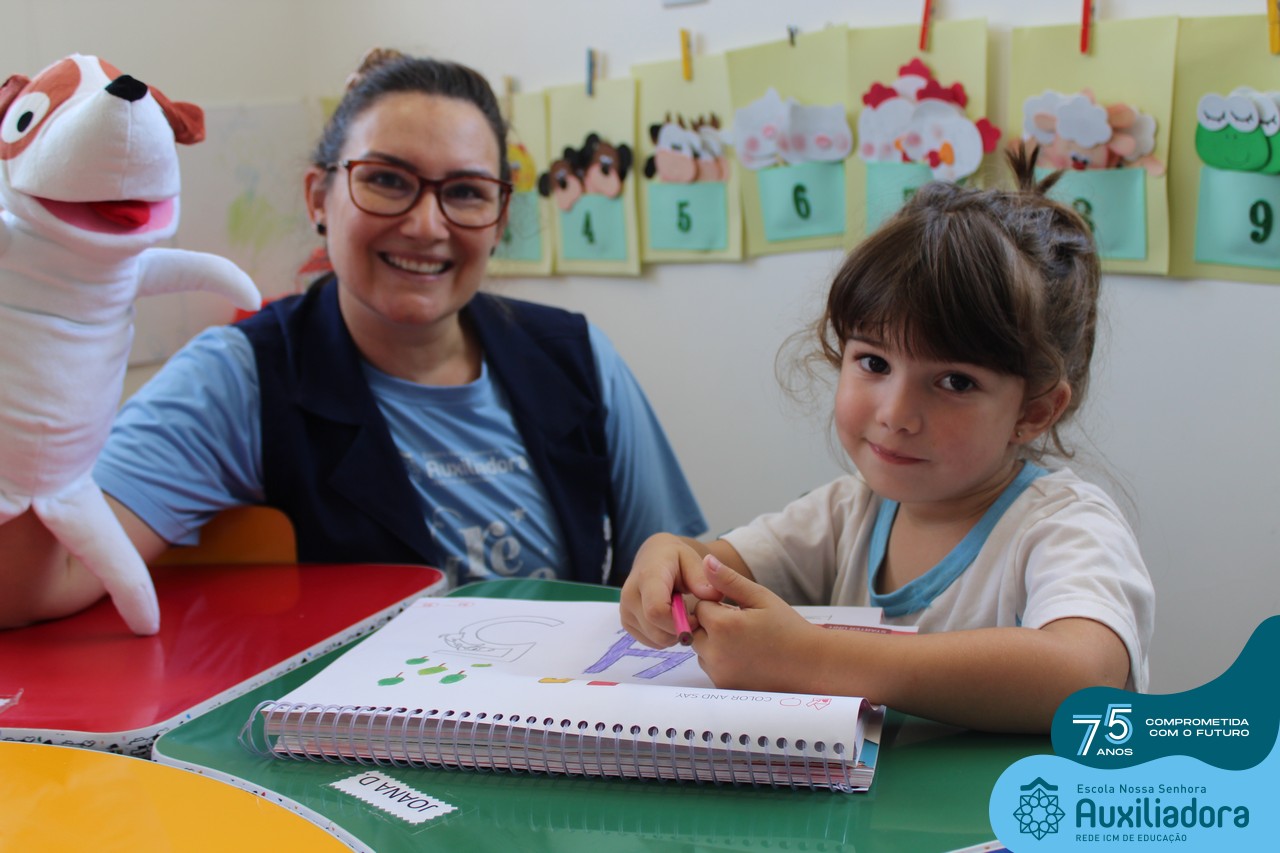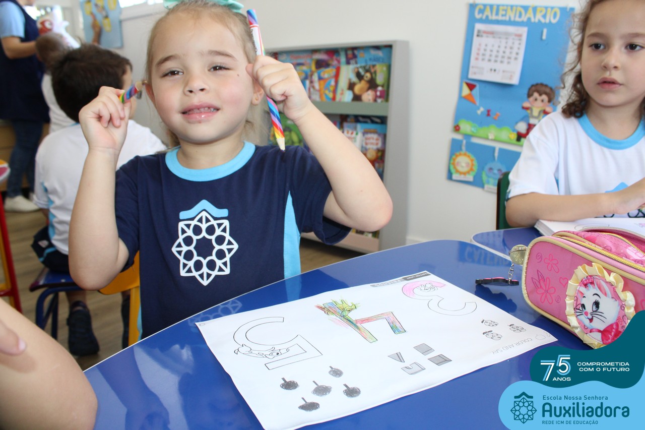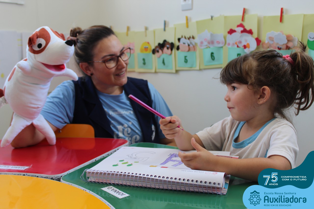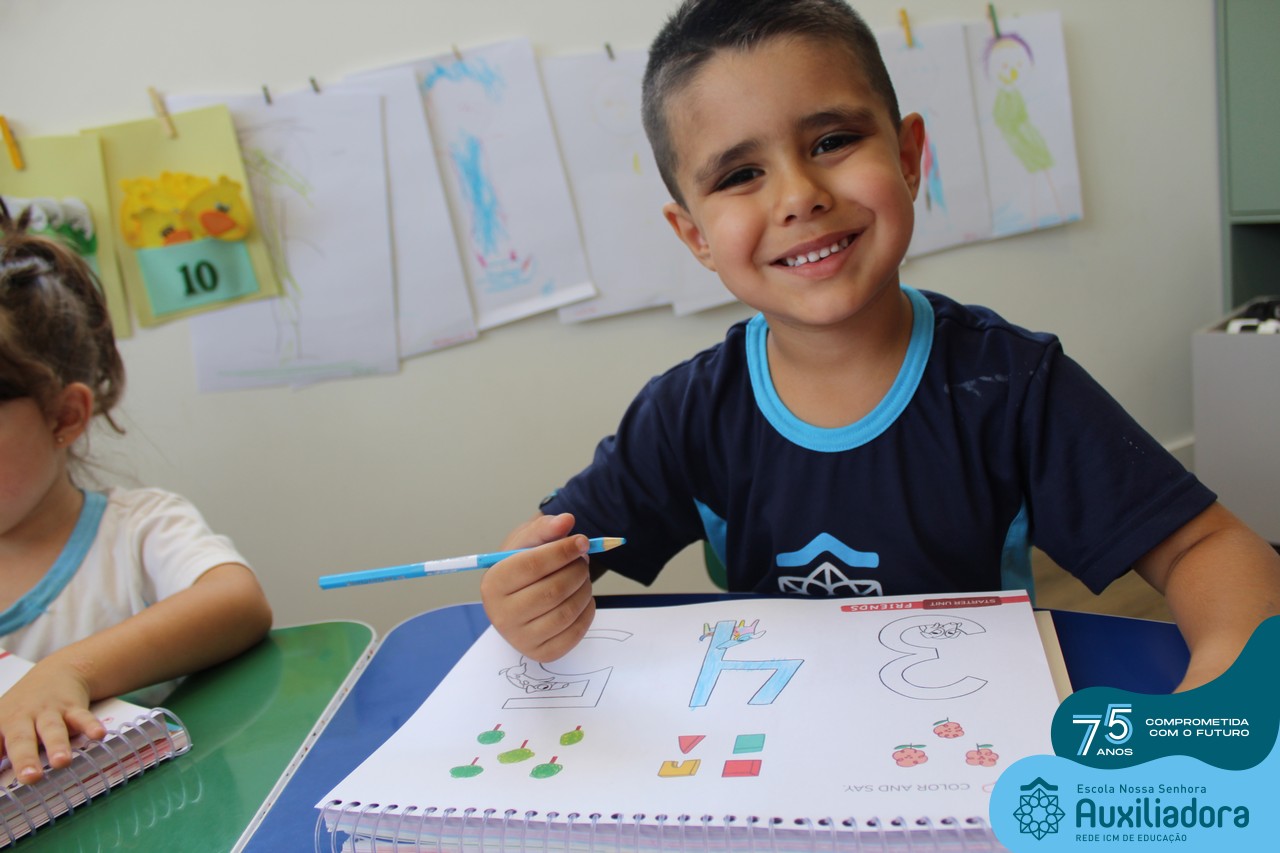 Essa foi a aula ministrada para os alunos do Pré 1 da Escola Auxiliadora durante as aulas de língua inglesa. Eles aprenderam sobre si mesmos e sua família por meio de momentos expositivos, jogos e atividades que tem como propósito aproximar a língua estrangeira ao cotidiano das crianças, tornando a aquisição da nova língua bem mais significativa.