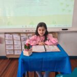 Ao se prepararem para o discurso, as crianças estudaram critérios importantes para uma boa apresentação em público, desde a entonação, expressão corporal, olhar comunicativo com o público, fala clara e objetiva.