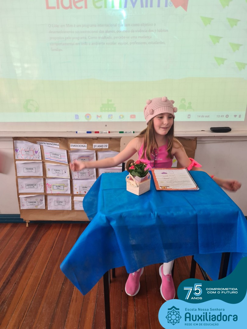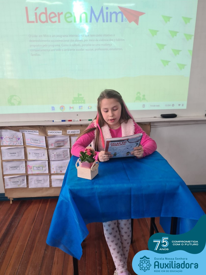Ao se prepararem para o discurso, as crianças estudaram critérios importantes para uma boa apresentação em público, desde a entonação, expressão corporal, olhar comunicativo com o público, fala clara e objetiva.
