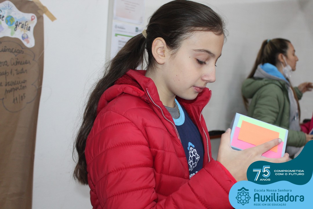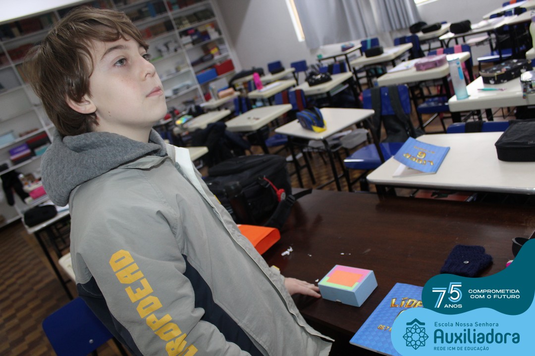 Além disso, busca florescer o potencial de cada criança. Neste sentido, os alunos do 6° ano vivenciaram a experiência de entender o que é ser líder. Foram questionados e instigados a escolher uma pessoa que se apresentasse como líder para eles, e, após, através do diálogo, explicarem o motivo da escolha. Ao final da dinâmica, os alunos visualizaram o líder que a professora havia escolhido. Dentro de uma caixa havia um espelho e, ao abrirem a caixa, refletia o rosto de cada aluno. Ao final, a turma socializou que qualquer pessoa pode exercer a liderança, com mudanças e hábitos, que serão trabalhados através do programa.