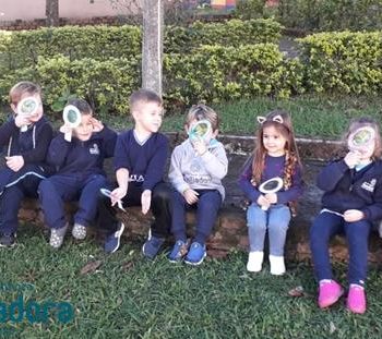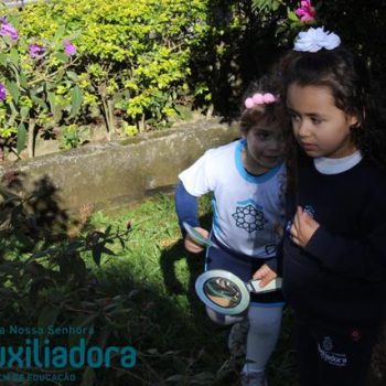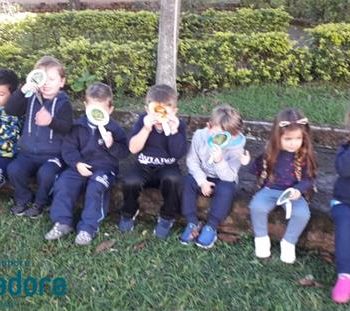 🦋🐛Foi realizada a atividade do borboletário, demonstrada a metamorfose das borboletas e depois a procura das mesmas com as lupas.