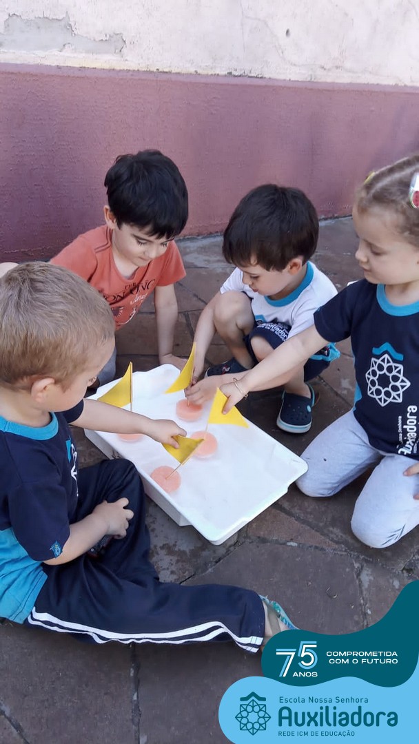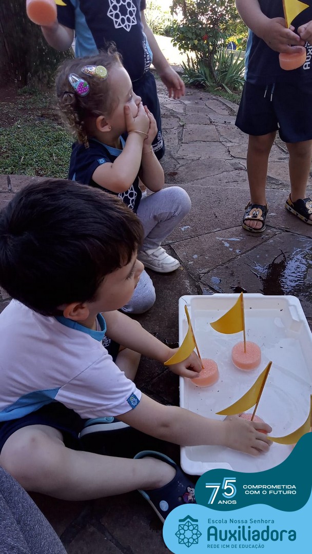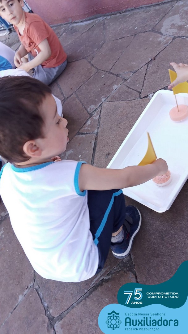 ✅ As turmas do Maternal 1 realizaram uma atividade prática sobre o Barco⛵, meio de transporte aquático.