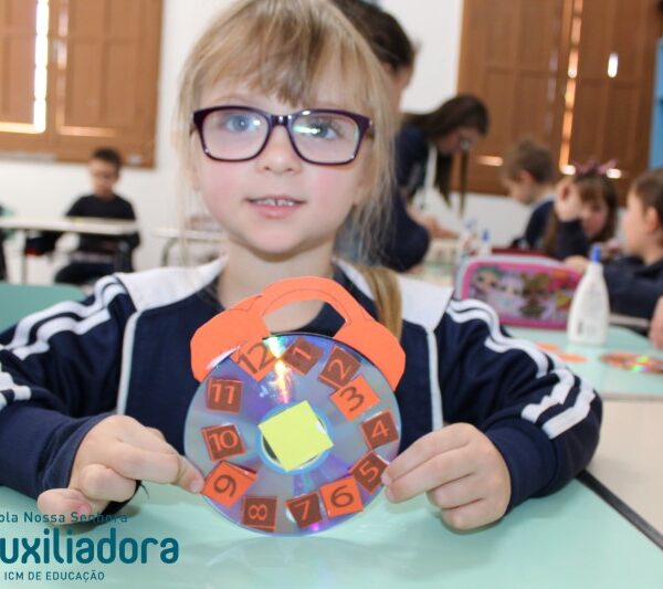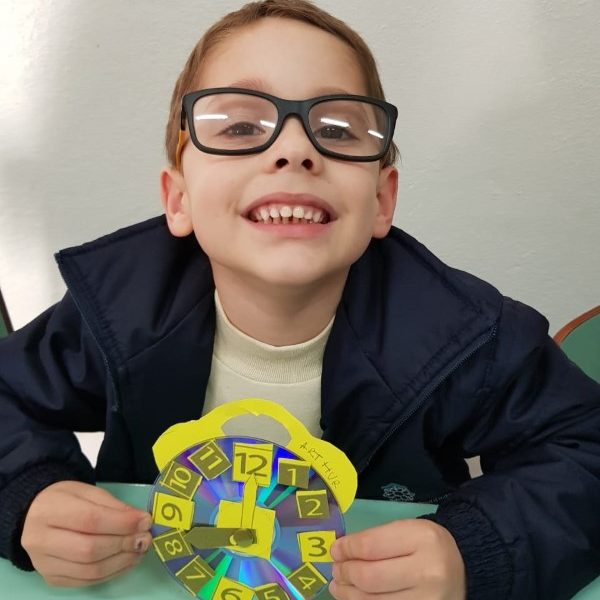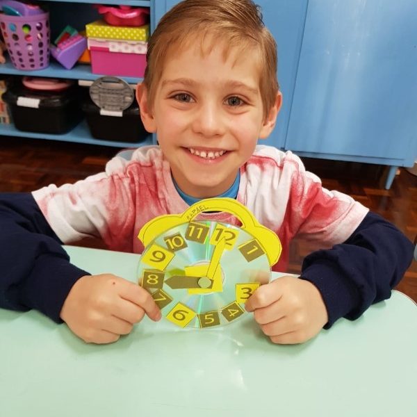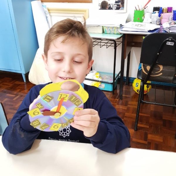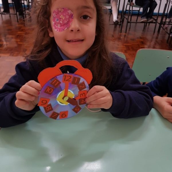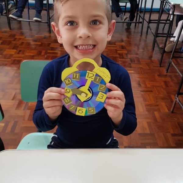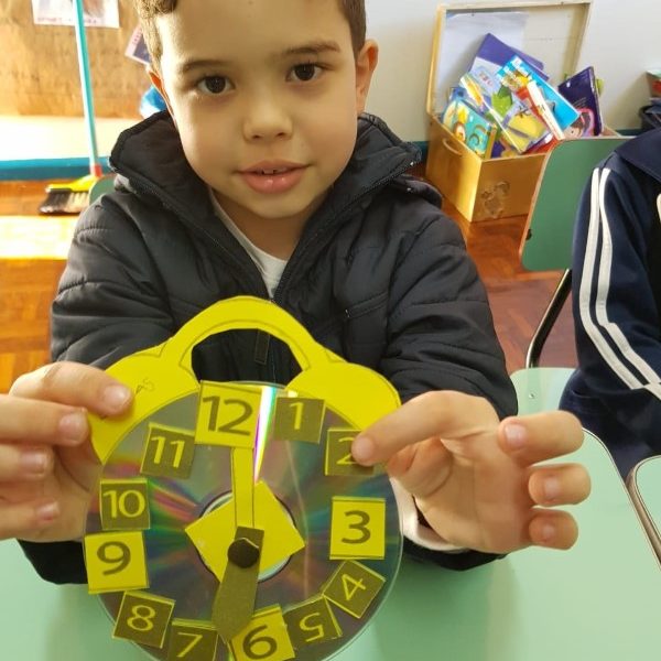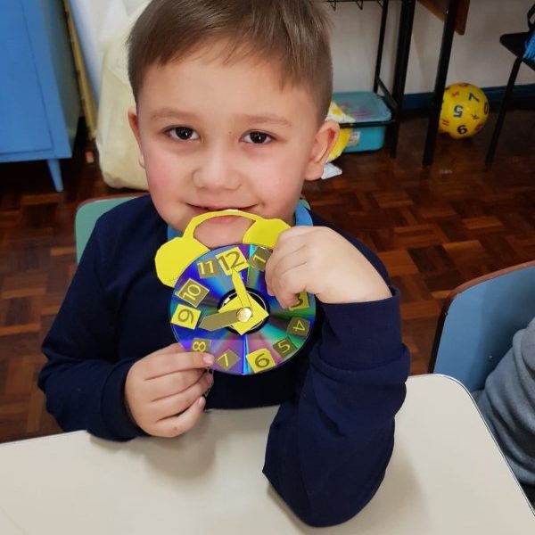 A turminha do pré 2 confeccionou seu próprio relógio para assim aprender brincando.