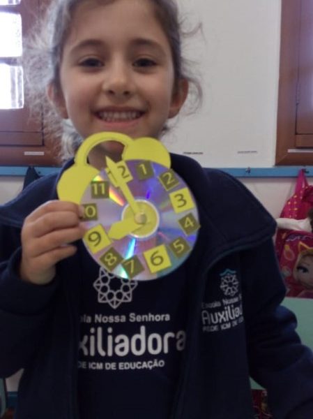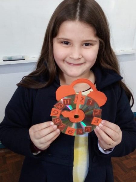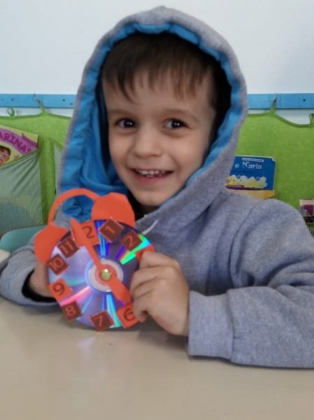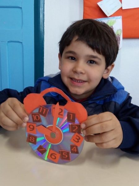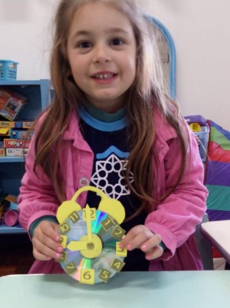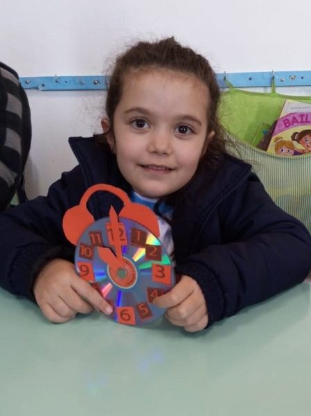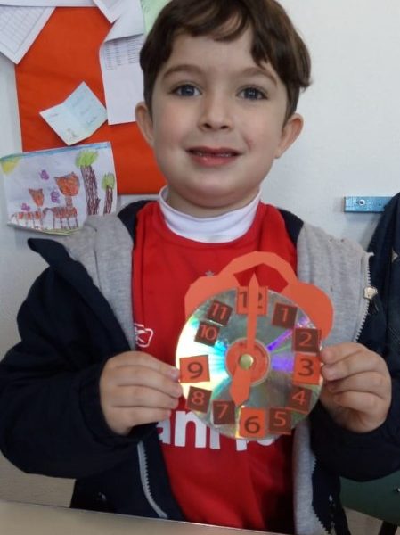 A turminha do pré 2 confeccionou seu próprio relógio para assim aprender brincando.