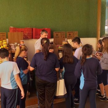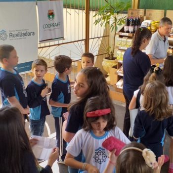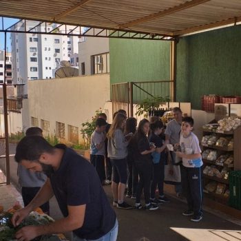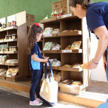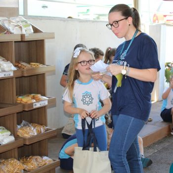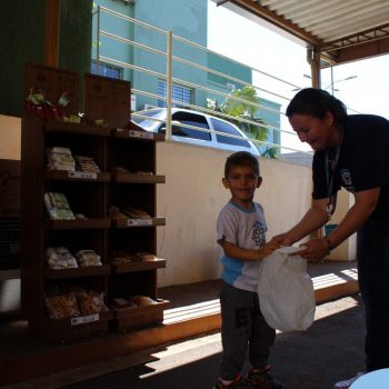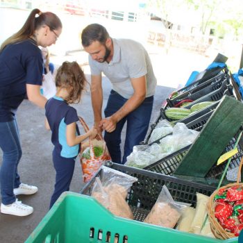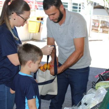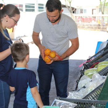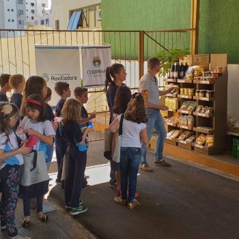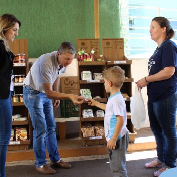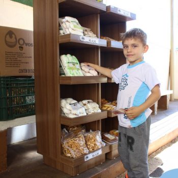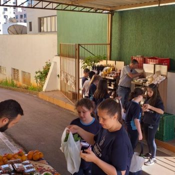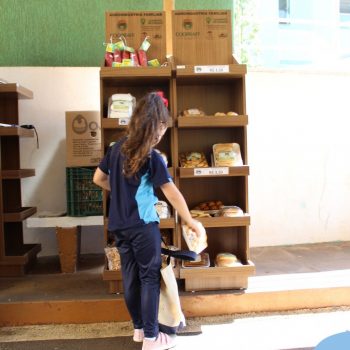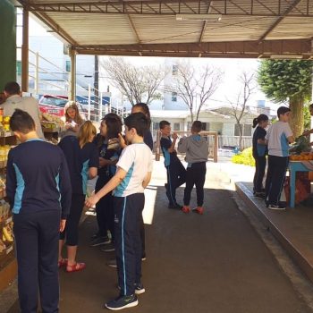 A feira, que acontece quinzenalmente na escola, com produtos comercializados pela COOPRAF e pelo Produtos do Sítio, é aberta a toda comunidade escolar.