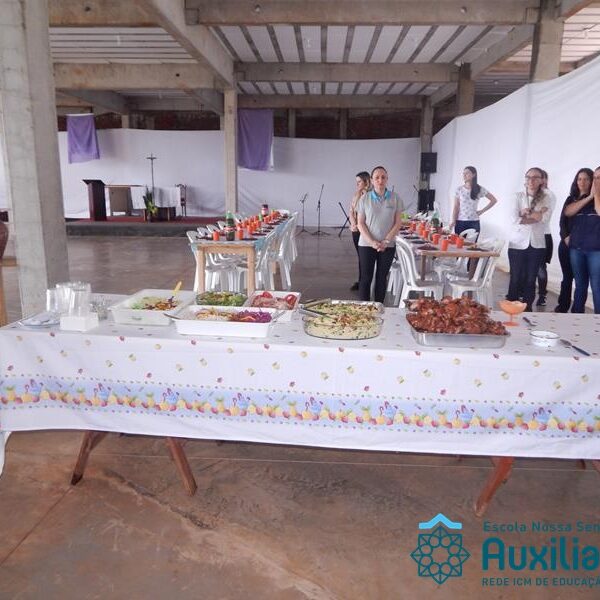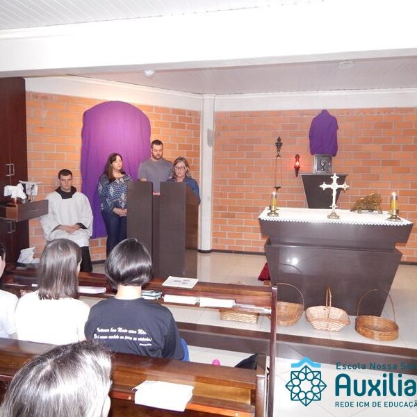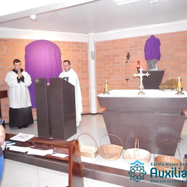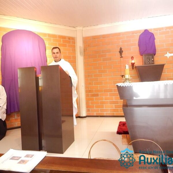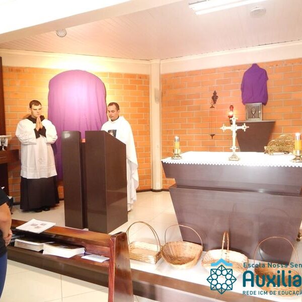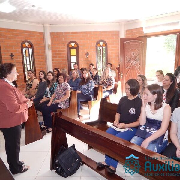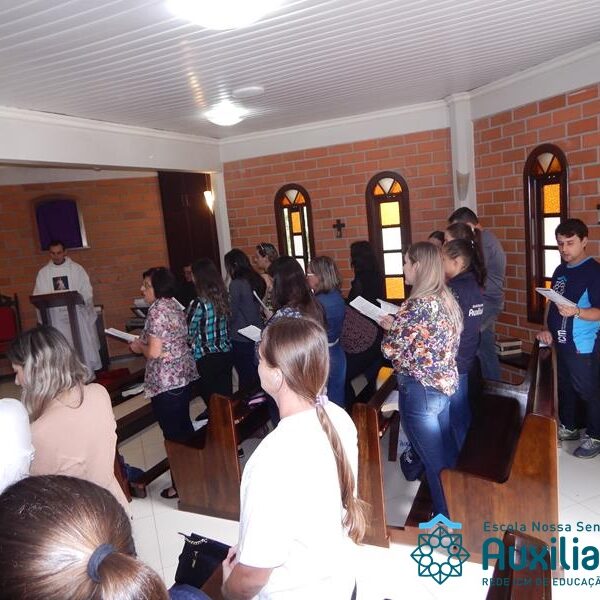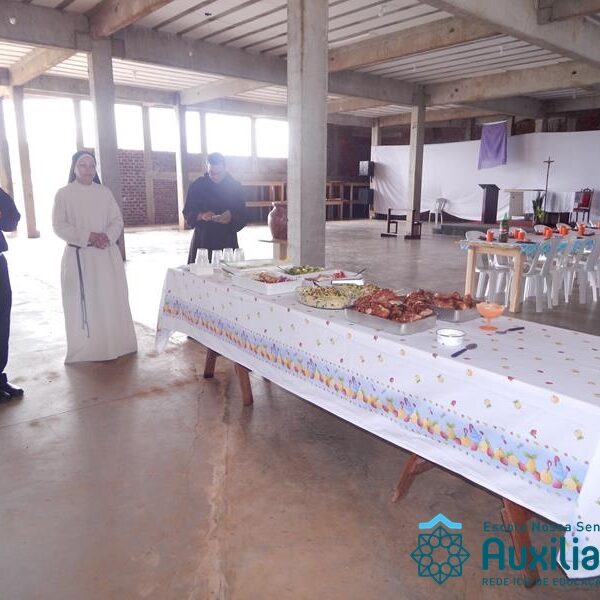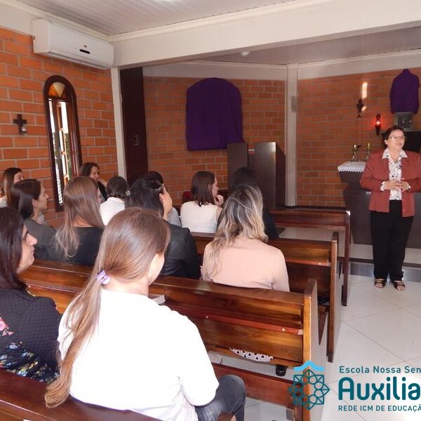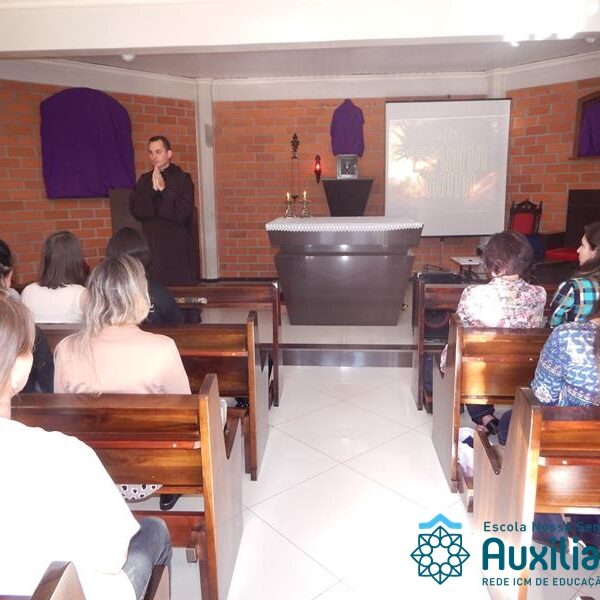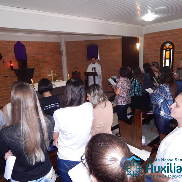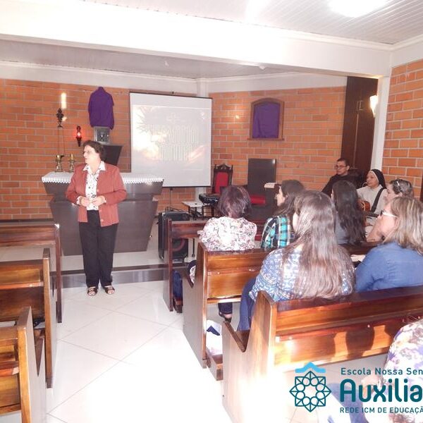 Na Quinta-Feira Santa, professores, funcionários e irmãs participaram de um RETIRO ESPIRITUAL no Santuário Morada do Senhor, em preparação à Páscoa do Senhor. Foi um momento especial de reflexão, oração e silêncio interior, movendo o coração de todos. Concluiu-se com a celebração da Eucaristia e o gesto concreto em solidariedade aos mais necessitados. Após a celebração realizou-se um gostoso almoço de confraternização. Agradecemos ao Sacerdote, Irmãs e colaboradores pela alegre acolhida, bom atendimento e lindo ambiente em memória à Páscoa da Ressurreição de Jesus.