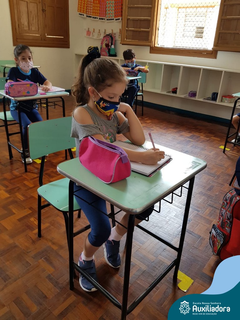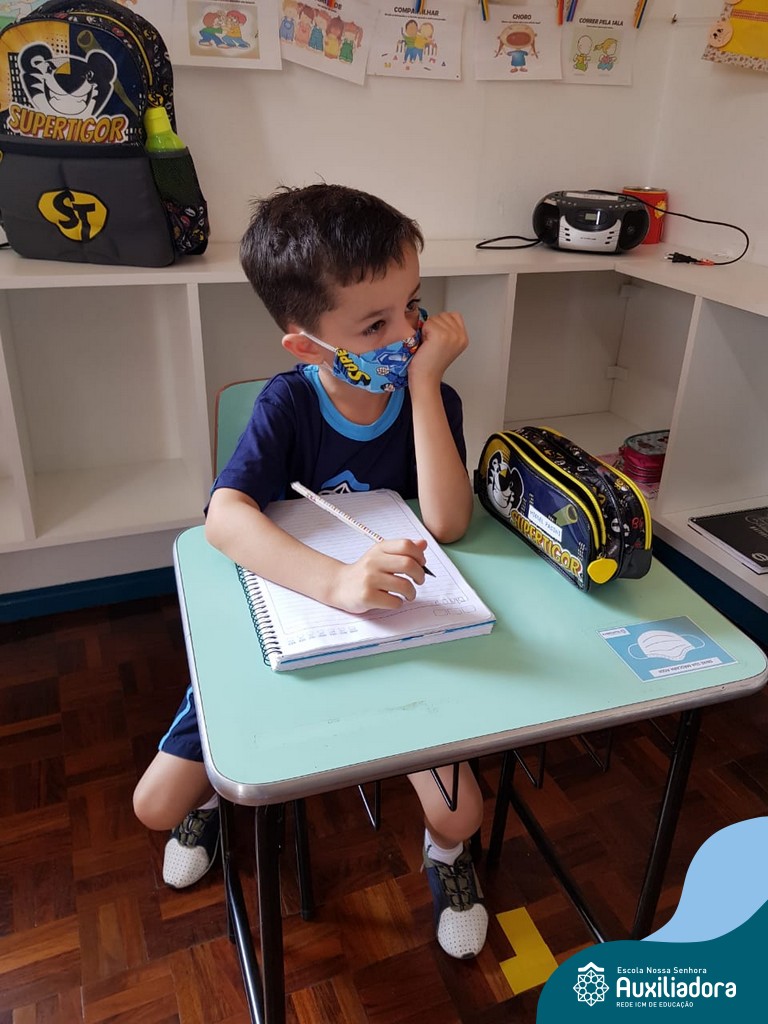 🥰 Neste retorno das aulas, a turminha do Pré 2 A voltou com muito entusiasmo realizando as atividades diárias.