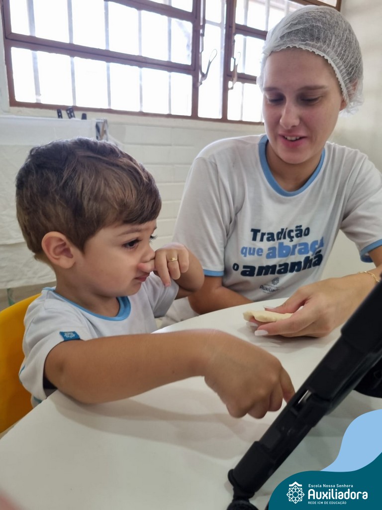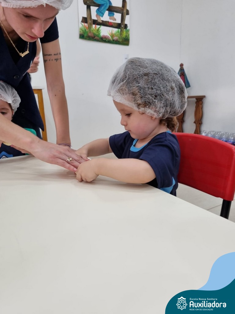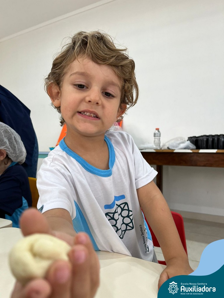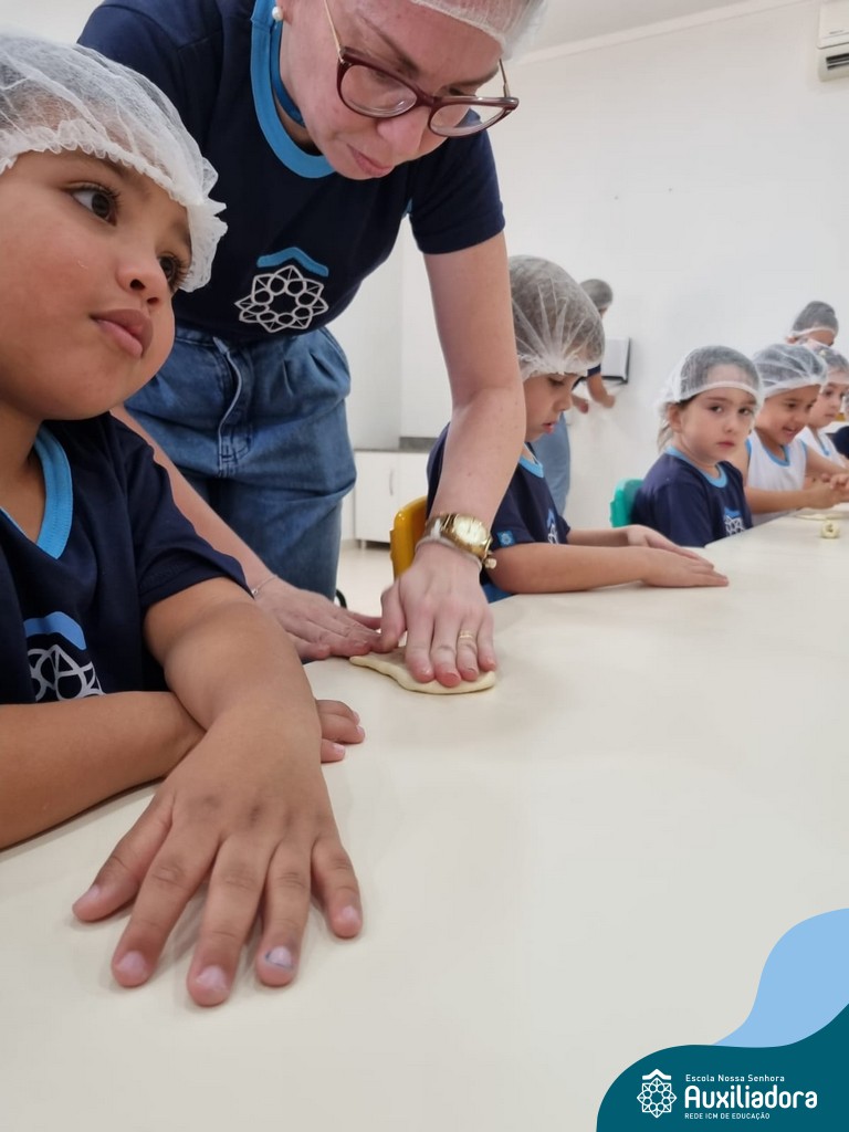 Neste período de reflexão e renascimento, os alunos, junto aos professores e Pastoral Escolar, fizeram os pães de Jesus e numa referência à Última Ceia de Cristo, convidamos as famílias para compartilharem o pão e o suco de uva, que simboliza o Corpo e Sangue de Jesus. Como educadores, temos o privilégio e a responsabilidade de compartilhar com nossos alunos o verdadeiro significado por trás dessa celebração milenar. É uma oportunidade para ensinar sobre os valores de compaixão, perdão e solidariedade, que são os pilares da mensagem de Páscoa.