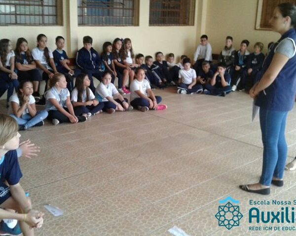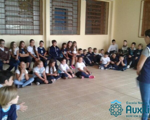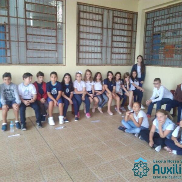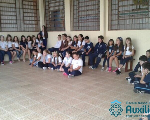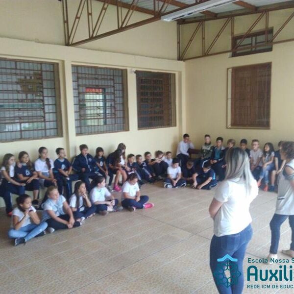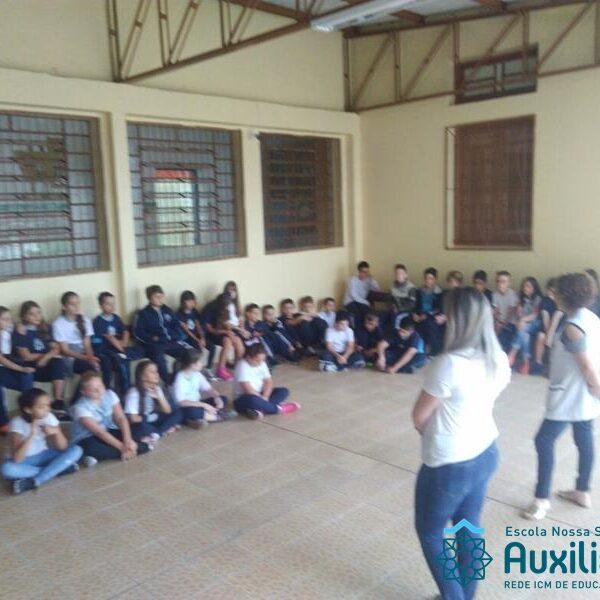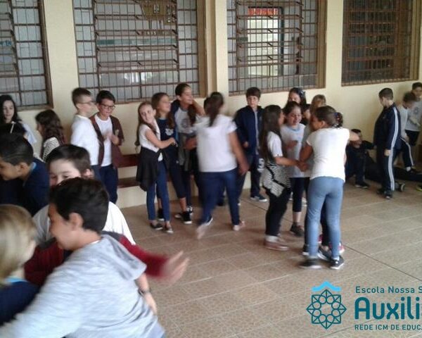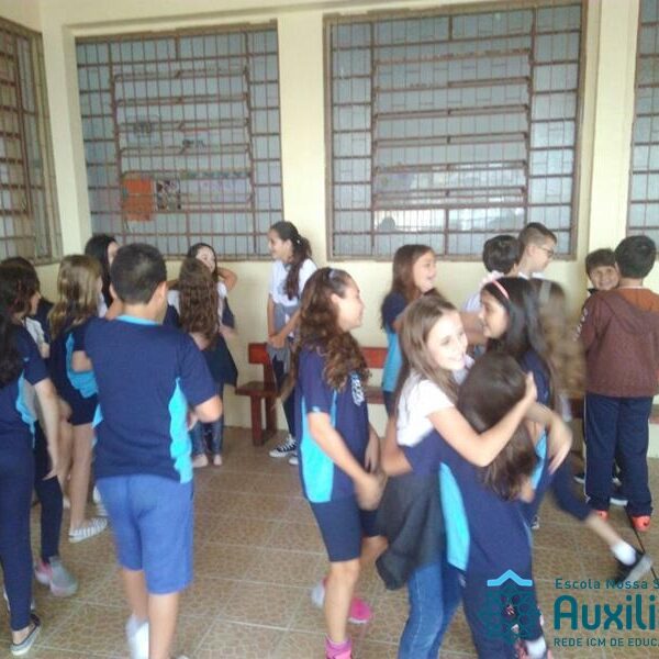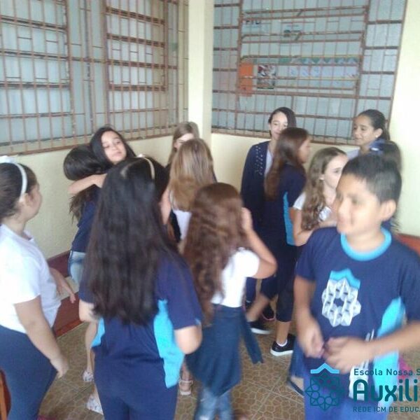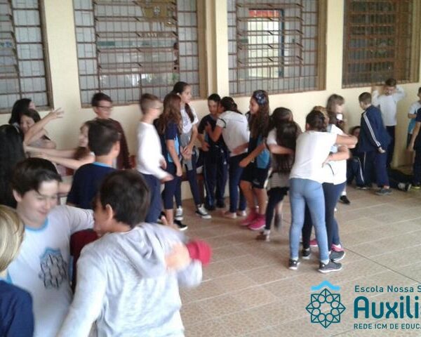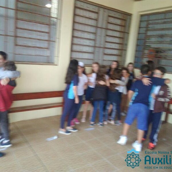 “Com o poema A INVENÇÃO DO ABRAÇO, de Ricardo Silvestrin, as turmas do 4º e 5º ano espalharam boas energias e desejos de um ano repleto de conhecimento, alegria e paz. Feliz volta às aulas!! Há braços longos e curtos, magros e gordos. Há braços brancos e negros, de velhos, de crianças. Há braços de homens e de mulheres. Há braços e braços. Até que um dia alguém deu um passo, diminuiu o espaço e fez do braço um laço. Foi um sucesso, virou moda, e hoje até na hora do fracasso se há braço há ABRAÇO.”
