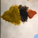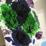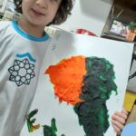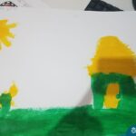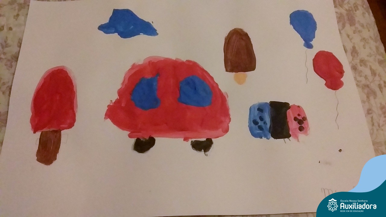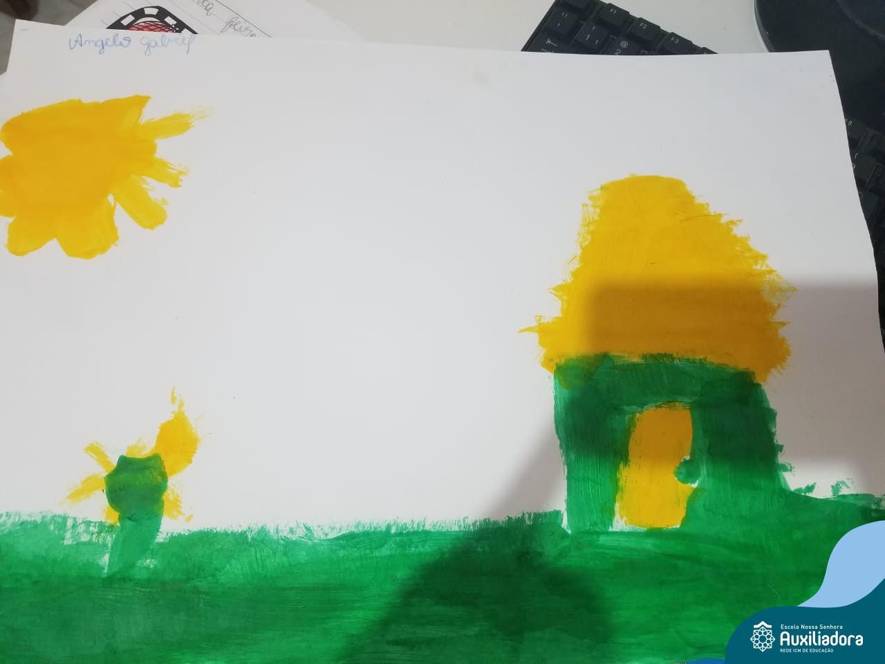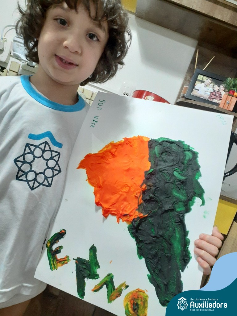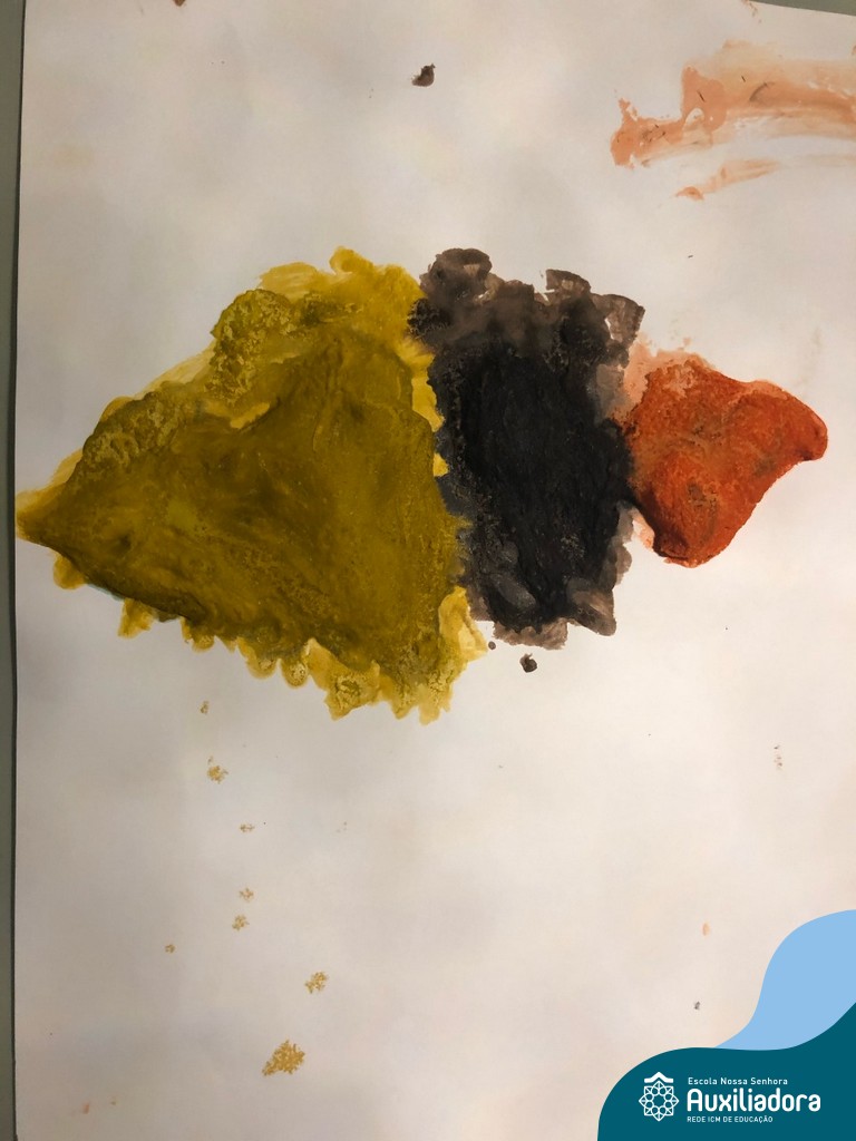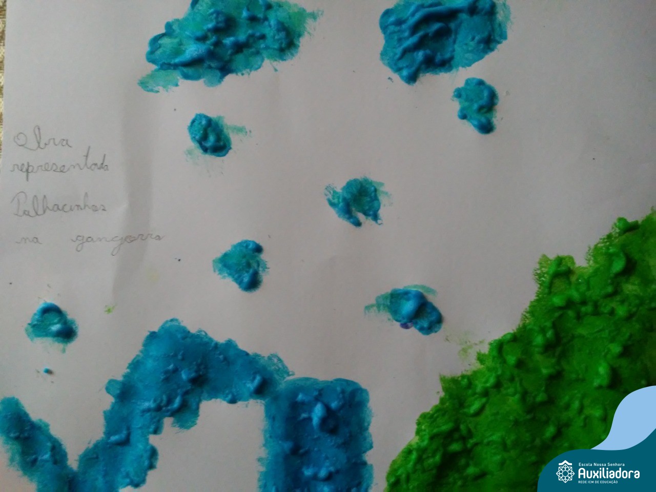 Os materiais utilizados foram corantes de alimento, espuma de barbear e cola branca. Após a preparação das tintas, as crianças foram desafiadas a escolherem uma obra de arte em que o pintor brasileiro, Cândido Portinari representou como era a sua infância.