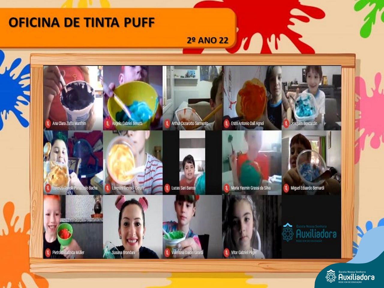 😀Seguindo as atividades alusivas ao Dia das Crianças, os alunos do 2º ano 22 aprenderam a confeccionar a “Tinta Puff”.