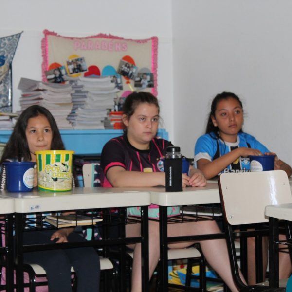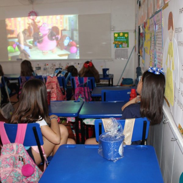 Entre as atividades na semana da criança uma delas foi a sessão cinemão na sala de aula com direito a muita pipoca.