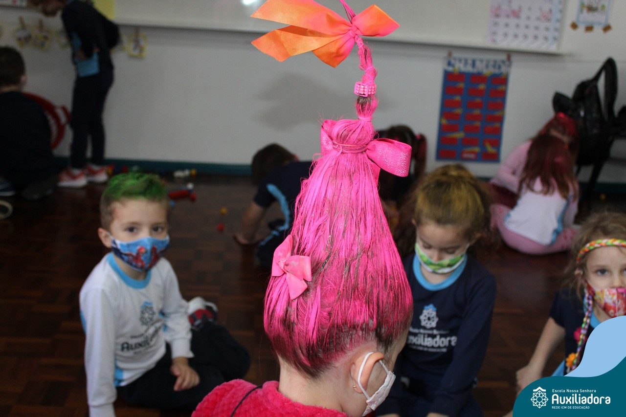 Dia da fantasia, dia do cabelo maluco e muito mais …. Cores e magia …. nossa escola está radiante!