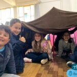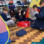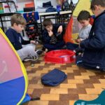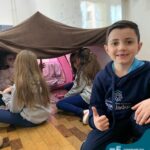 Também, de encerramento, as turmas de 1ºs e 2ºs anos tiveram um “ACAMPADENTRO TEMÁTICO”⛺️ na sala, em que as crianças trouxeram lençóis, tocas e brinquedos escolhidos em grupos para montarem cada espaço e desfrutarem da diversão com os amigos.