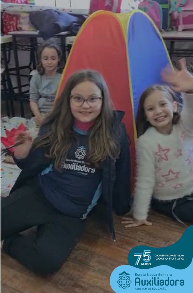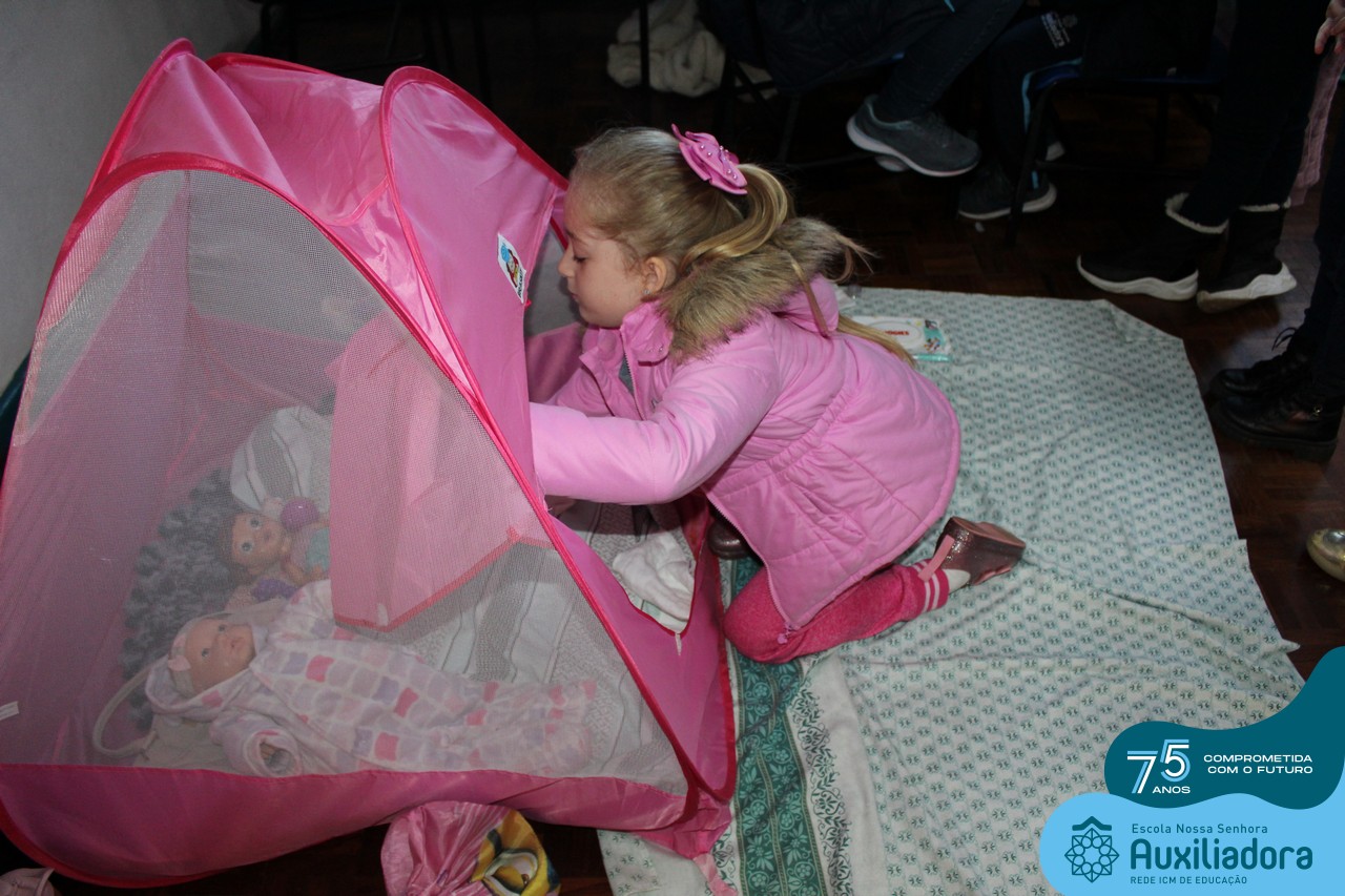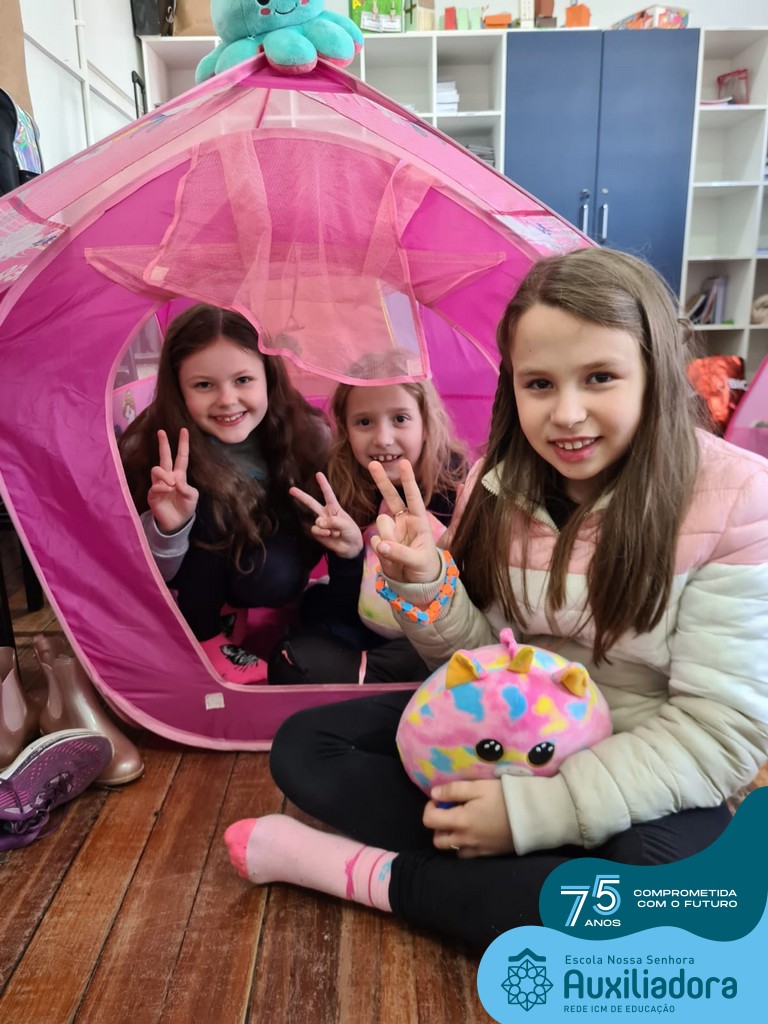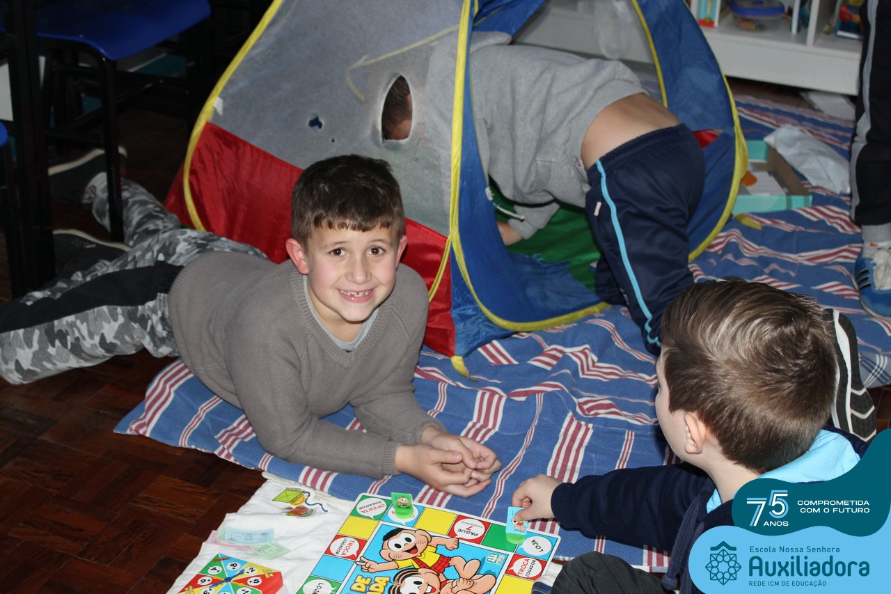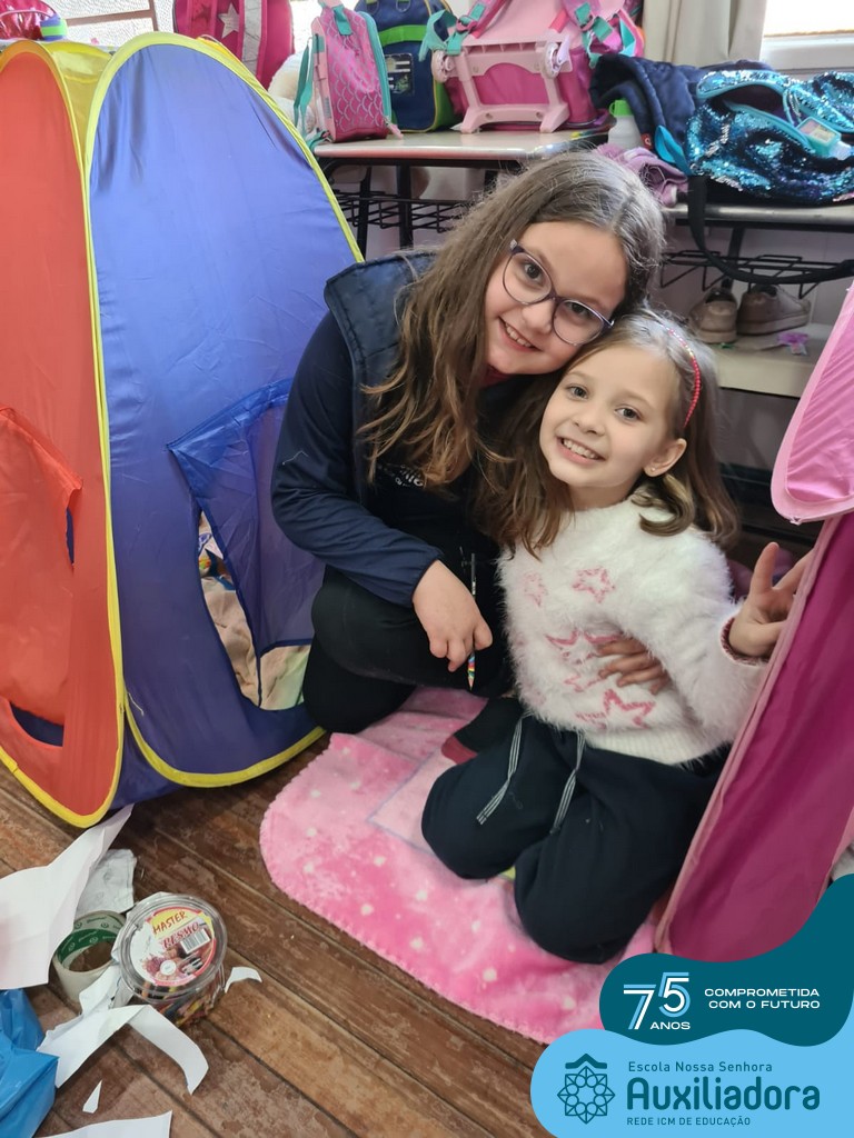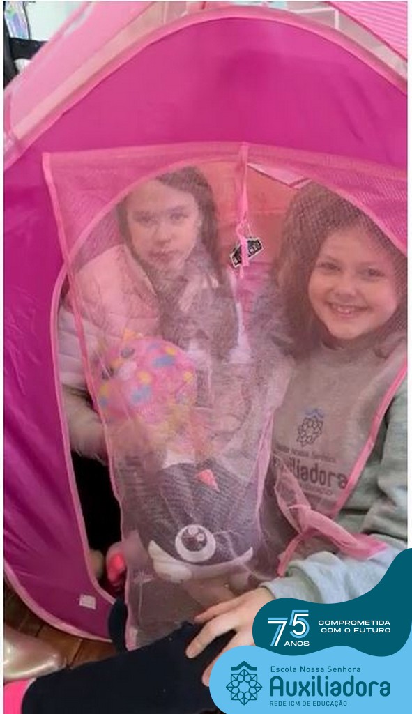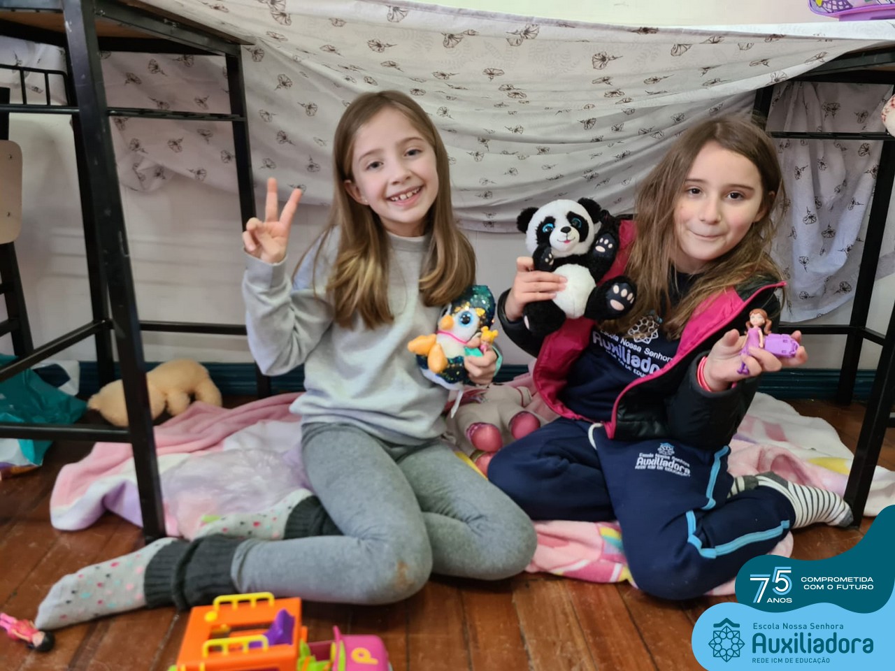 Também, de encerramento, as turmas de 1ºs e 2ºs anos tiveram um “ACAMPADENTRO TEMÁTICO”⛺️ na sala, em que as crianças trouxeram lençóis, tocas e brinquedos escolhidos em grupos para montarem cada espaço e desfrutarem da diversão com os amigos.