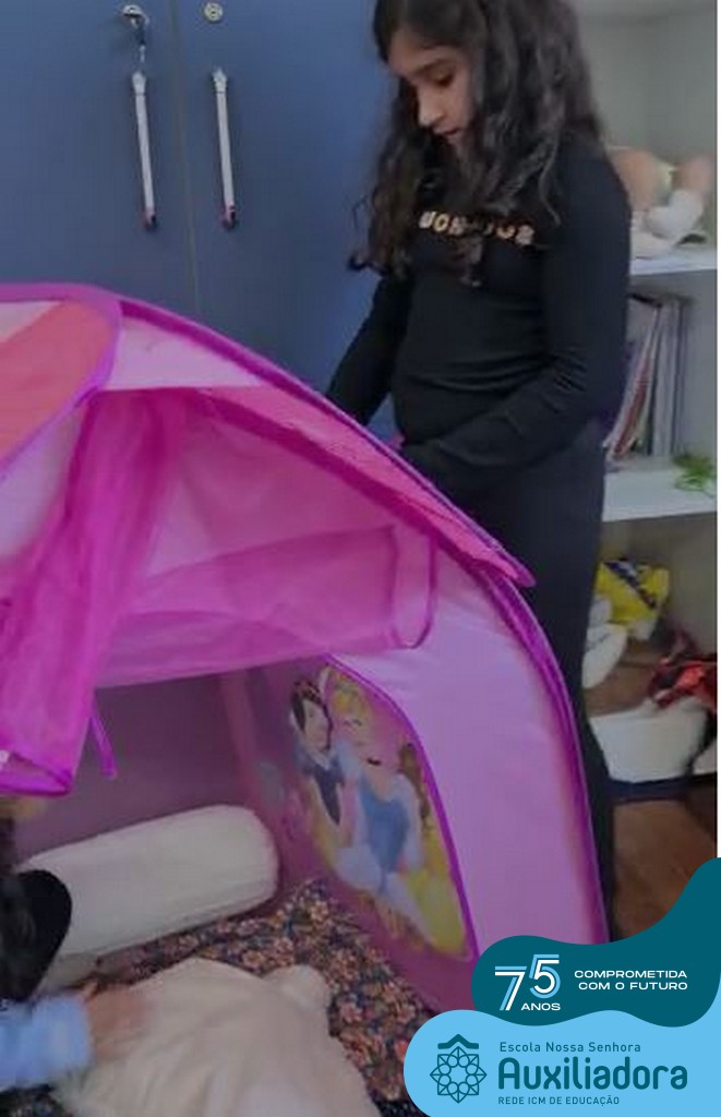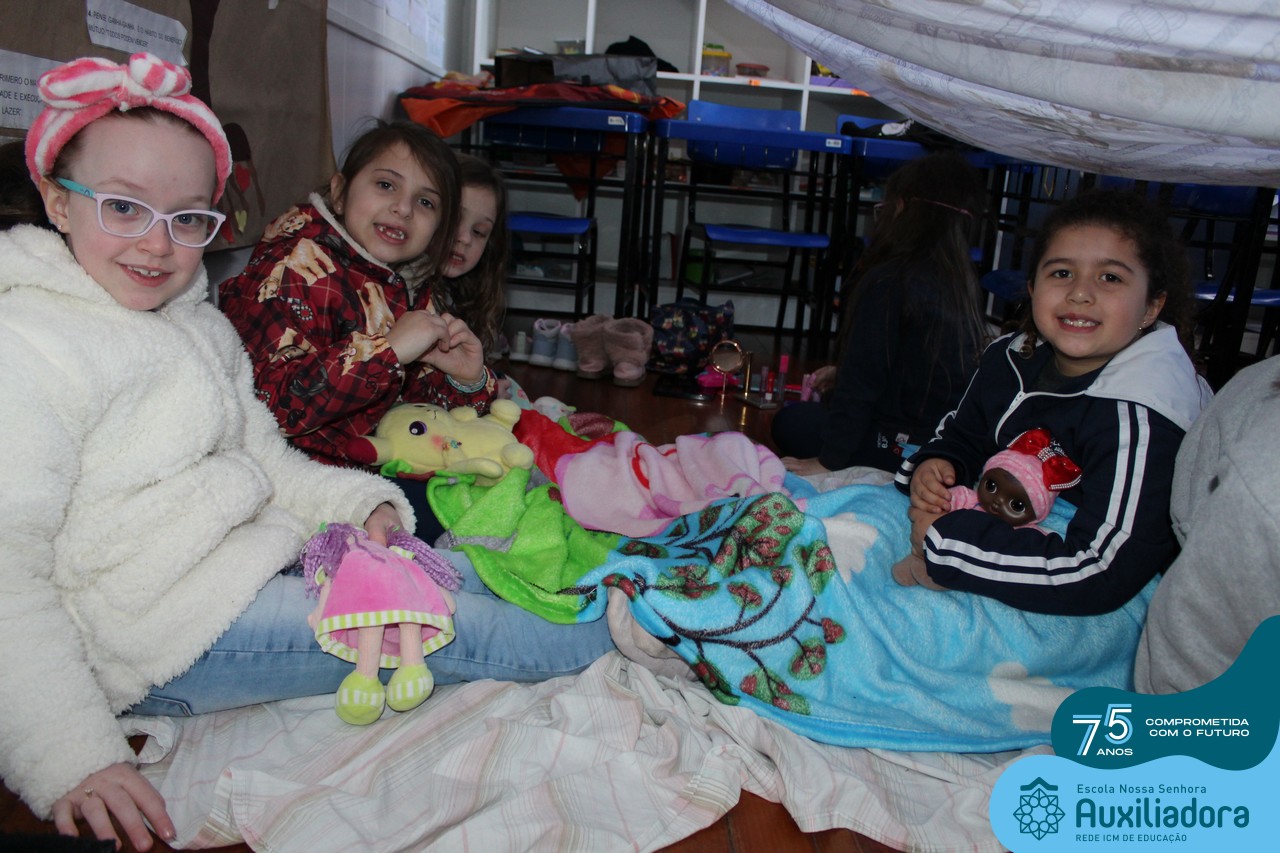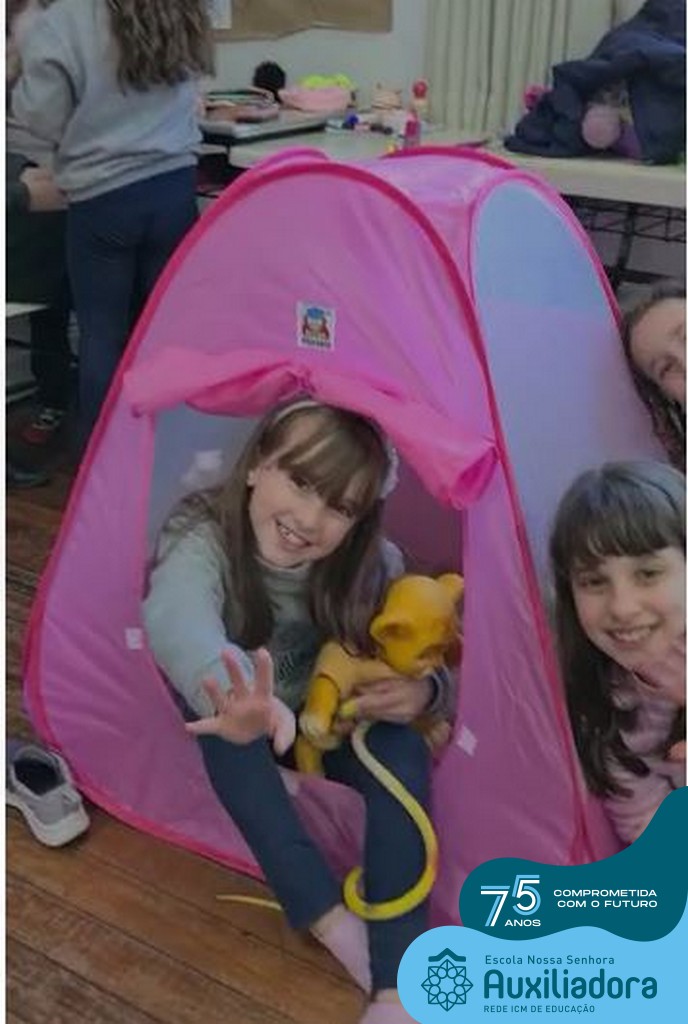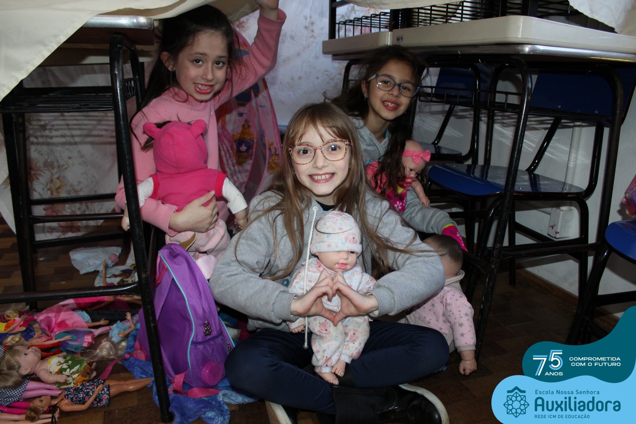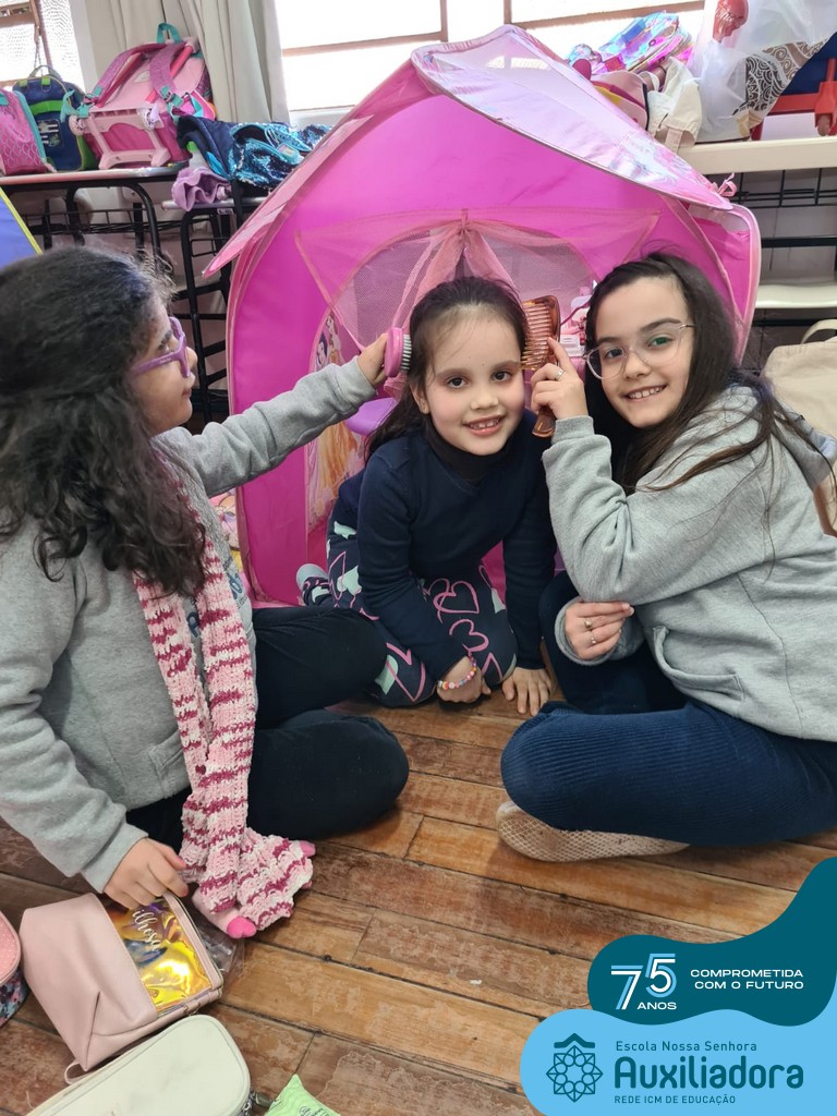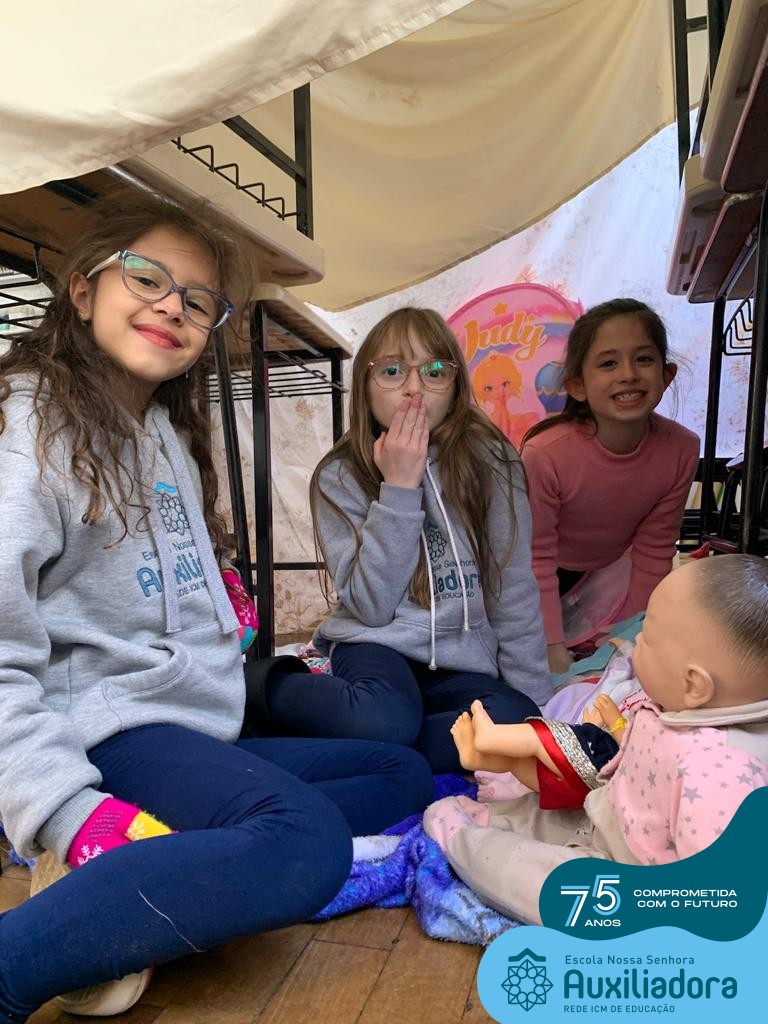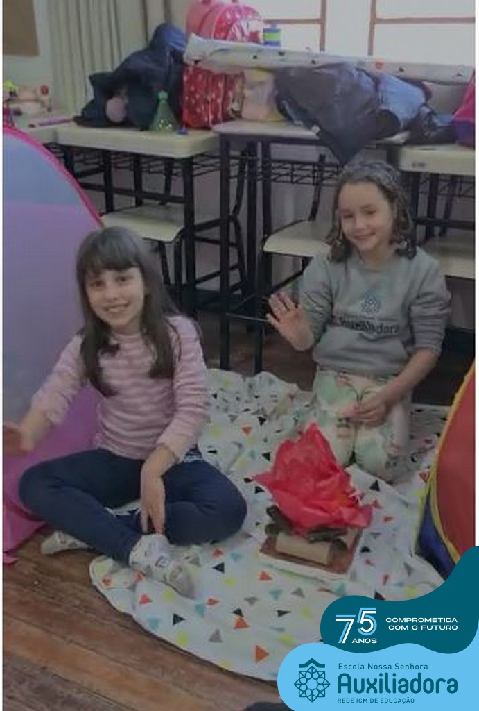 Também, de encerramento, as turmas de 1ºs e 2ºs anos tiveram um “ACAMPADENTRO TEMÁTICO”⛺️ na sala, em que as crianças trouxeram lençóis, tocas e brinquedos escolhidos em grupos para montarem cada espaço e desfrutarem da diversão com os amigos.