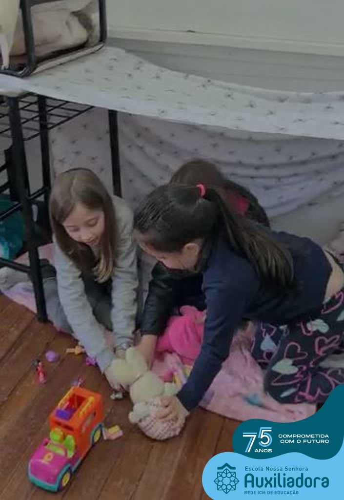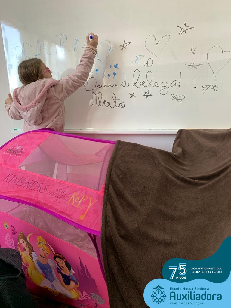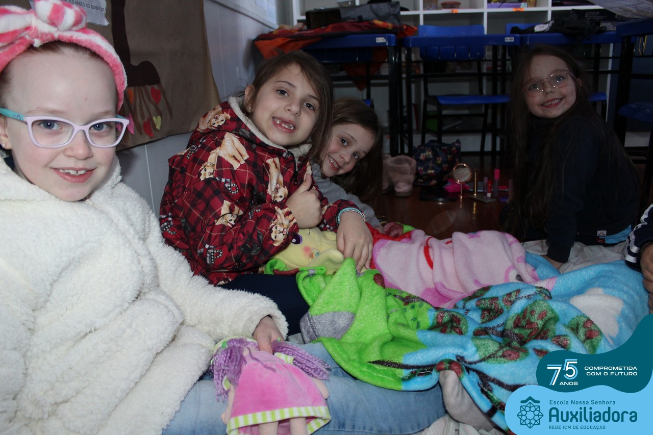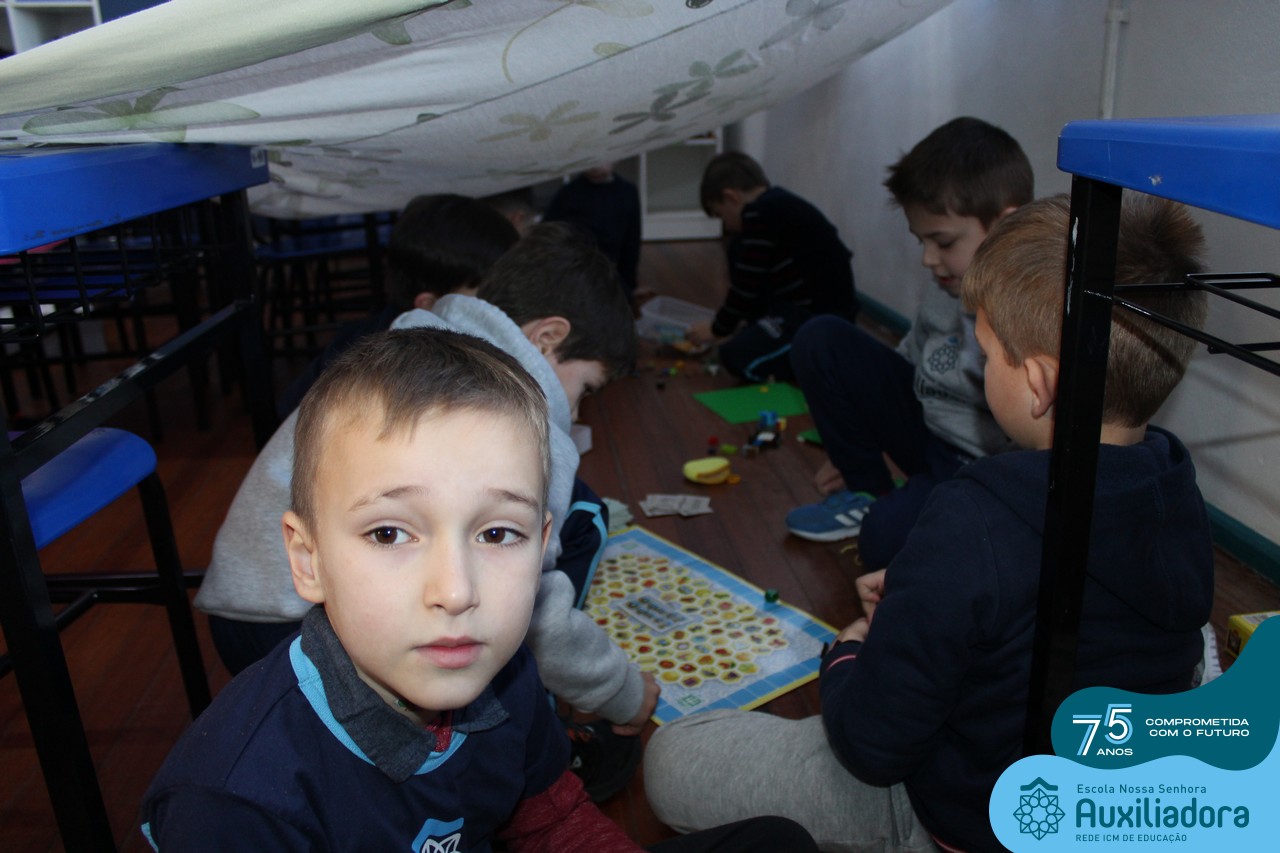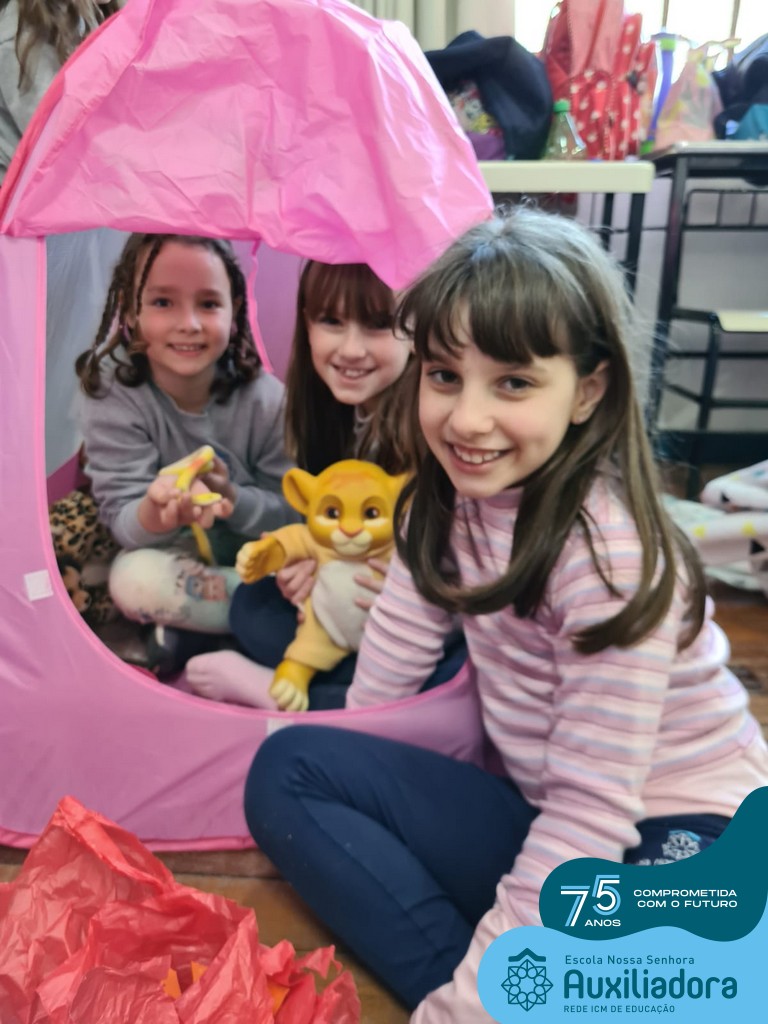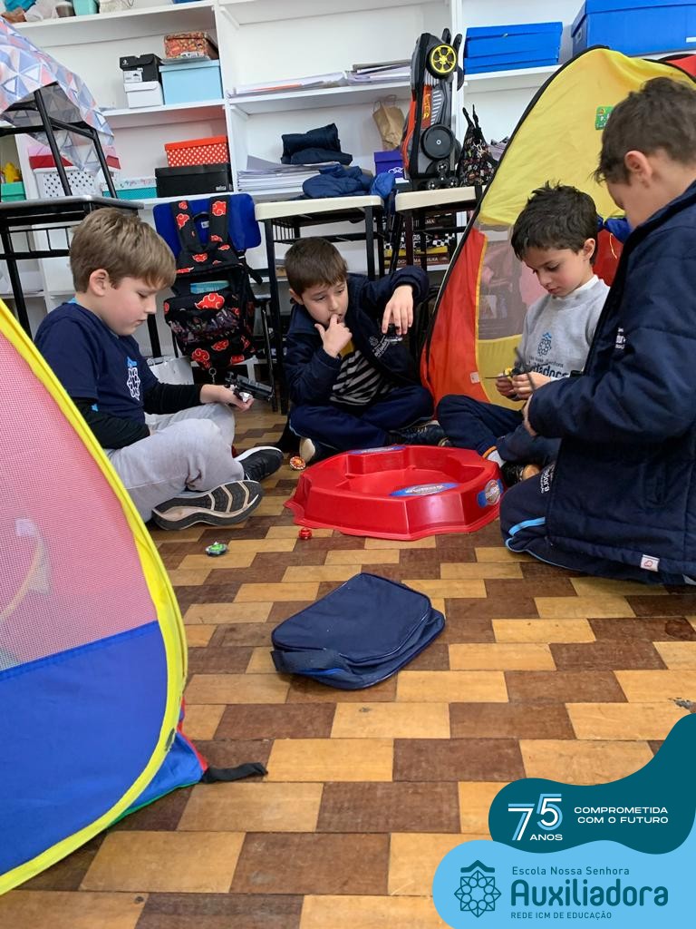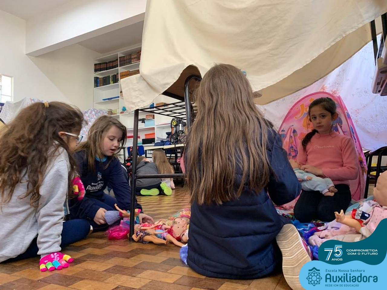 Também, de encerramento, as turmas de 1ºs e 2ºs anos tiveram um “ACAMPADENTRO TEMÁTICO”⛺️ na sala, em que as crianças trouxeram lençóis, tocas e brinquedos escolhidos em grupos para montarem cada espaço e desfrutarem da diversão com os amigos.