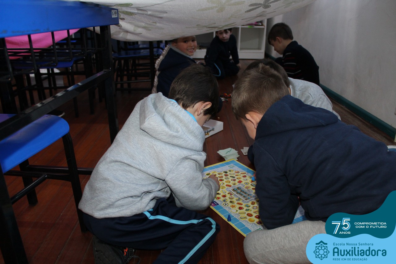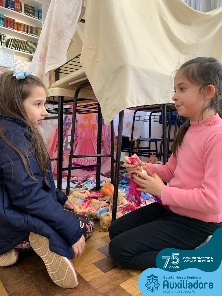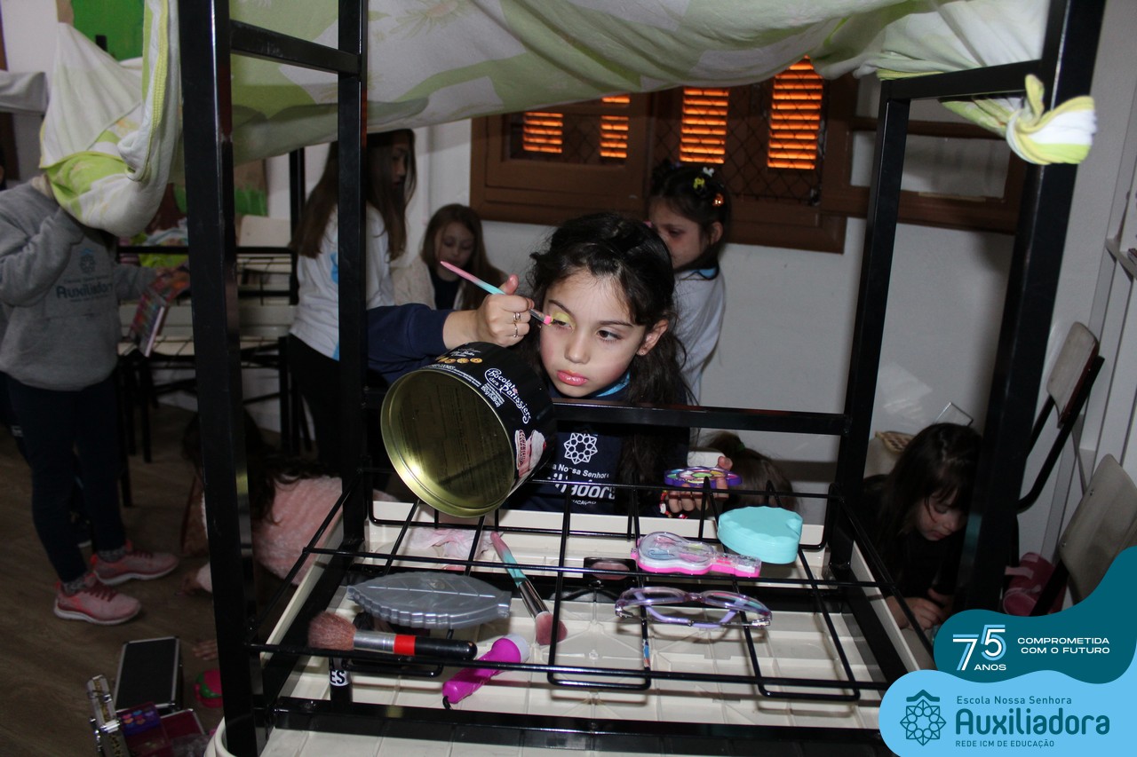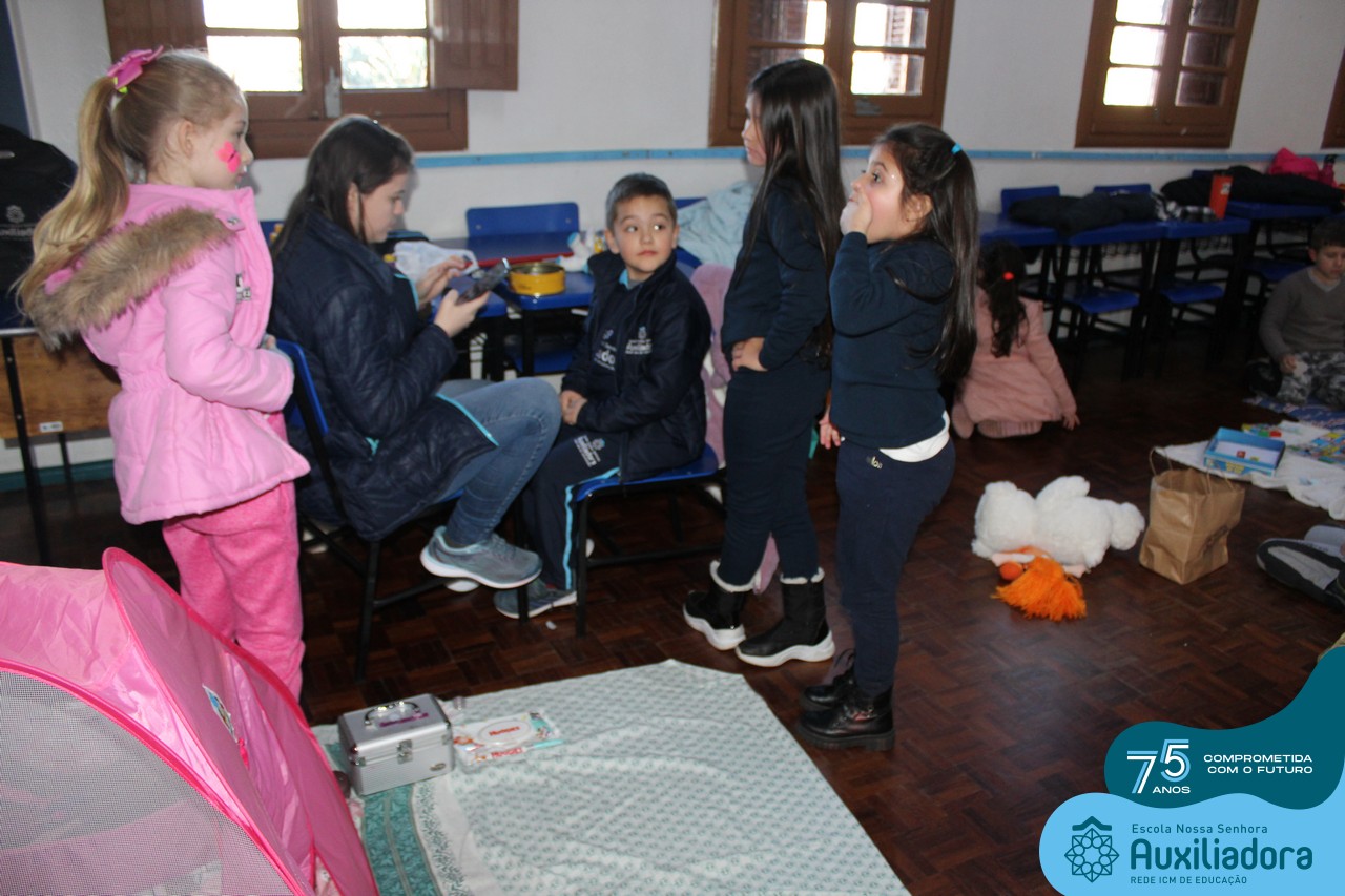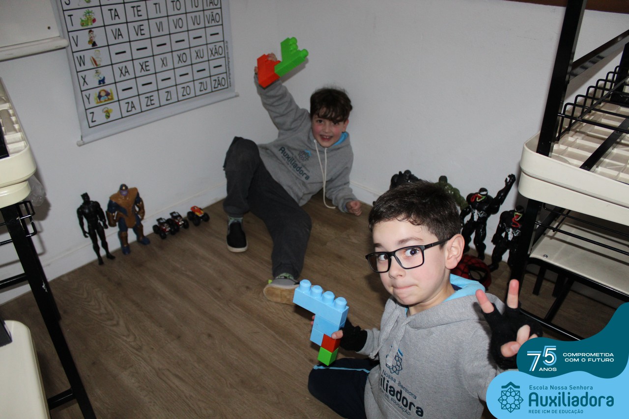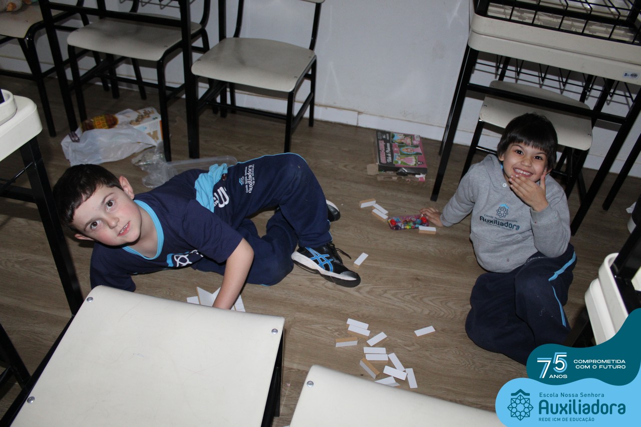 Também, de encerramento, as turmas de 1ºs e 2ºs anos tiveram um “ACAMPADENTRO TEMÁTICO”⛺️ na sala, em que as crianças trouxeram lençóis, tocas e brinquedos escolhidos em grupos para montarem cada espaço e desfrutarem da diversão com os amigos.