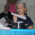 Para finalizar o preparo da receita, a professora falou algumas palavras mágicas transformando essa receita em cupcakes.