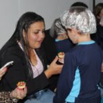Cada criança presenteou sua mamãe com um cupcake, depois cantaram juntos a música “como é grande o meu amor”.