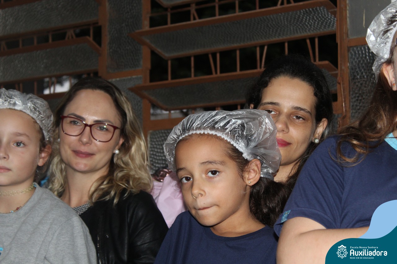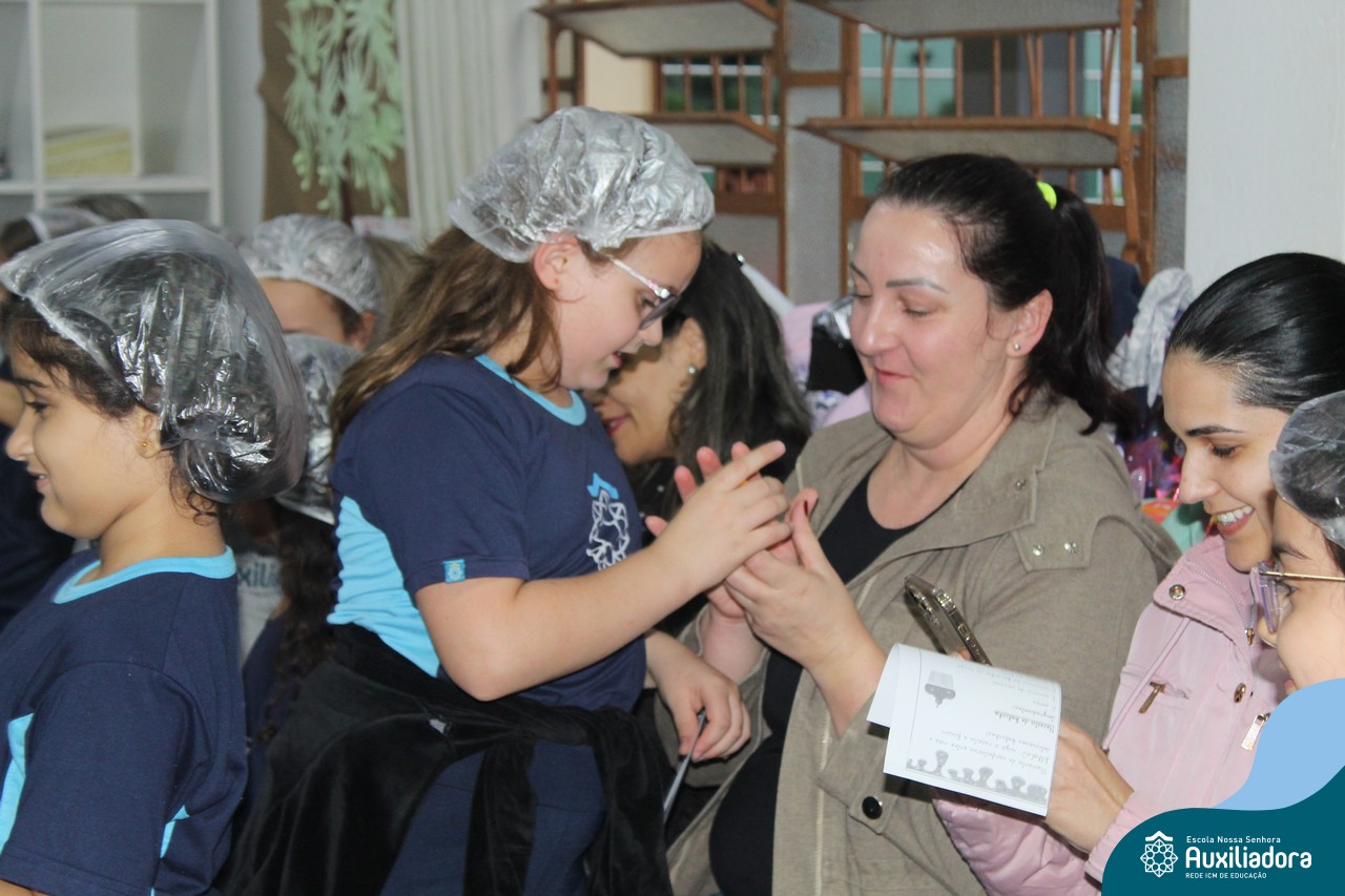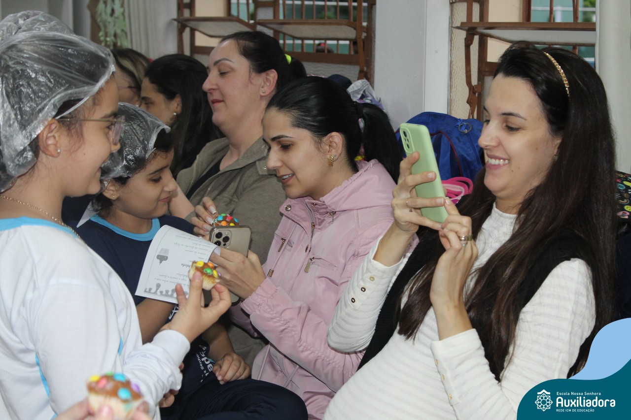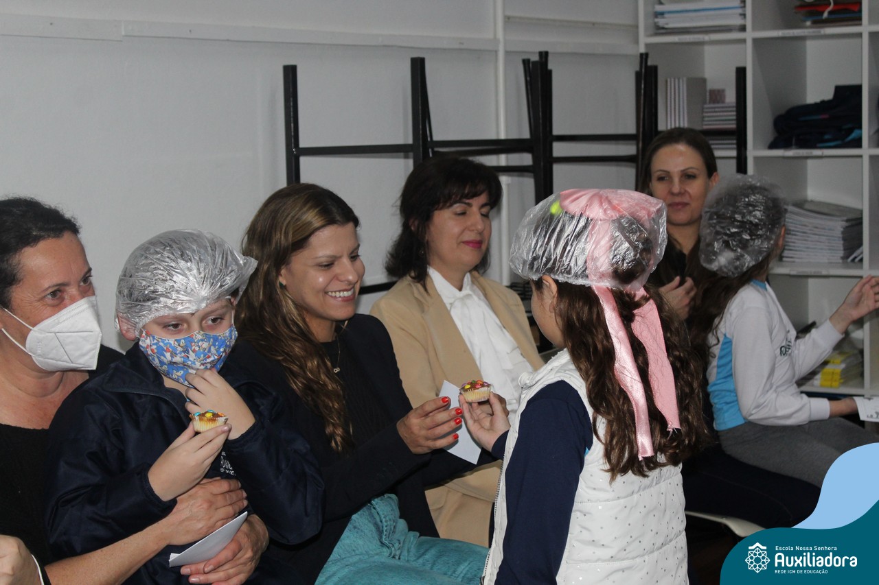 Cada criança presenteou sua mamãe com um cupcake, depois cantaram juntos a música “como é grande o meu amor”.