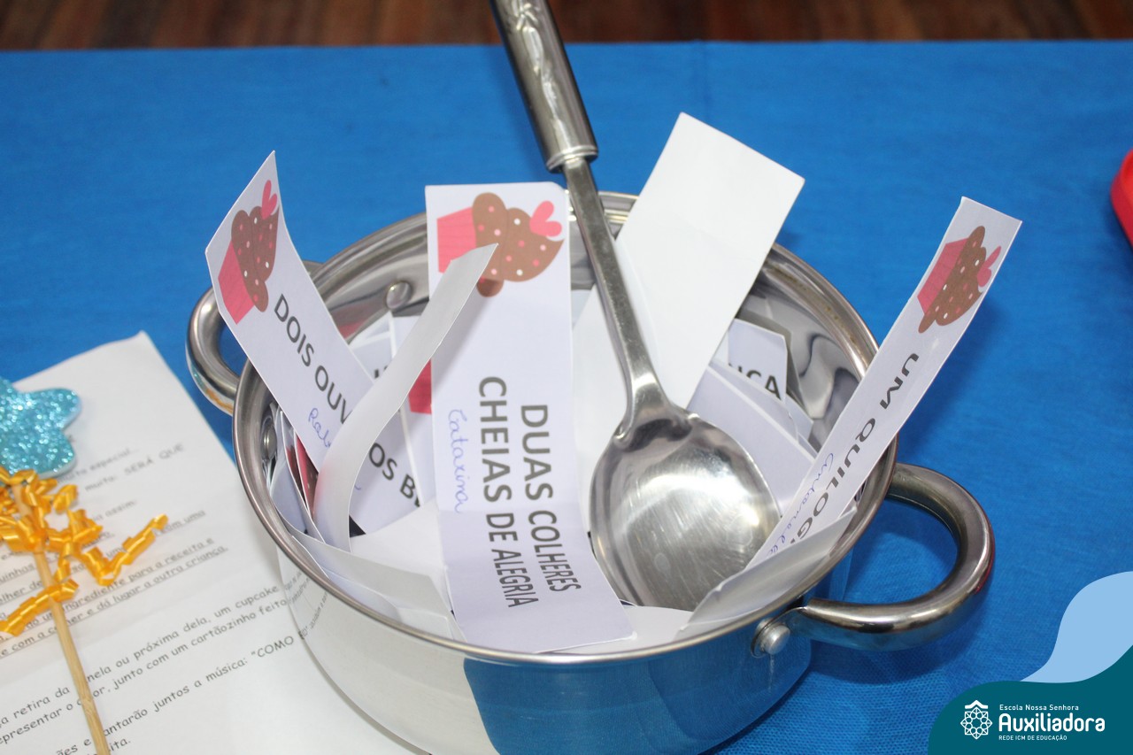 Para finalizar o preparo da receita, a professora falou algumas palavras mágicas transformando essa receita em cupcakes.