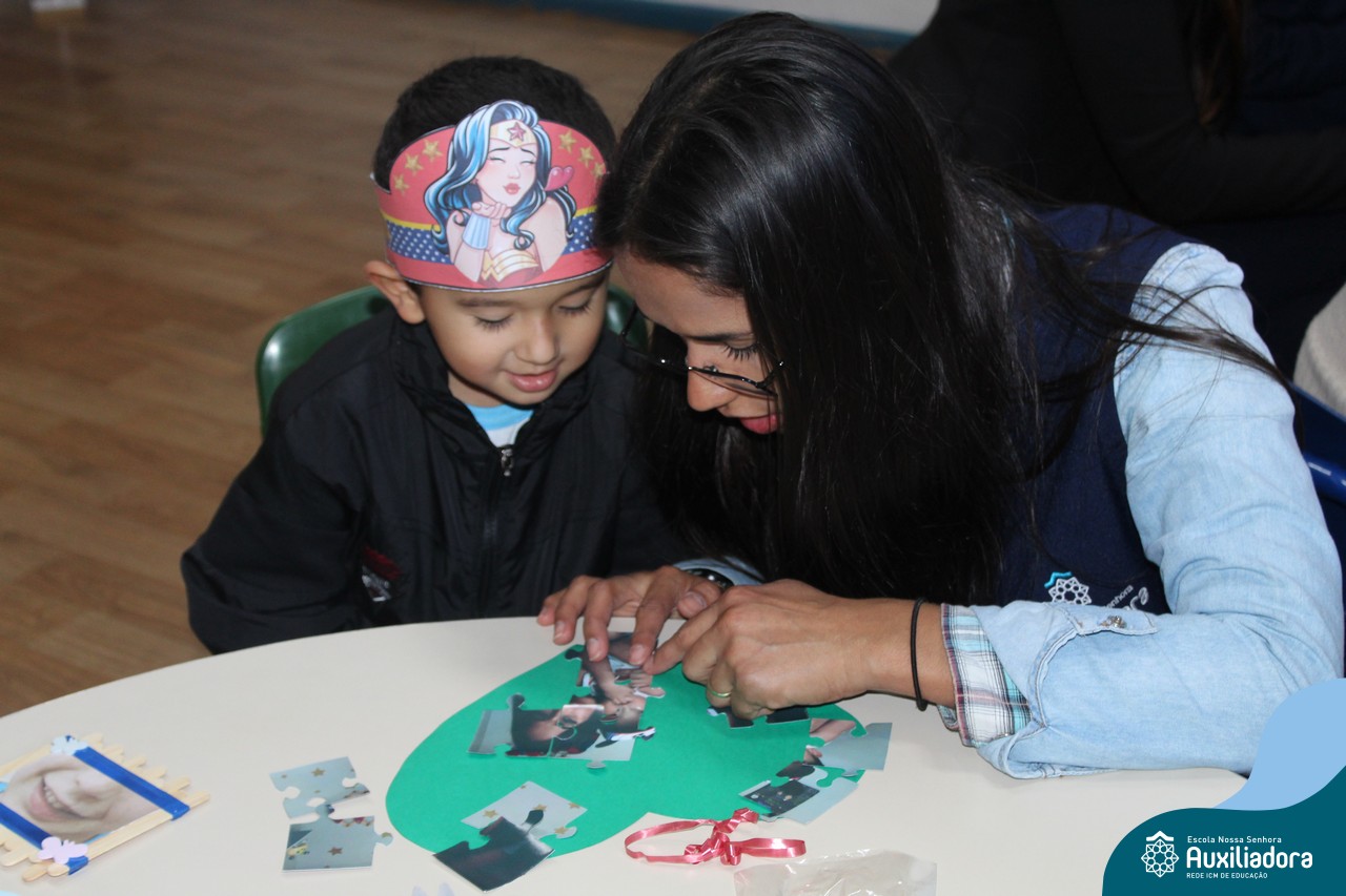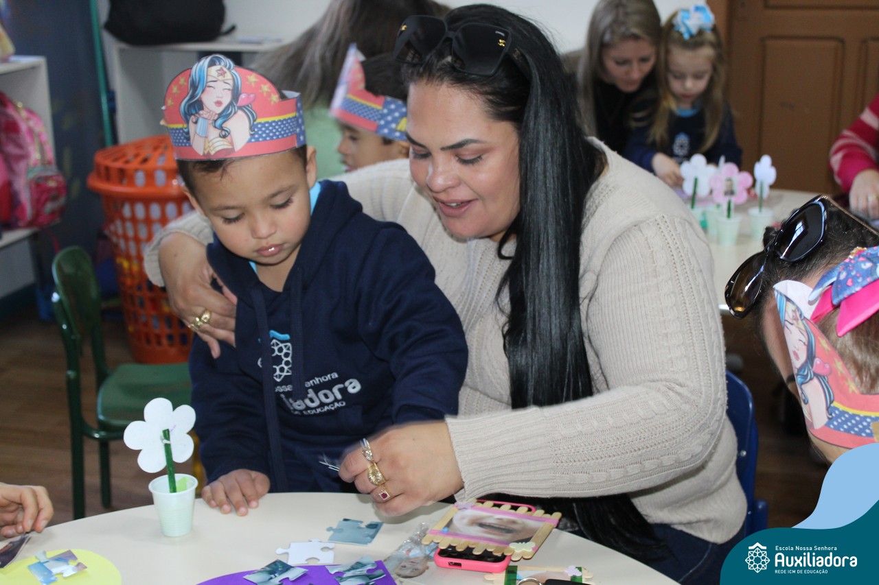 Um momento cheio de amor foi pensado e realizado com as mamães do Maternal IIC. A mamãe Maravilha de cada um é o motivo do sorriso lindo desses pequenos e nada mais justo que uma homenagem pelo dia especial que é todinho delas!