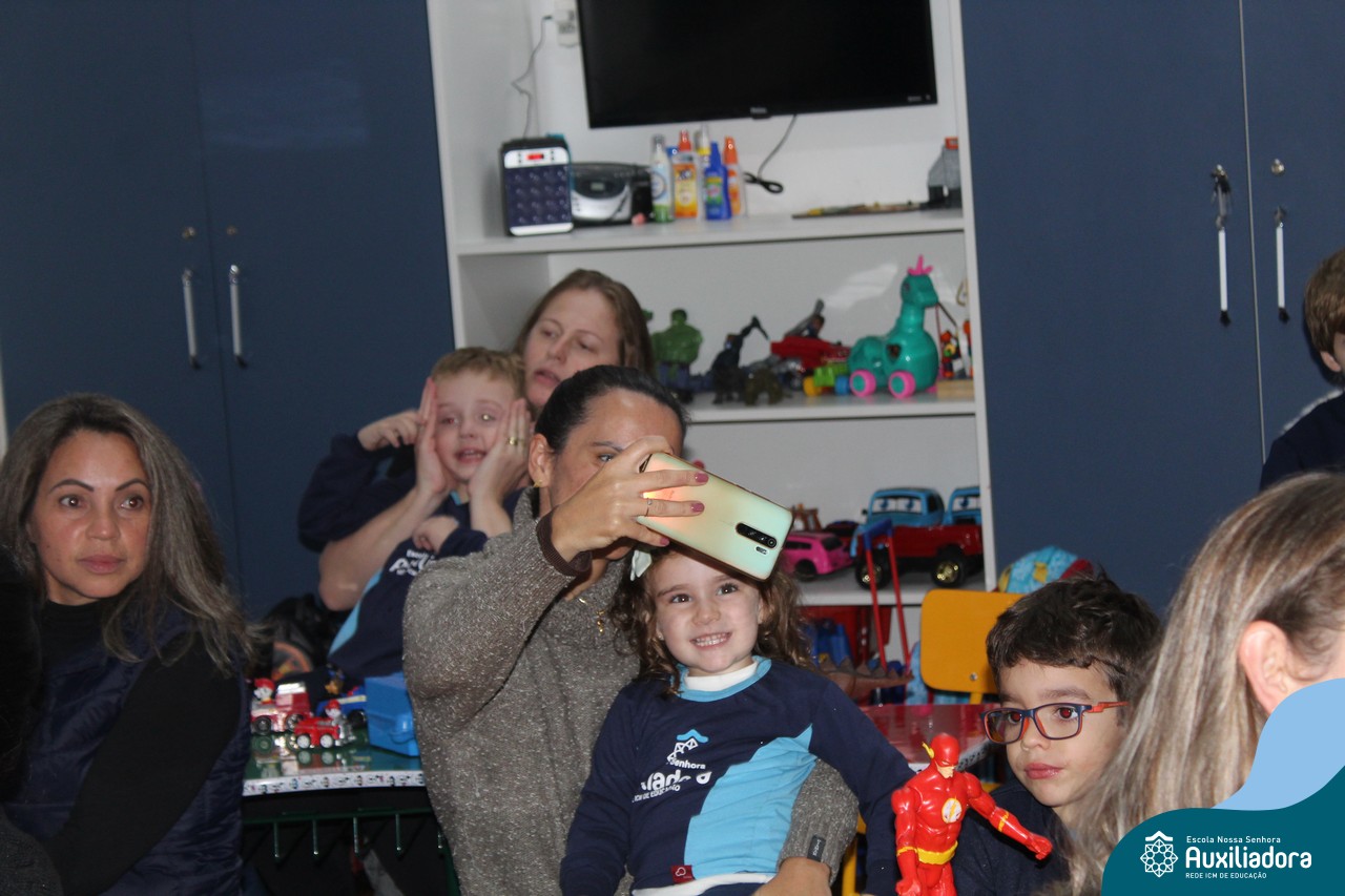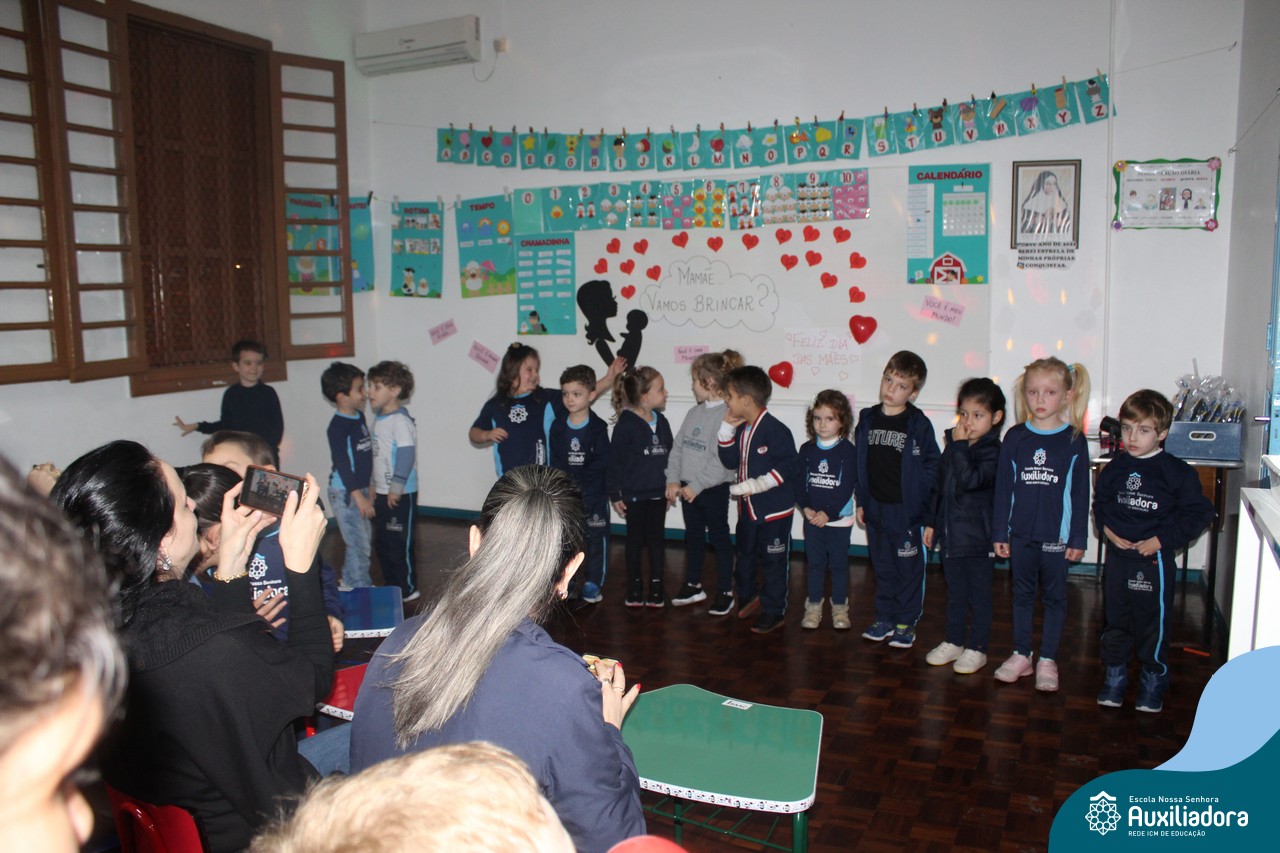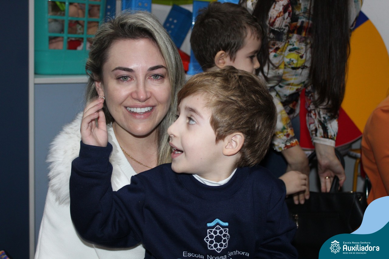 Na sexta-feira dia 06/05 tivemos um momento especial e muito divertido com as mães e alunos do pré 1. Depois de uma breve socialização, as crianças fizeram uma linda homenagem deixando as mães orgulhosas. Por fim teve muitas brincadeiras interativas entre mãe e filho(a). Ser mãe é tornar cada instante um grande momento ao lado de seu(sua) filho(a).