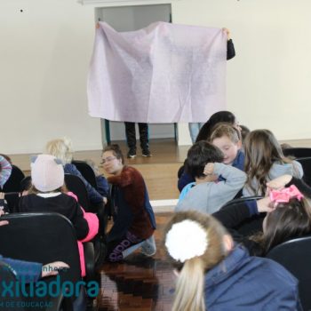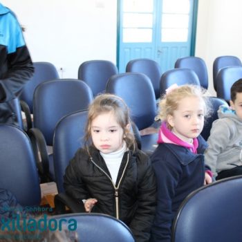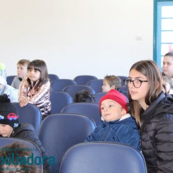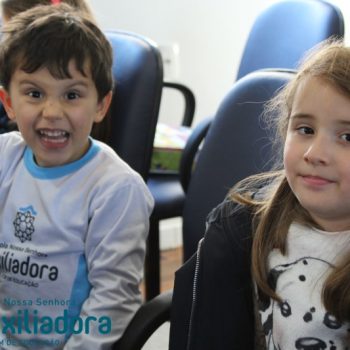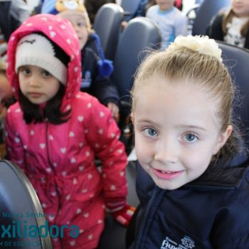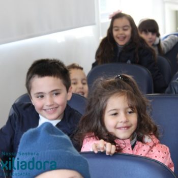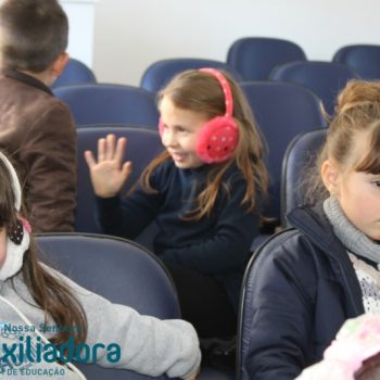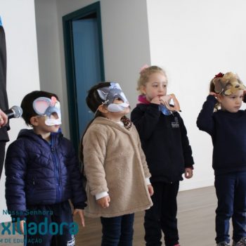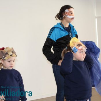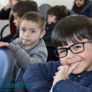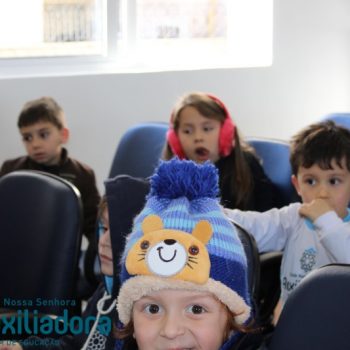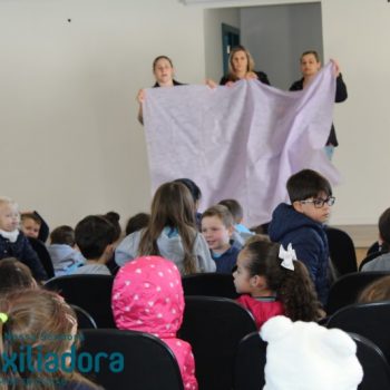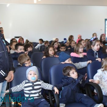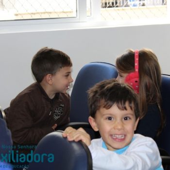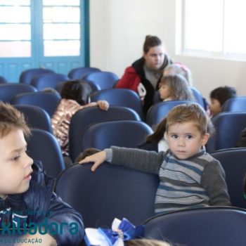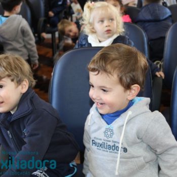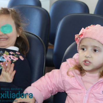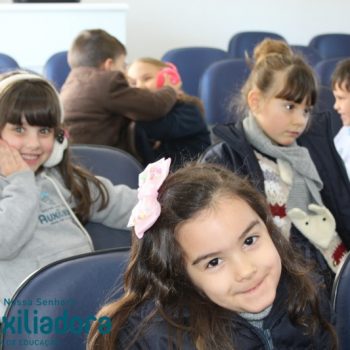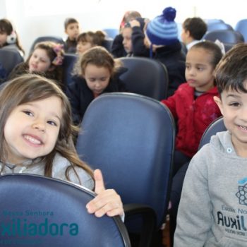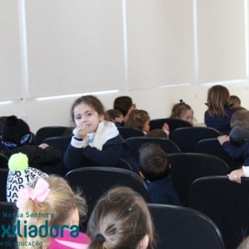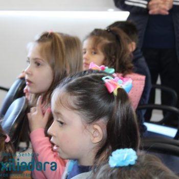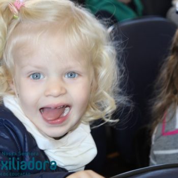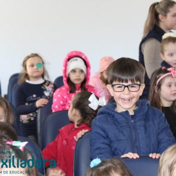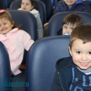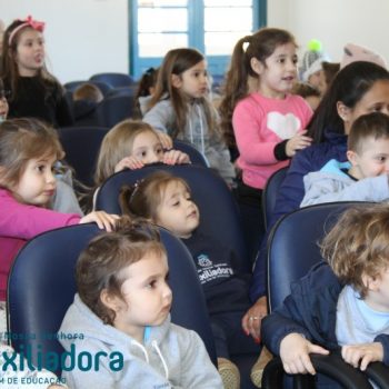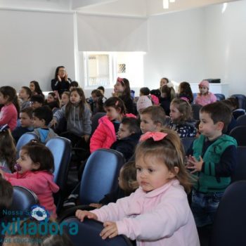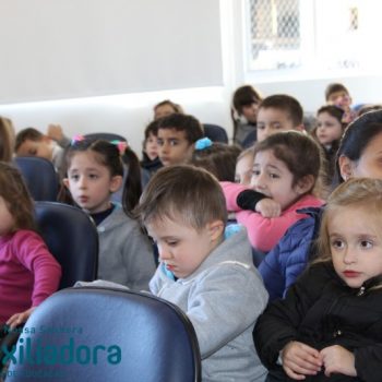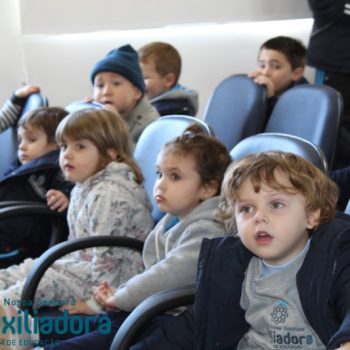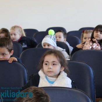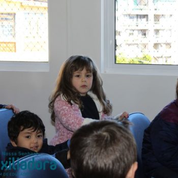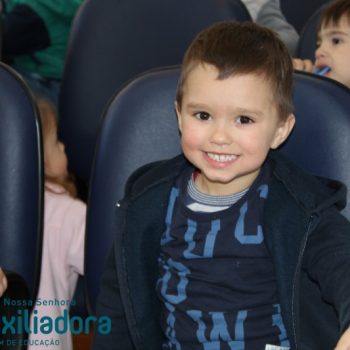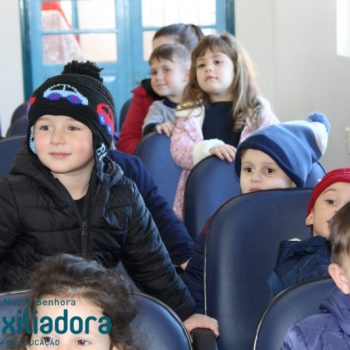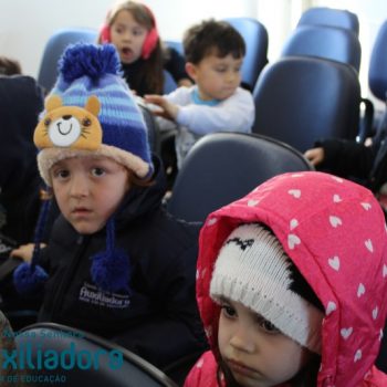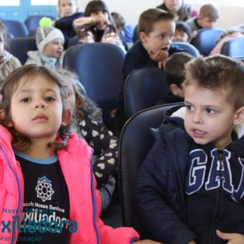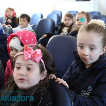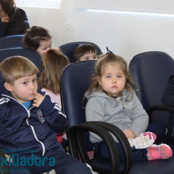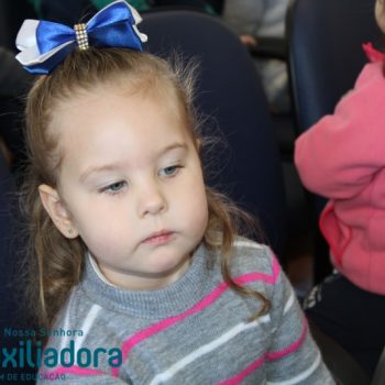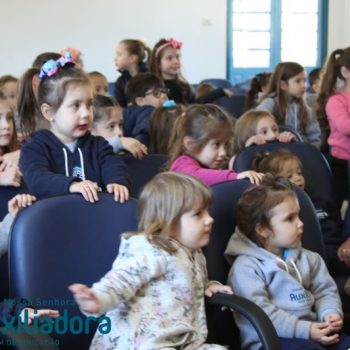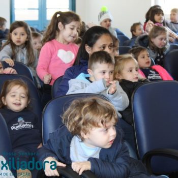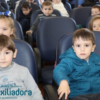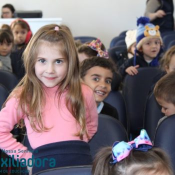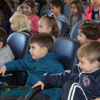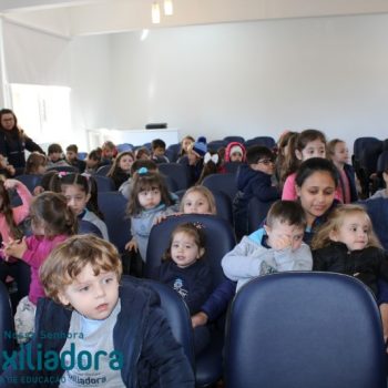 A galerinha da Educação Infantil acompanhou contações de histórias no auditório da Escola.