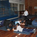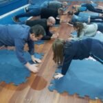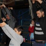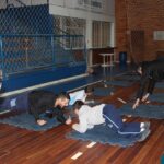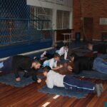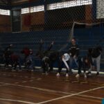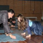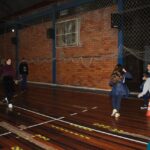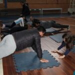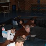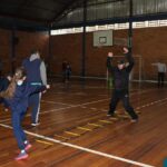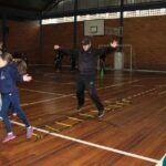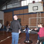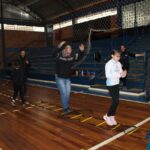 Os filhos fizeram uma oração pelos pais e depois todos participaram de um circuito de atividades físicas!