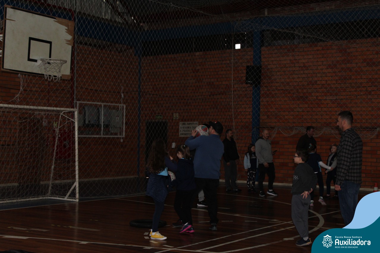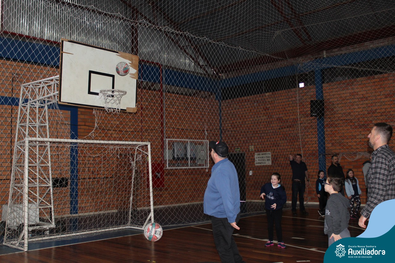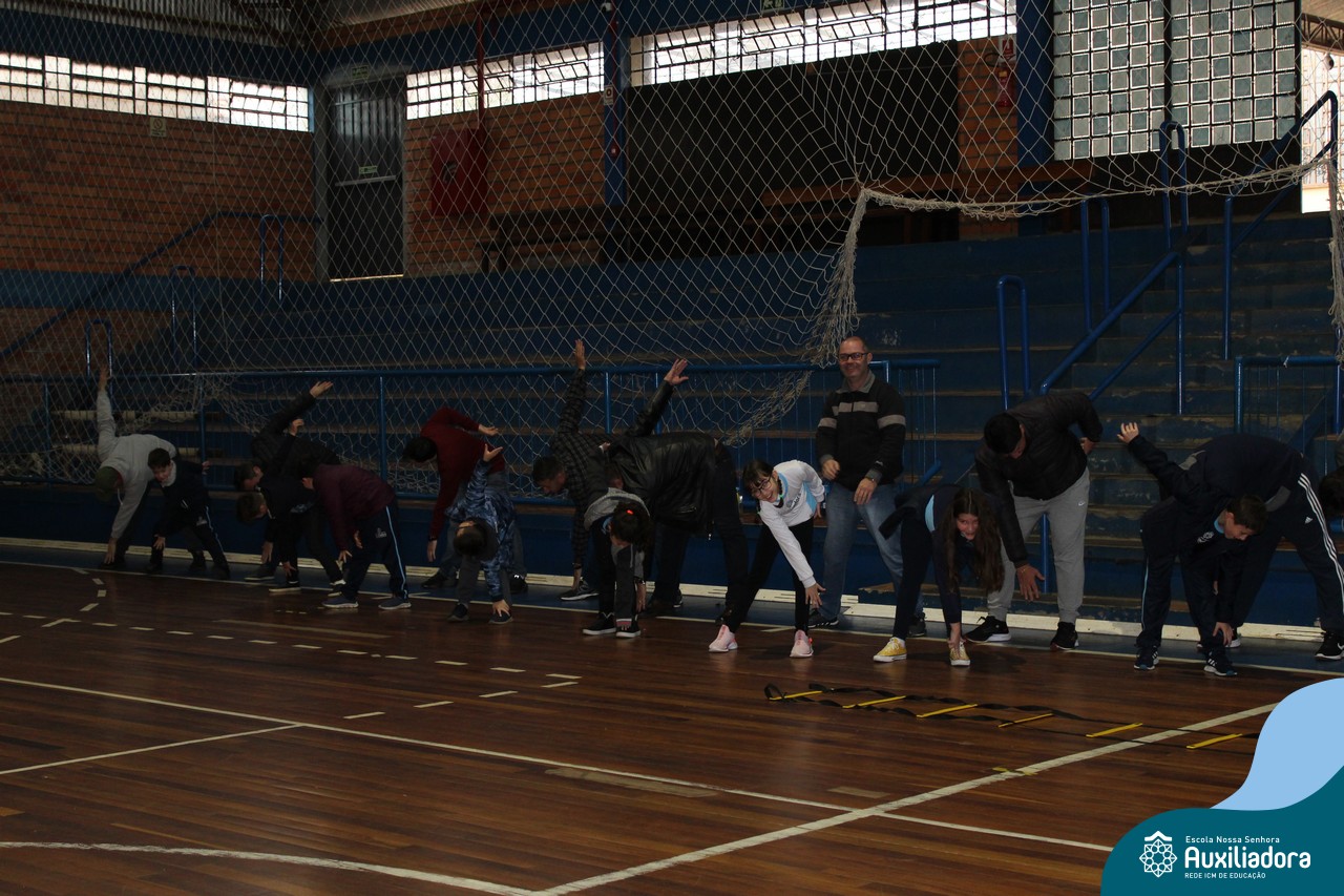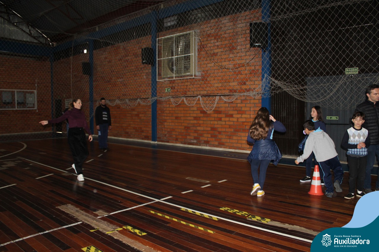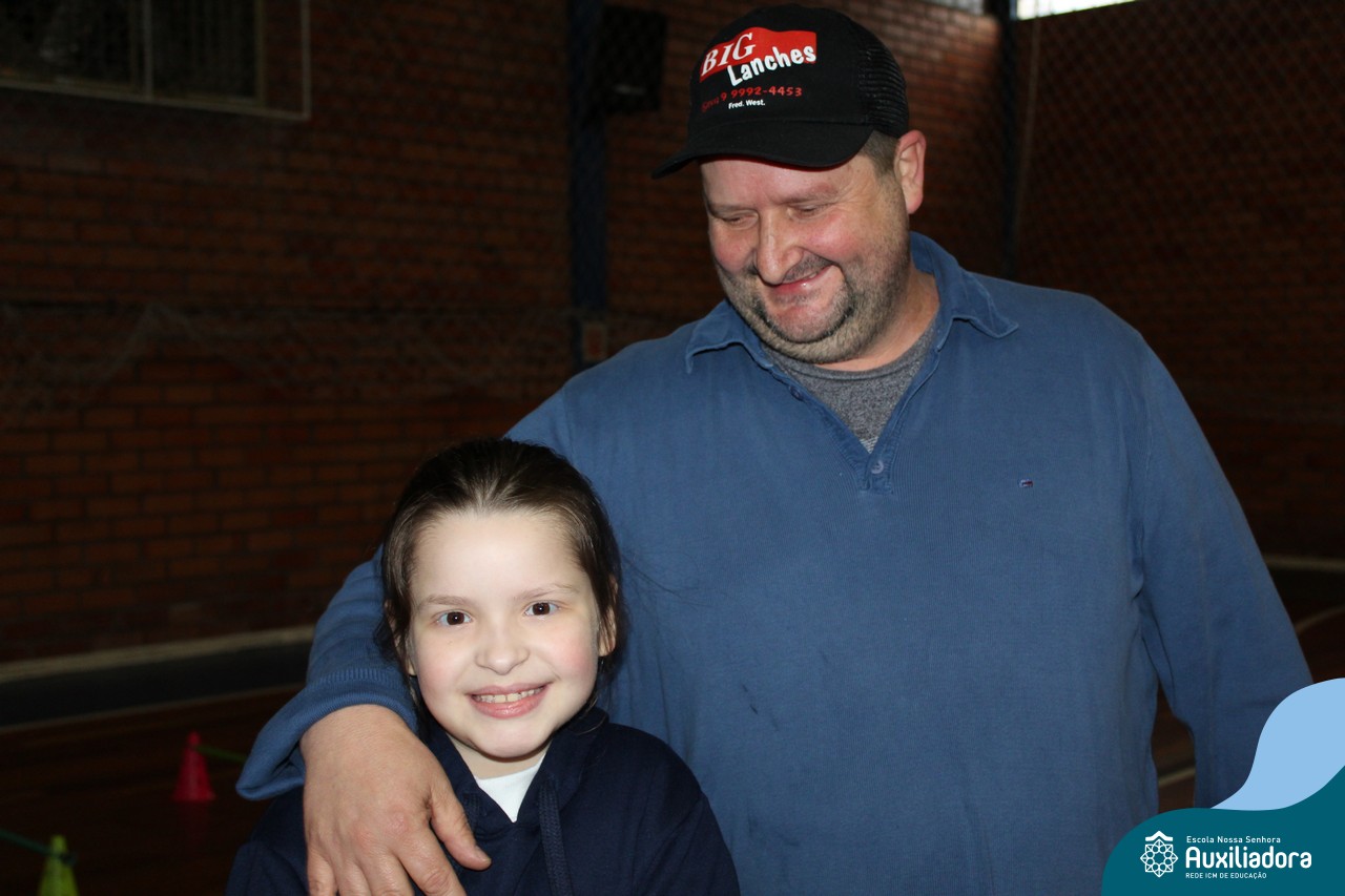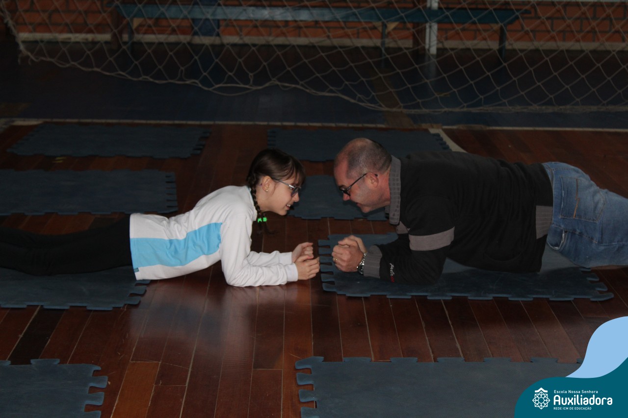 Os filhos fizeram uma oração pelos pais e depois todos participaram de um circuito de atividades físicas!
