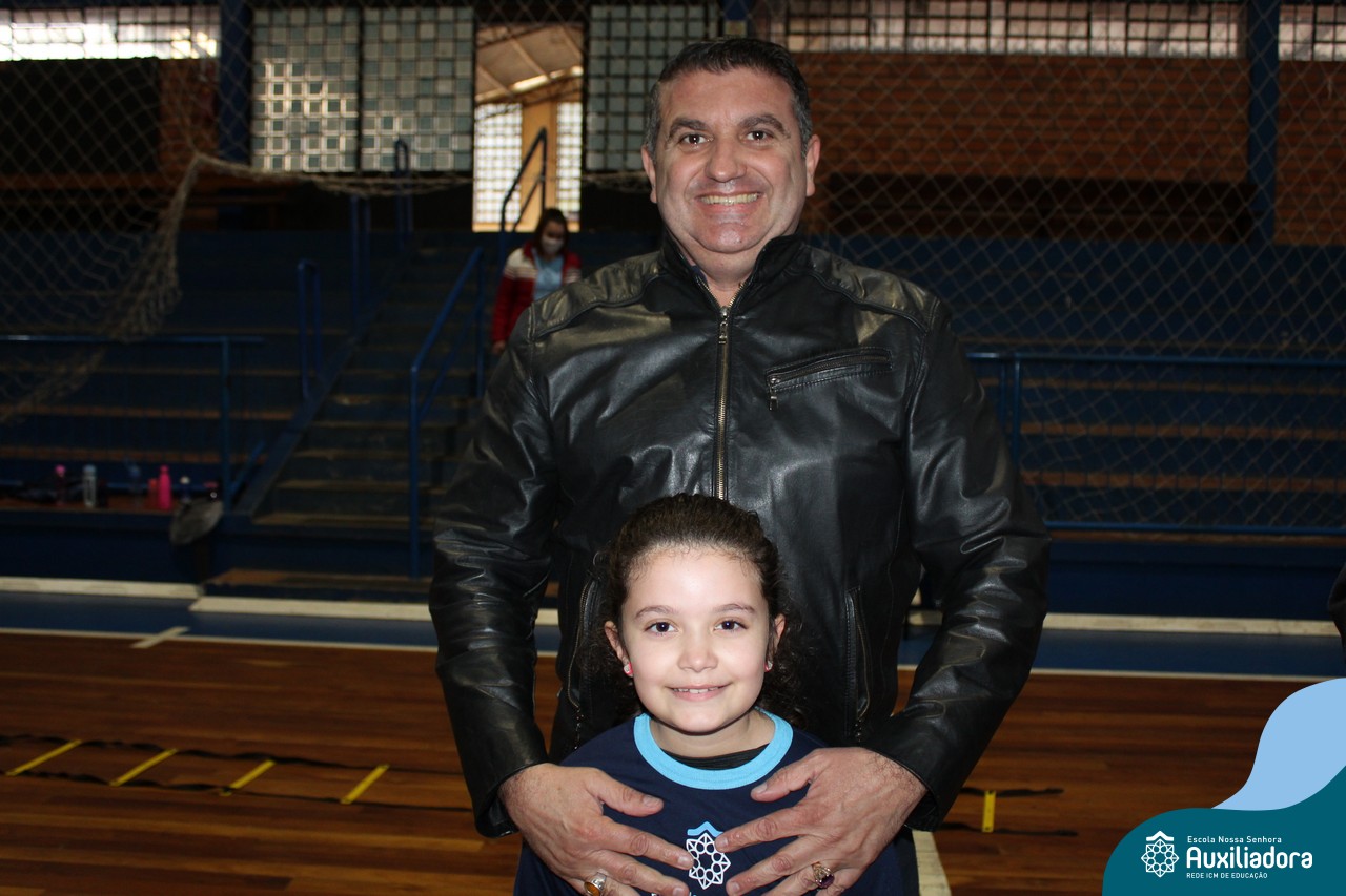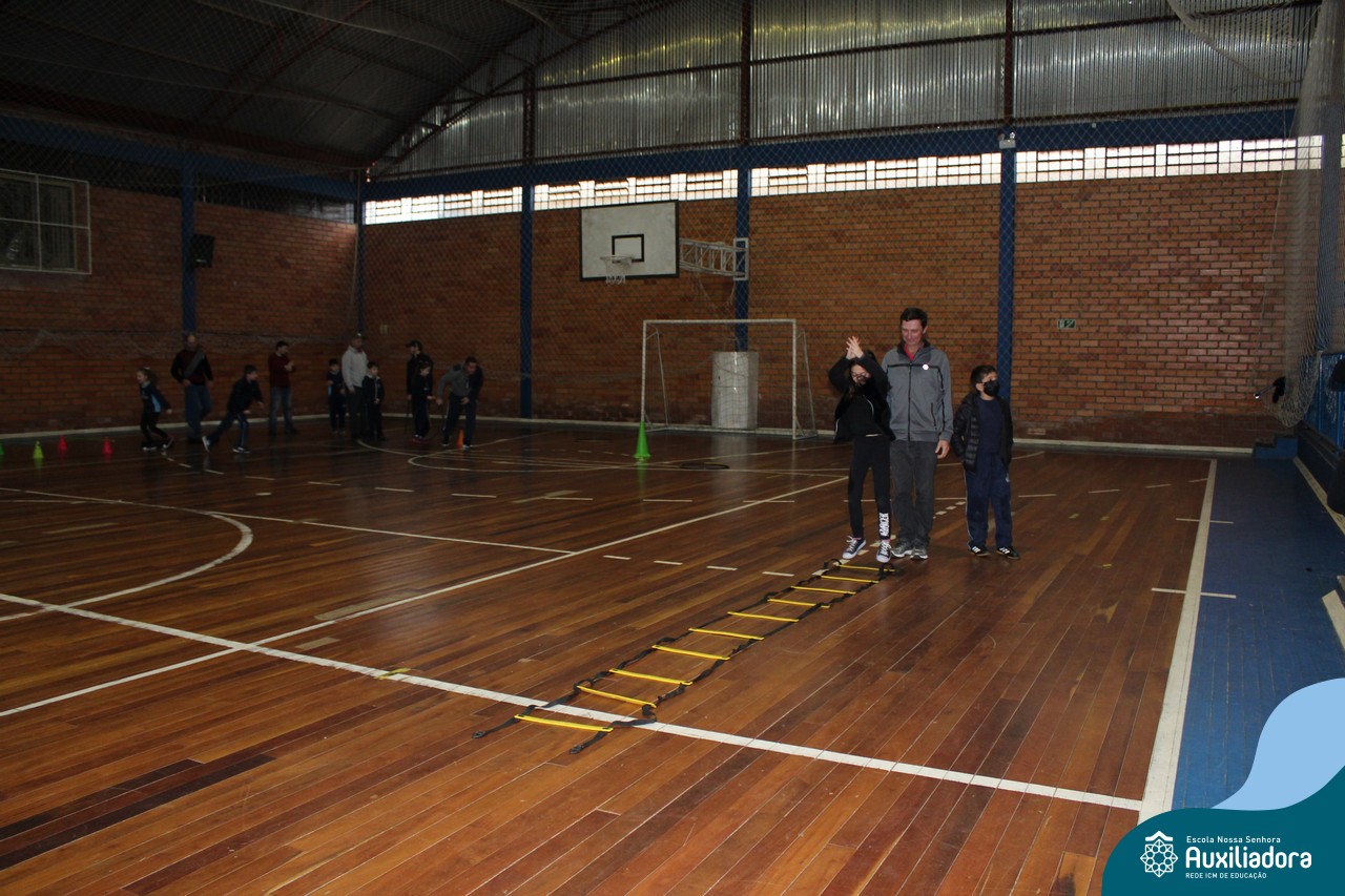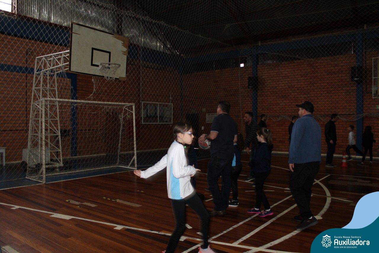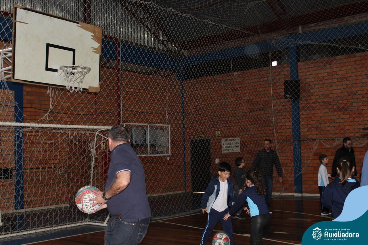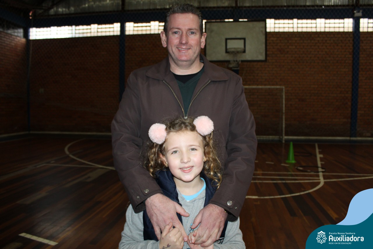 Os filhos fizeram uma oração pelos pais e depois todos participaram de um circuito de atividades físicas!