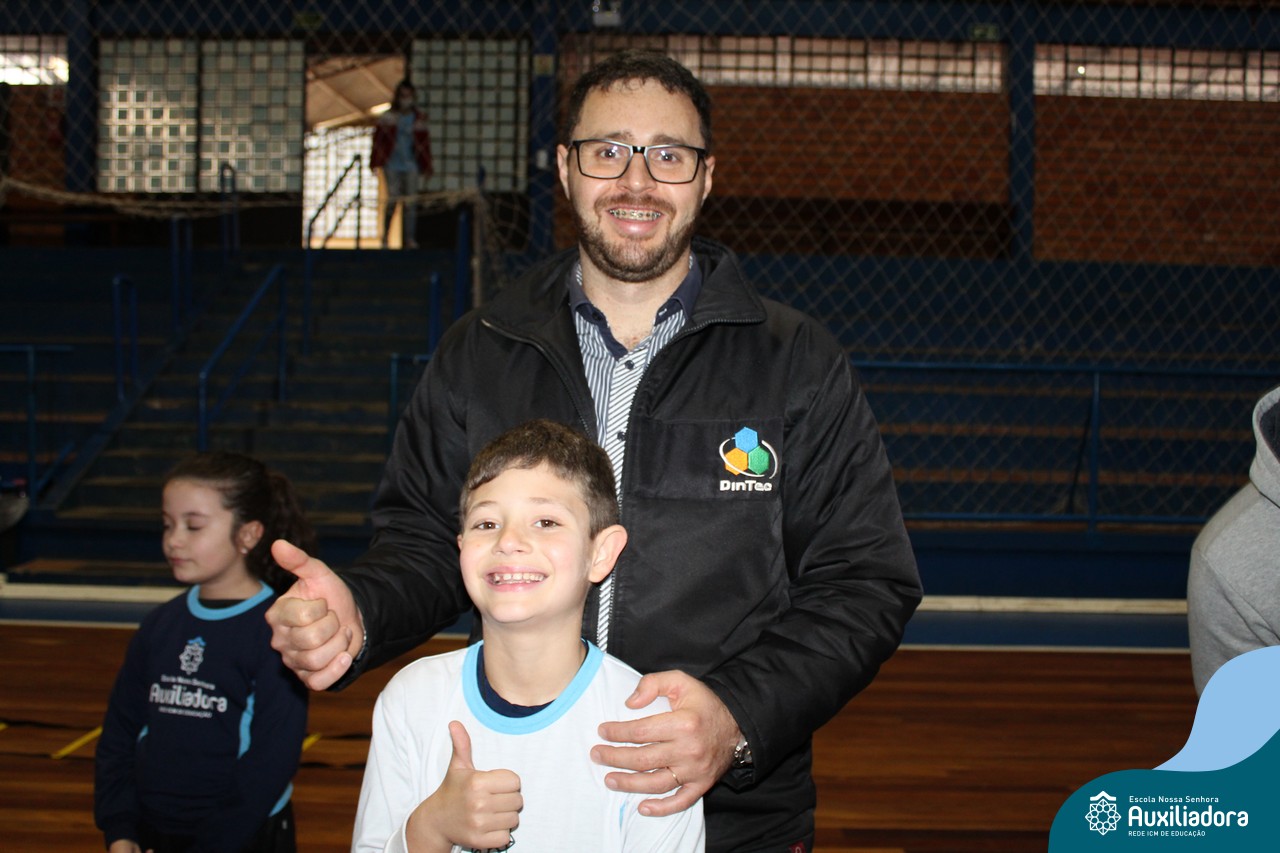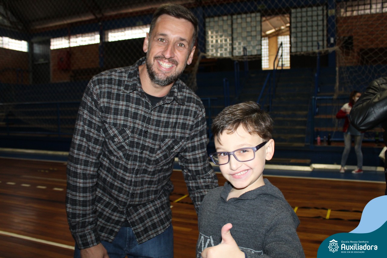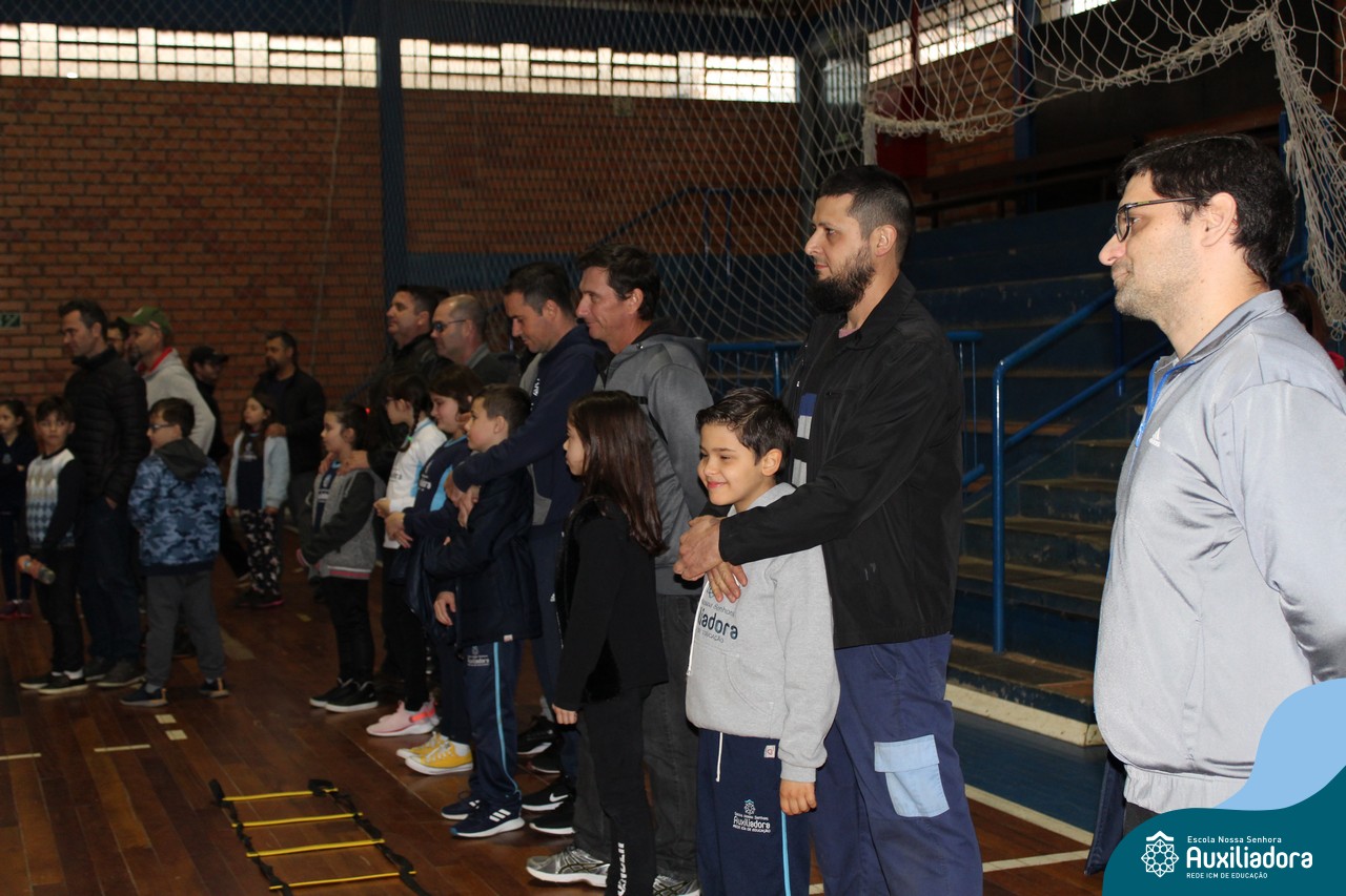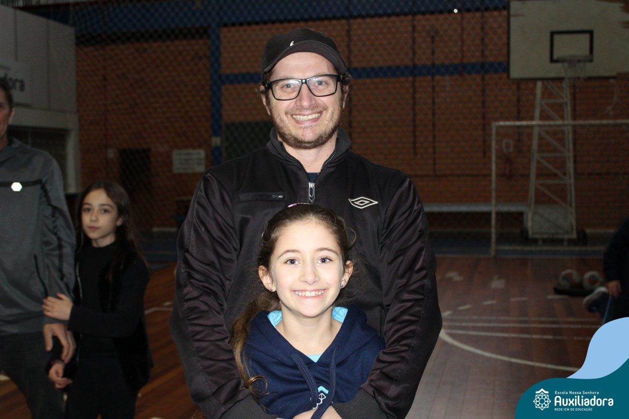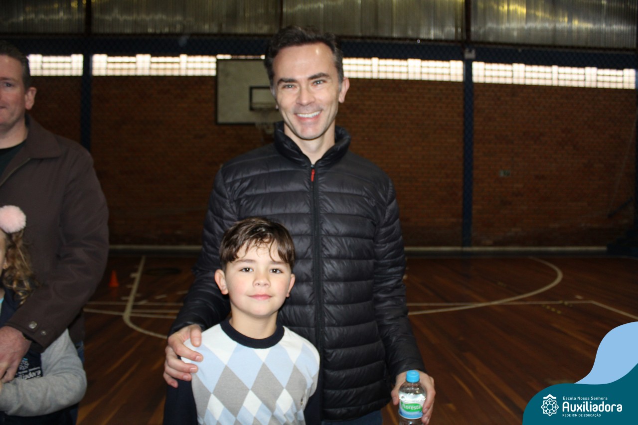 Os filhos fizeram uma oração pelos pais e depois todos participaram de um circuito de atividades físicas!