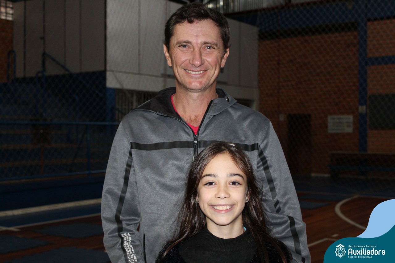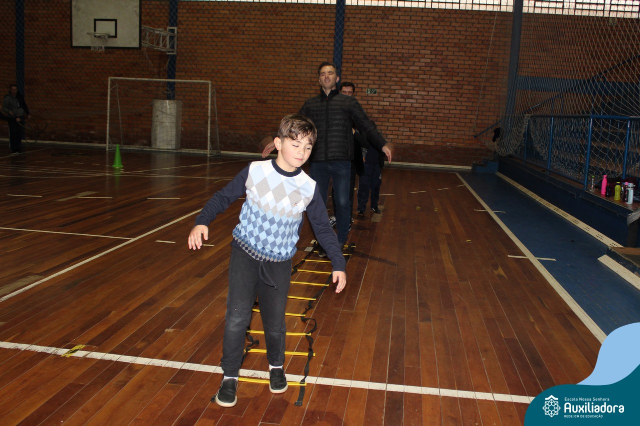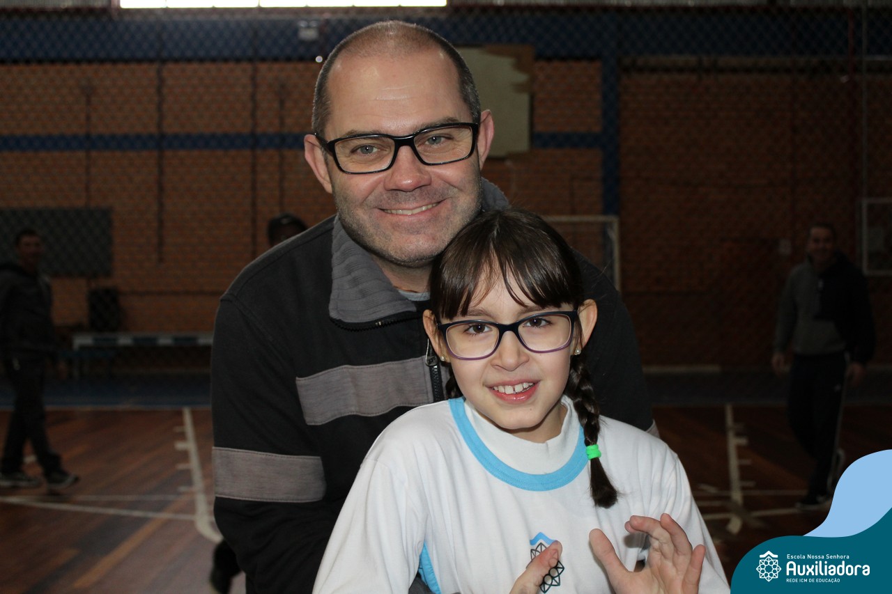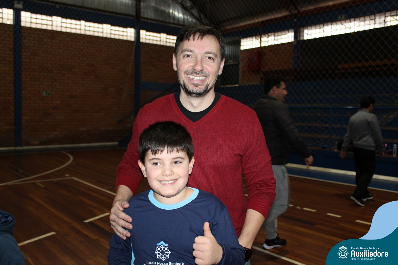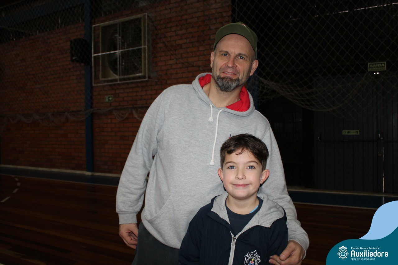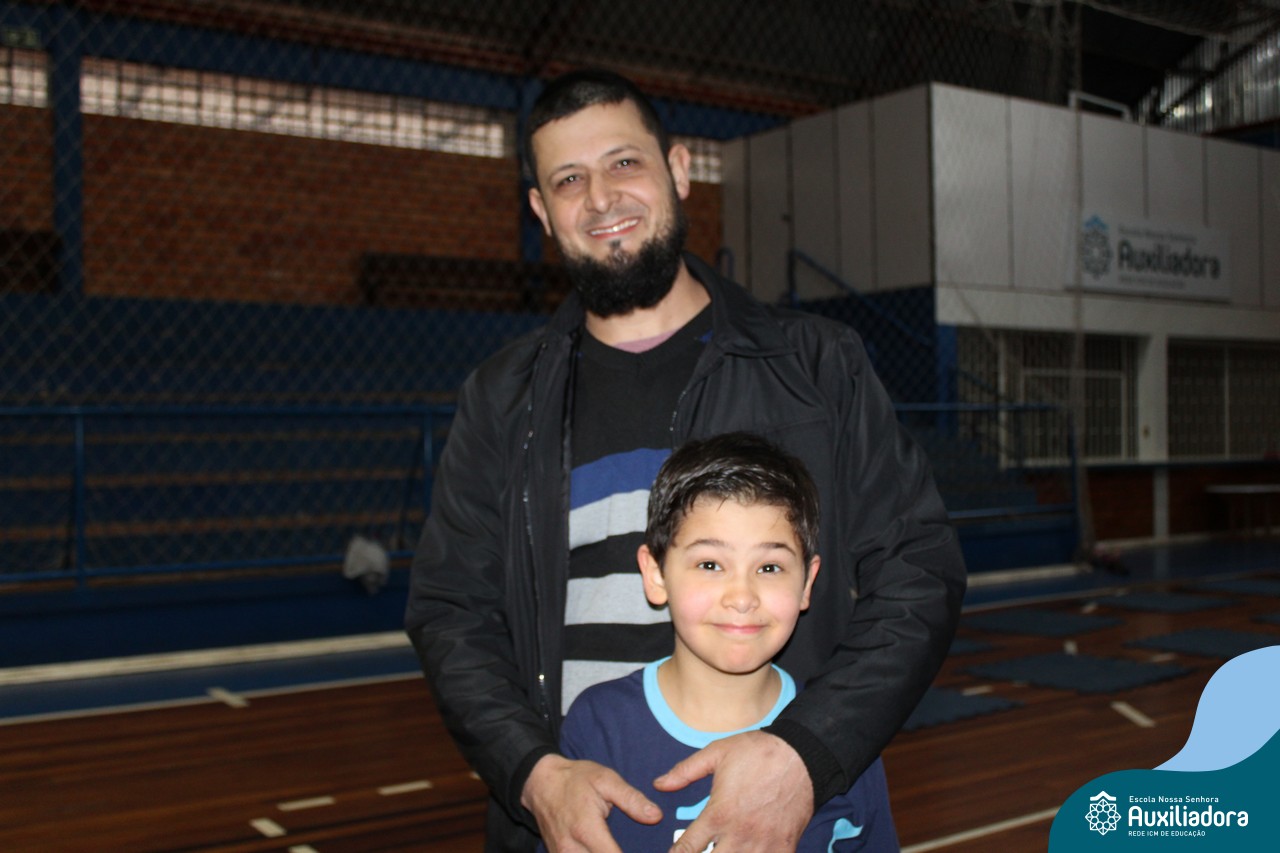 Os filhos fizeram uma oração pelos pais e depois todos participaram de um circuito de atividades físicas!