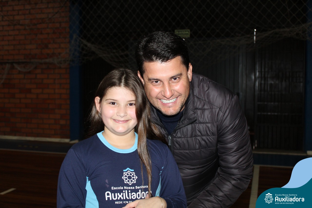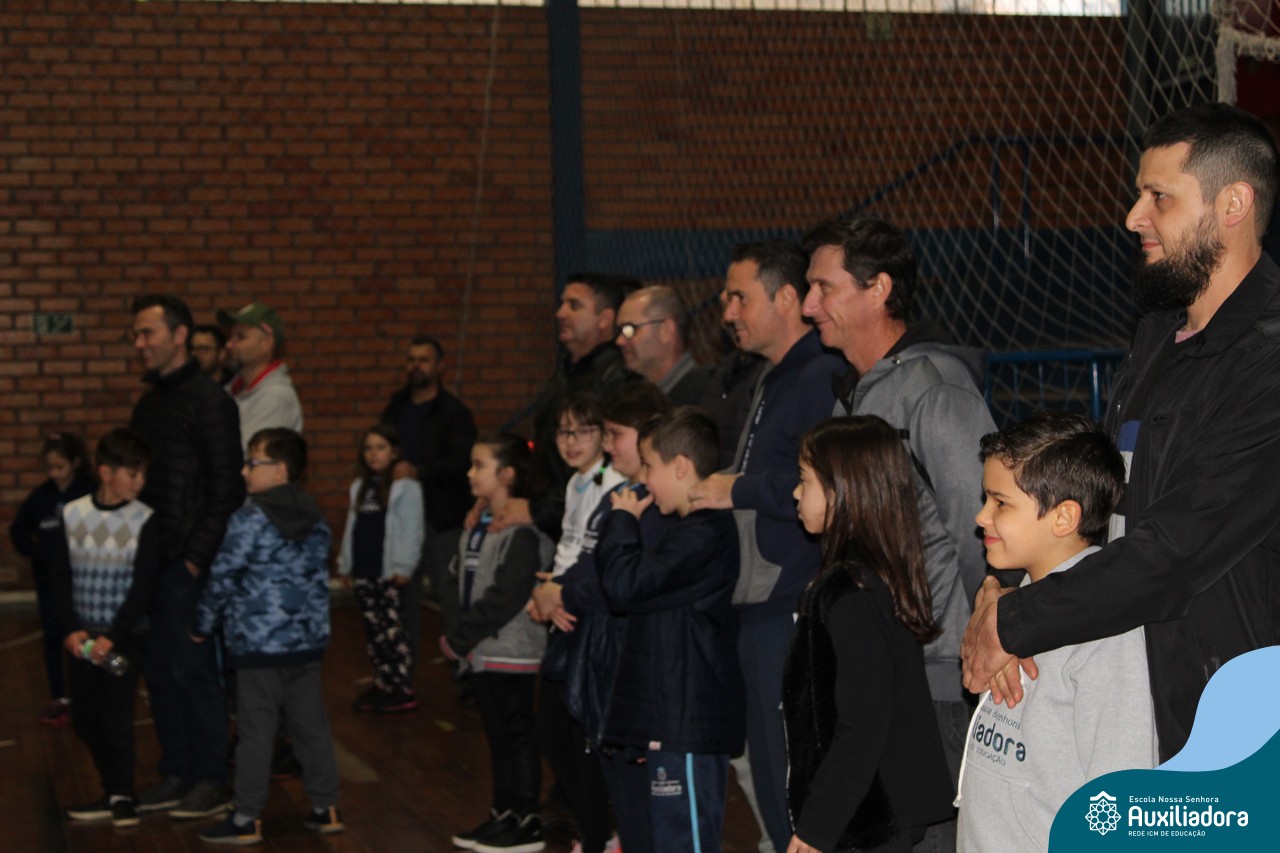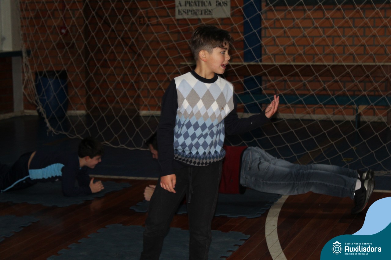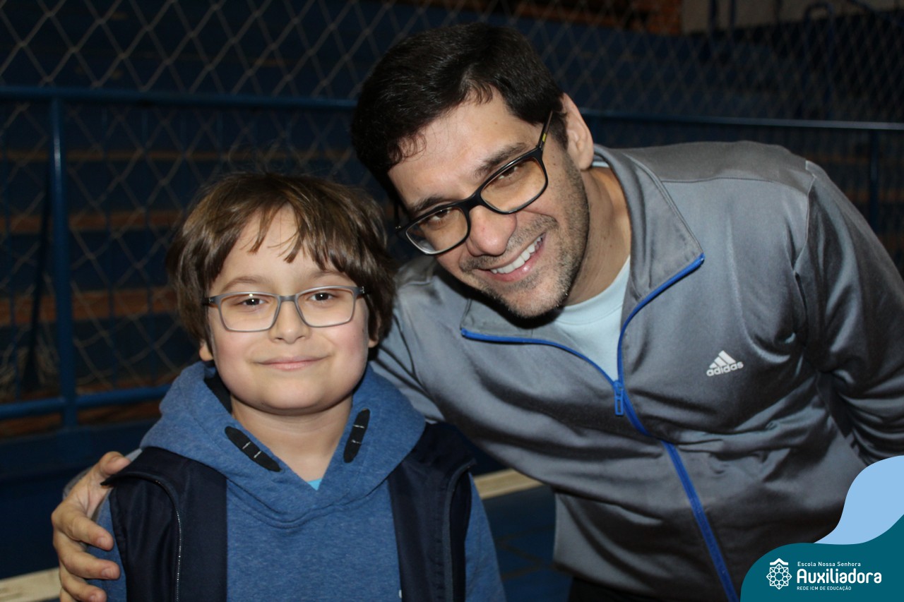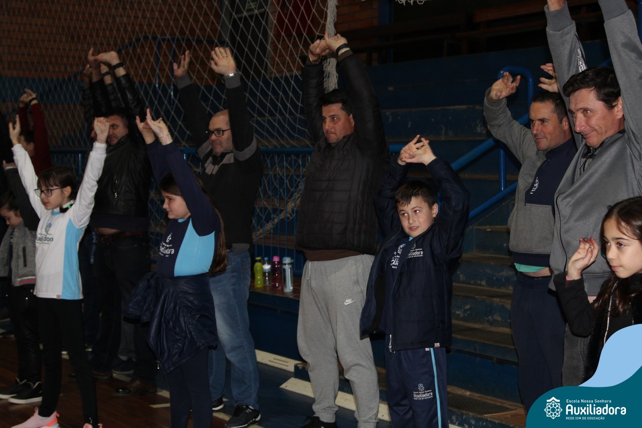 Os filhos fizeram uma oração pelos pais e depois todos participaram de um circuito de atividades físicas!
