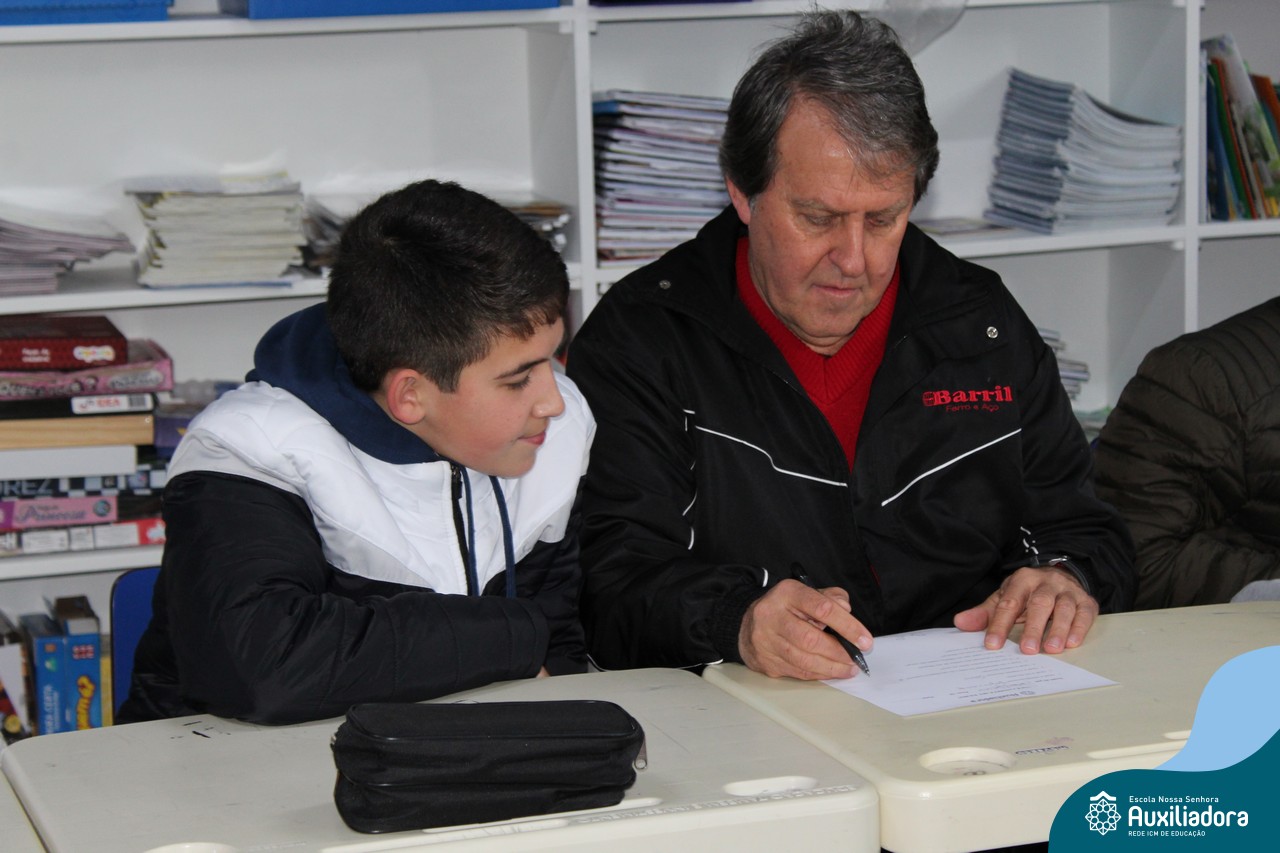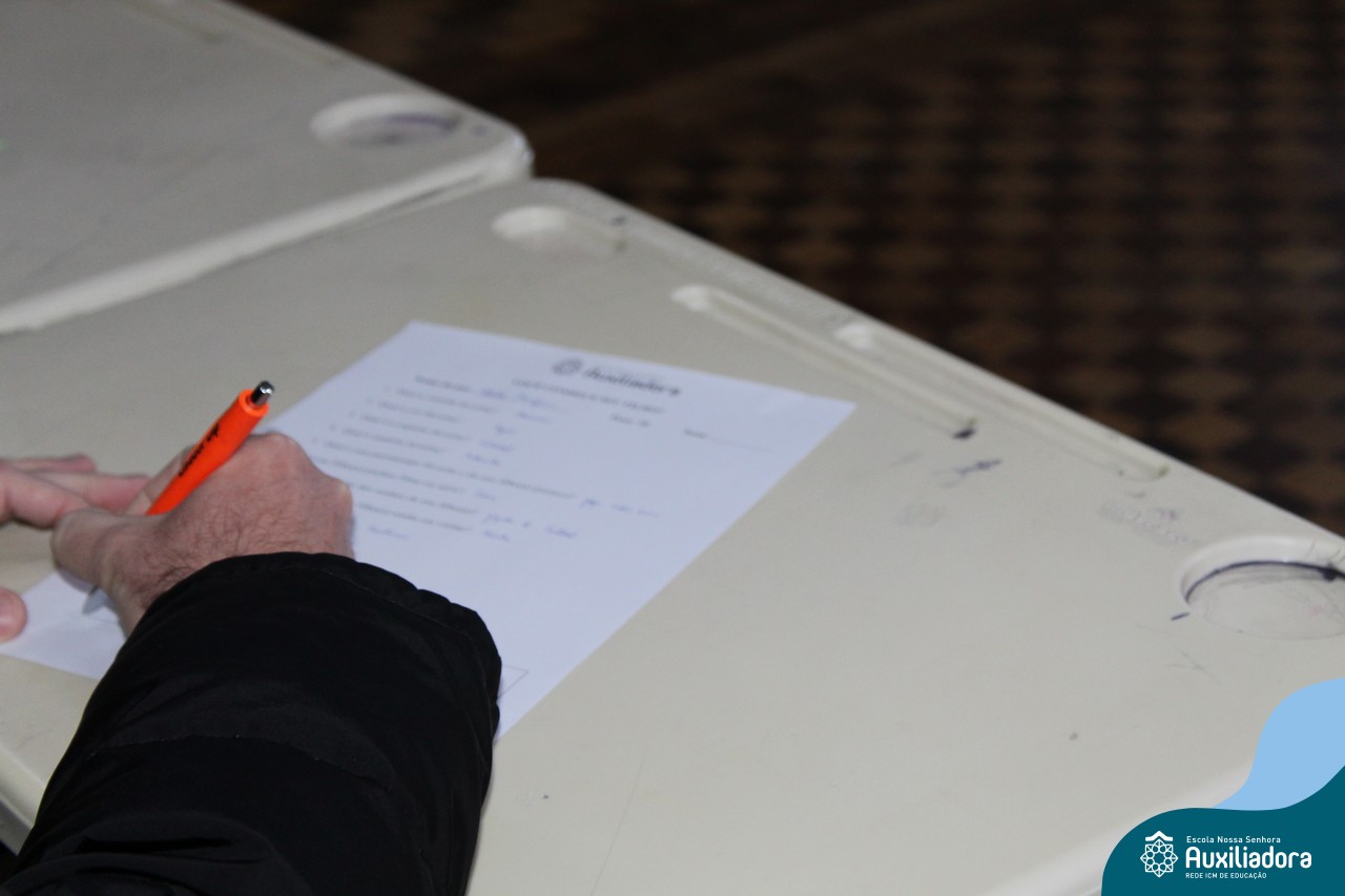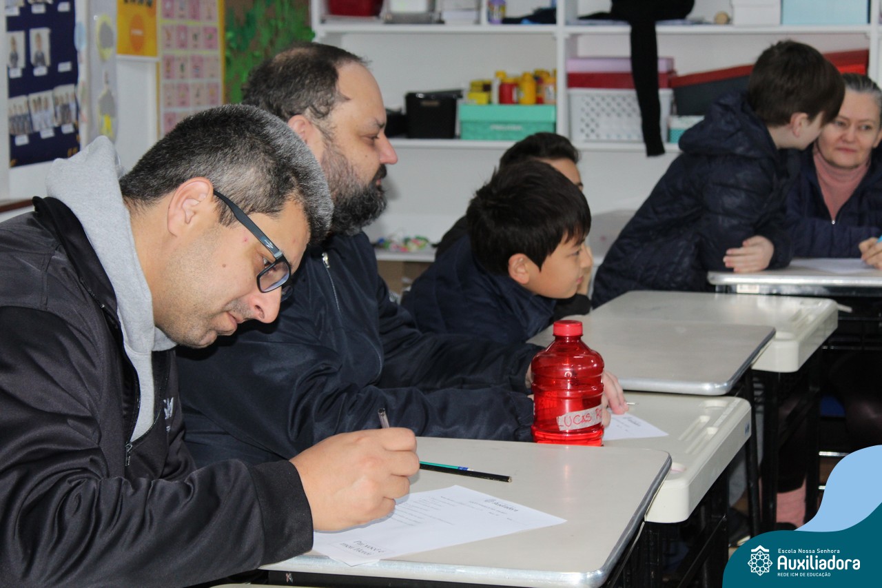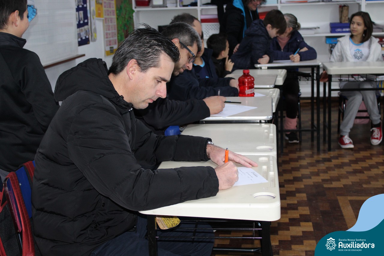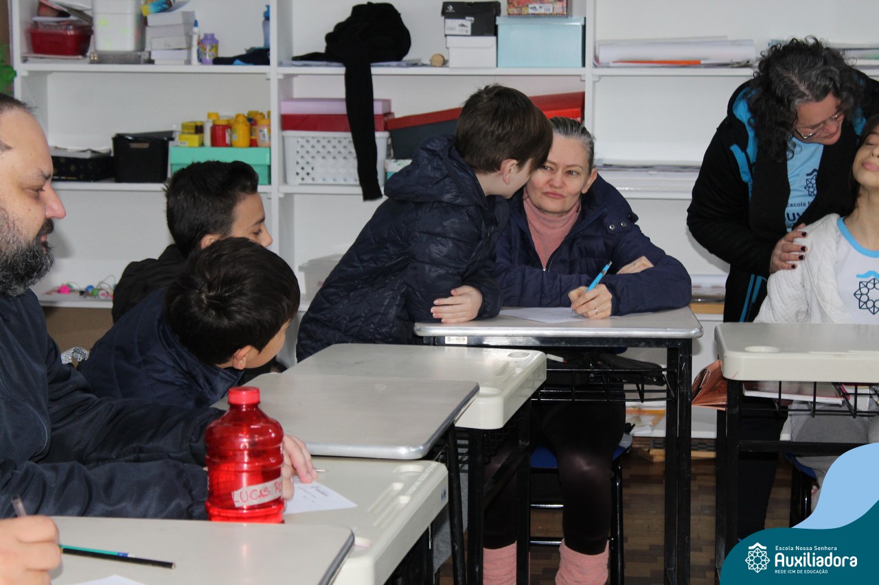 Com muita diversão e sorrisos, os alunos preparam uma avaliação para seus pais, que questionava sobre os seus gostos, hábitos e desejos. Todos aproveitaram o momento de troca de afeto para conversar e compartilhar de bons momentos.