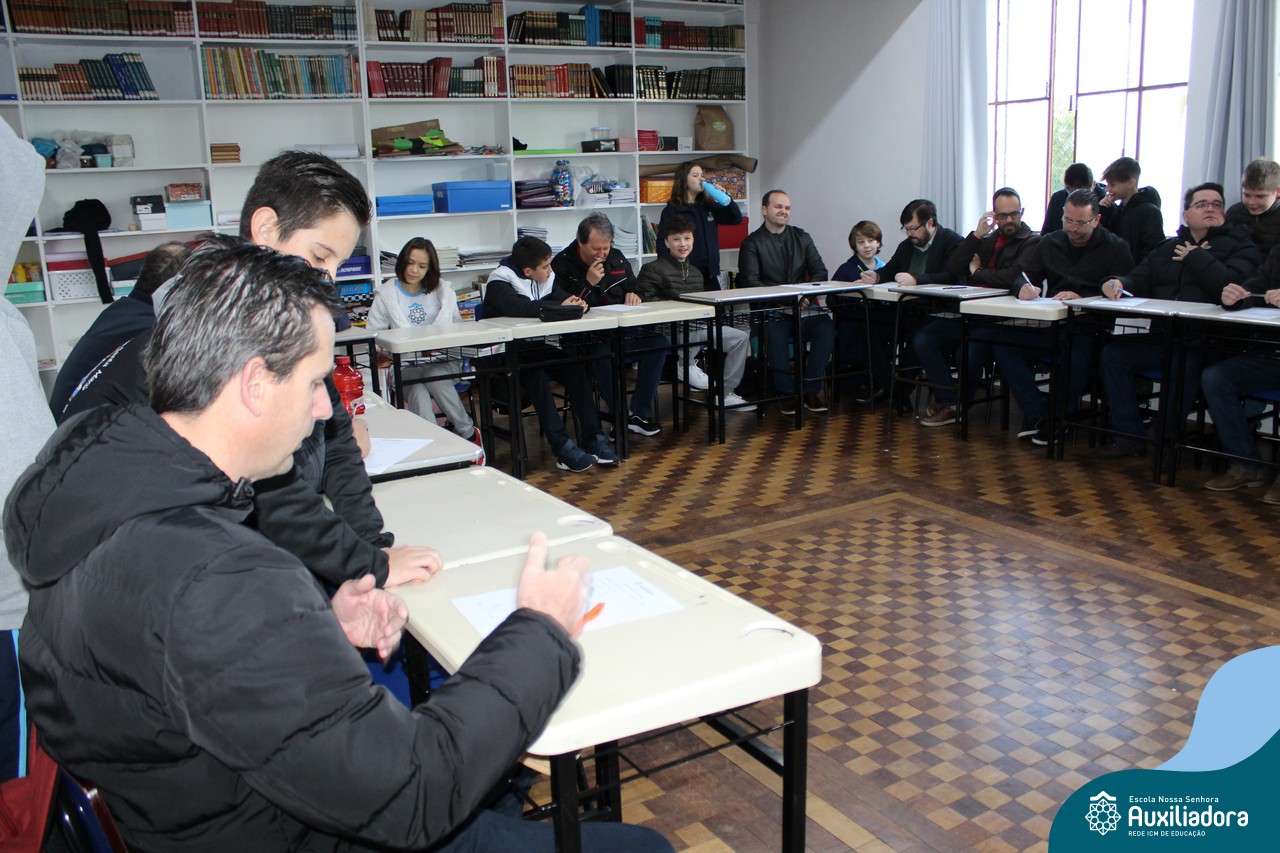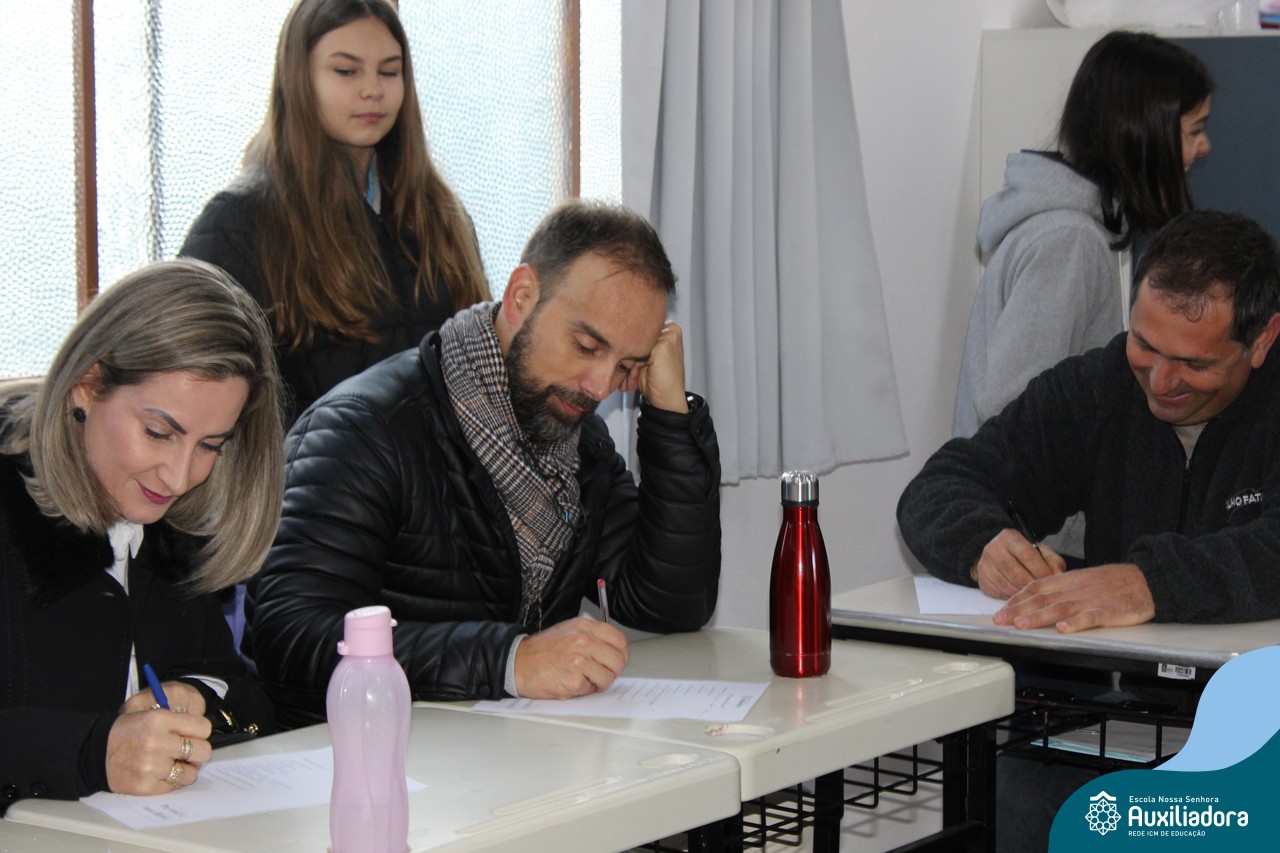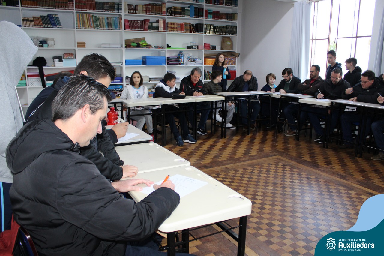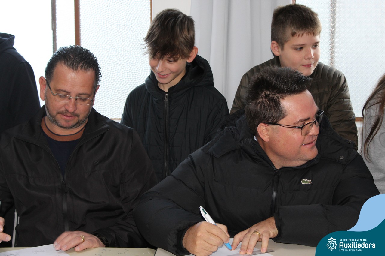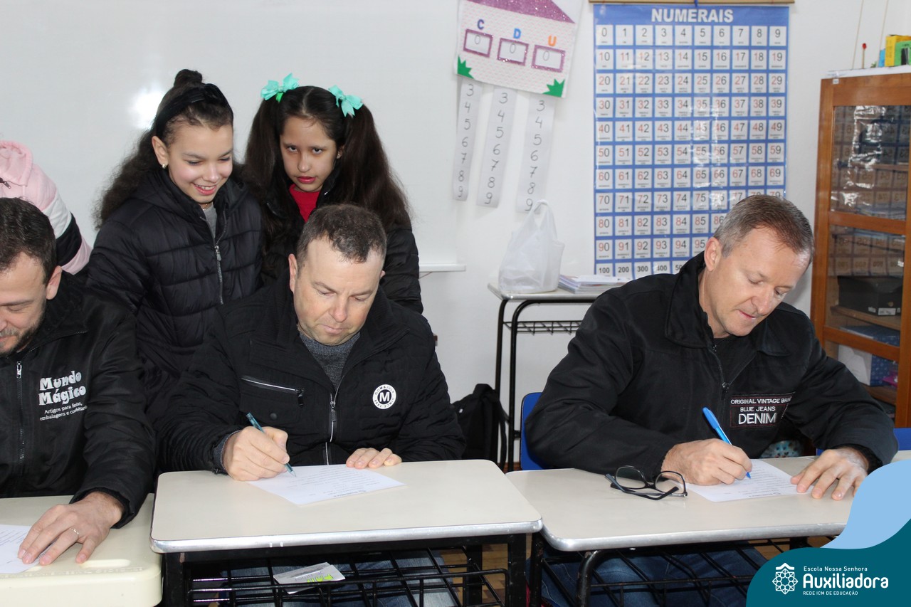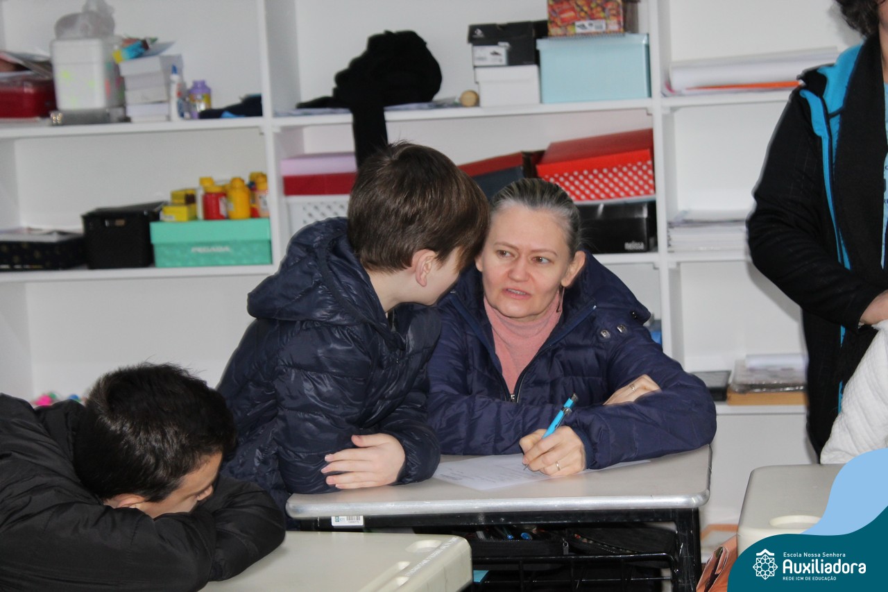 Com muita diversão e sorrisos, os alunos preparam uma avaliação para seus pais, que questionava sobre os seus gostos, hábitos e desejos. Todos aproveitaram o momento de troca de afeto para conversar e compartilhar de bons momentos.