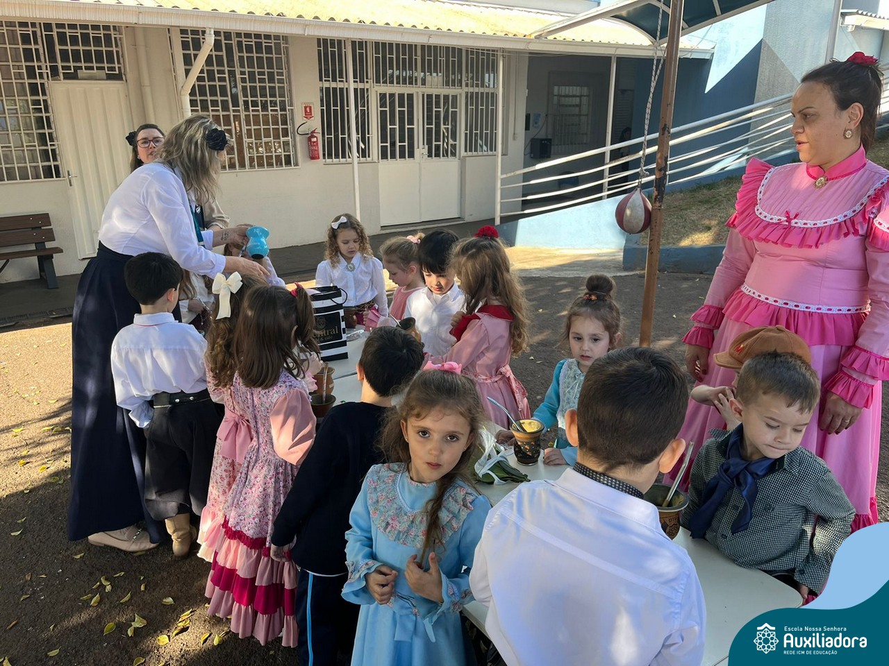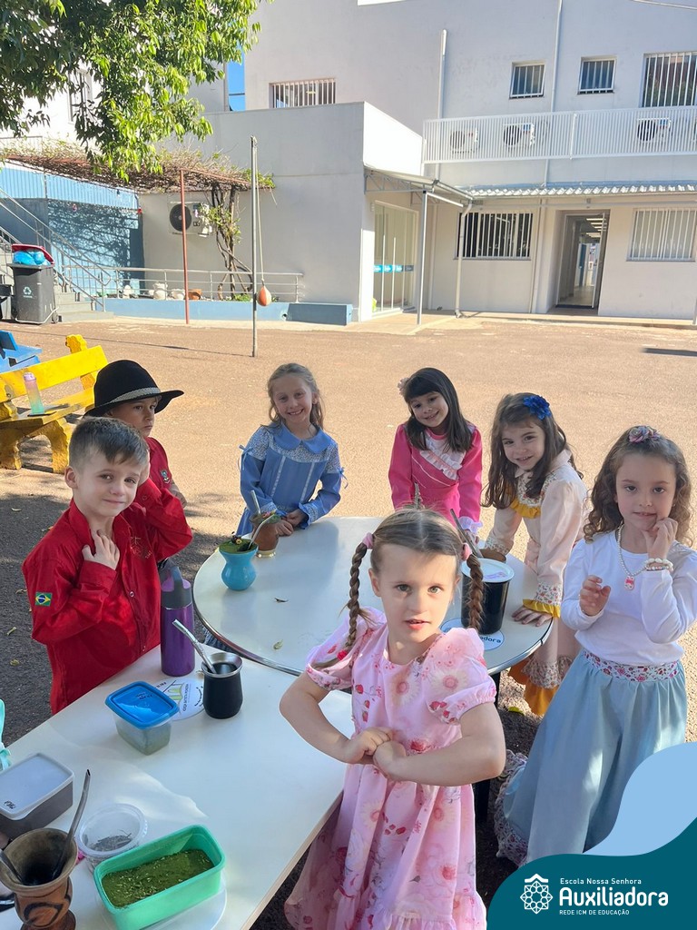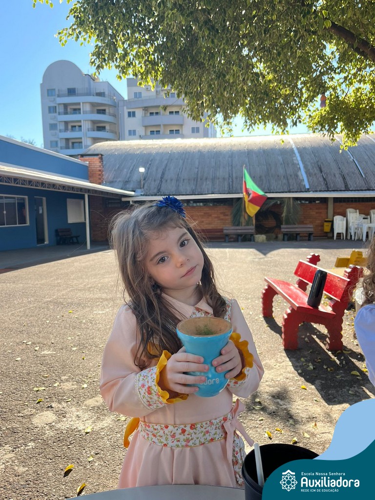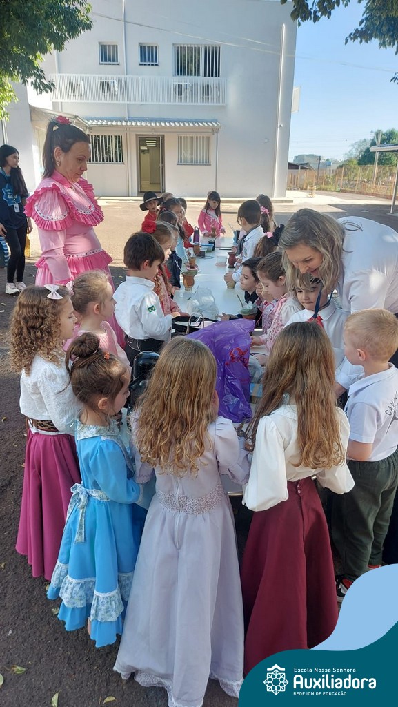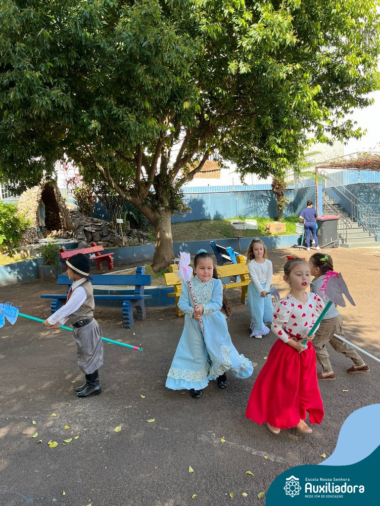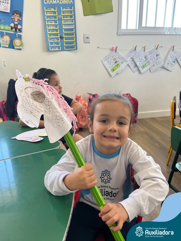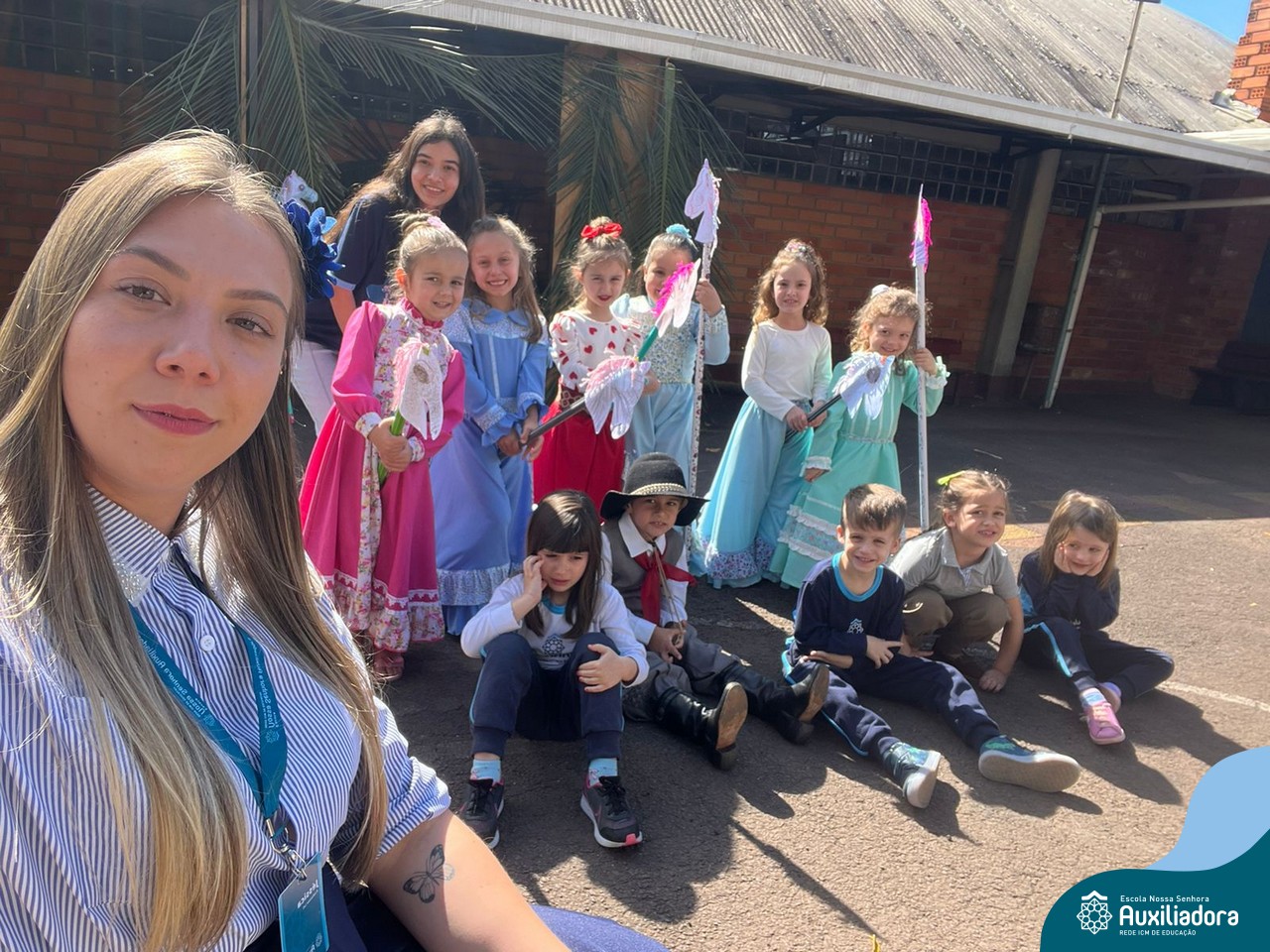 Na abertura da Semana Farroupilha, as crianças vieram vestidas a caráter, trazendo o espírito da tradição gaúcha para nossa escola. Durante a aula brincaram animadamente com seus cavalos de pau, vivenciando momentos de alegria e conexão com a cultura gaúcha.
