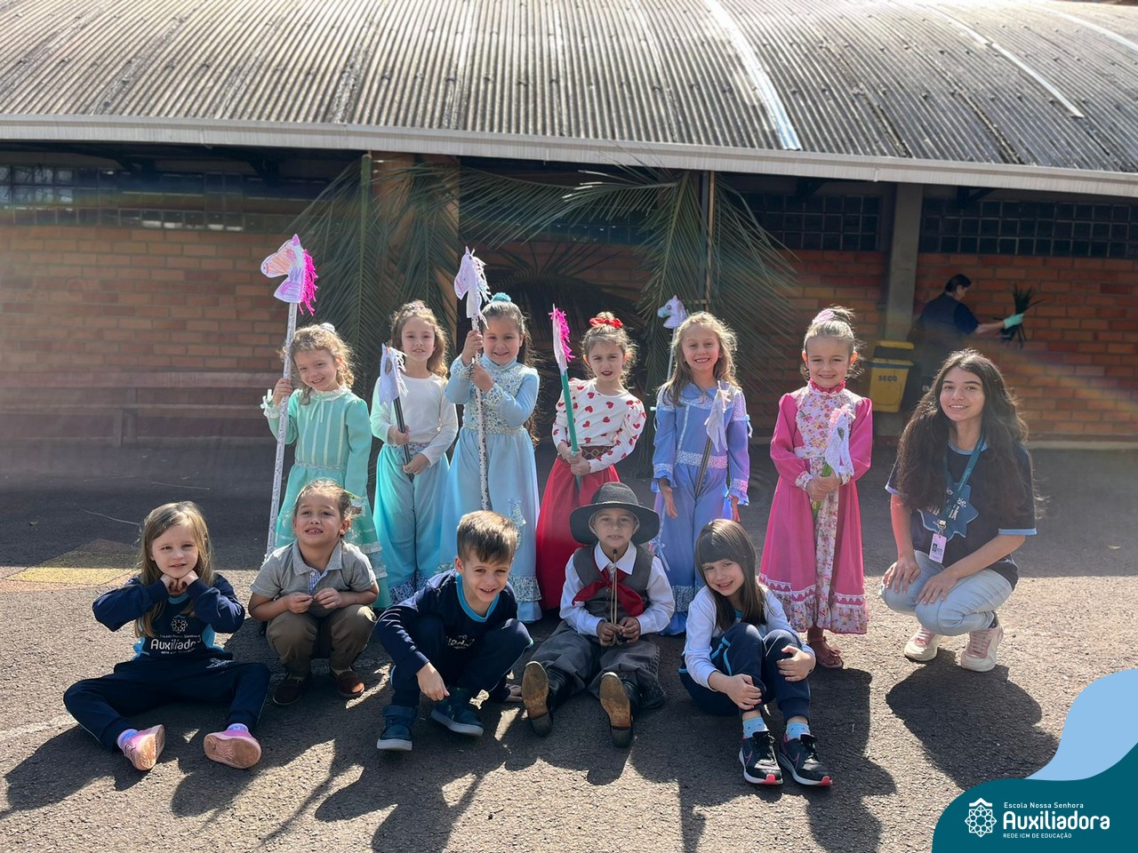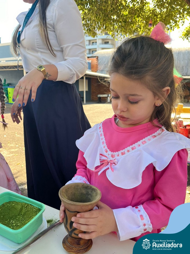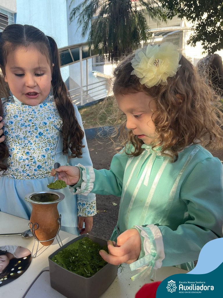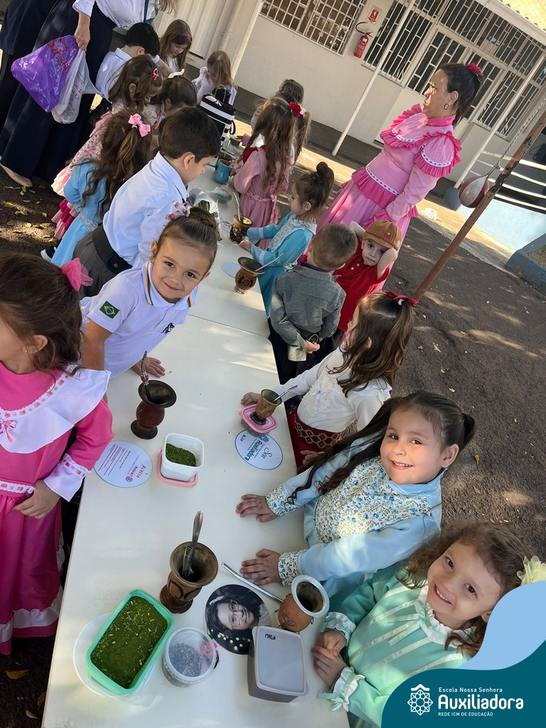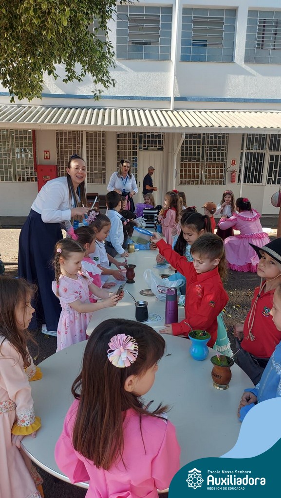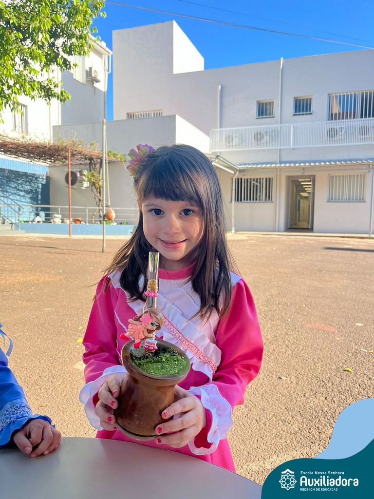 Na abertura da Semana Farroupilha, as crianças vieram vestidas a caráter, trazendo o espírito da tradição gaúcha para nossa escola. Durante a aula brincaram animadamente com seus cavalos de pau, vivenciando momentos de alegria e conexão com a cultura gaúcha.