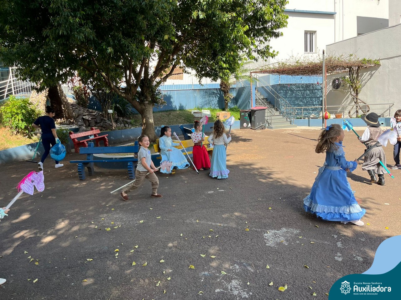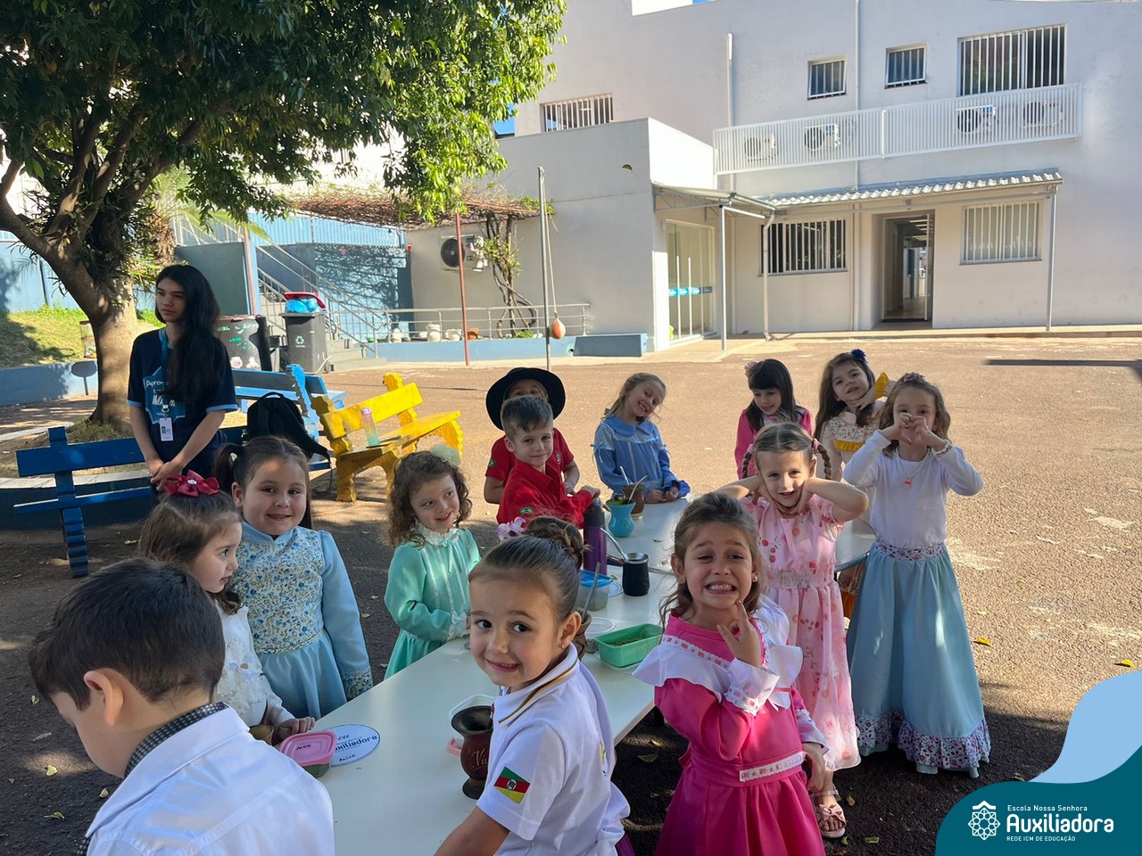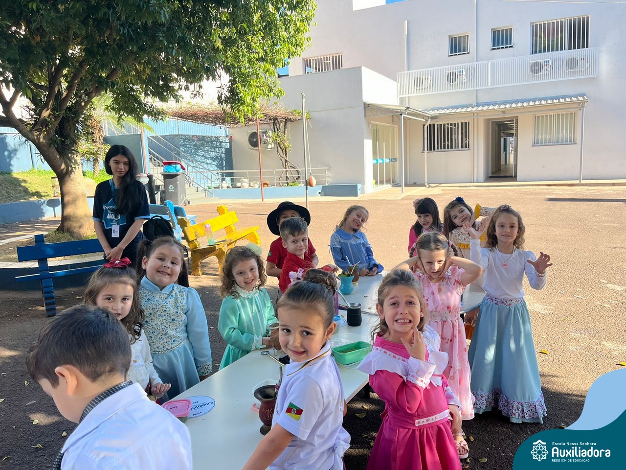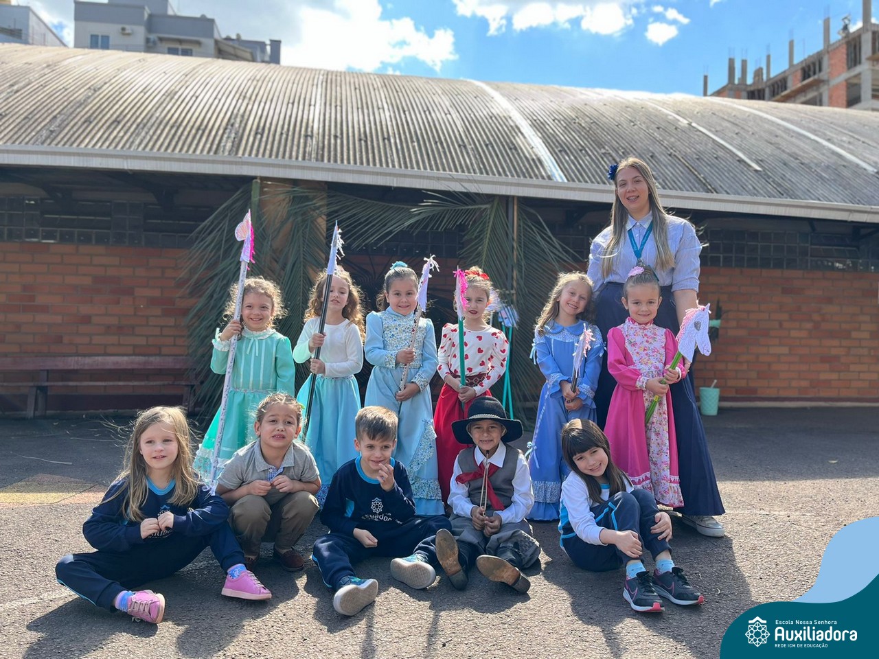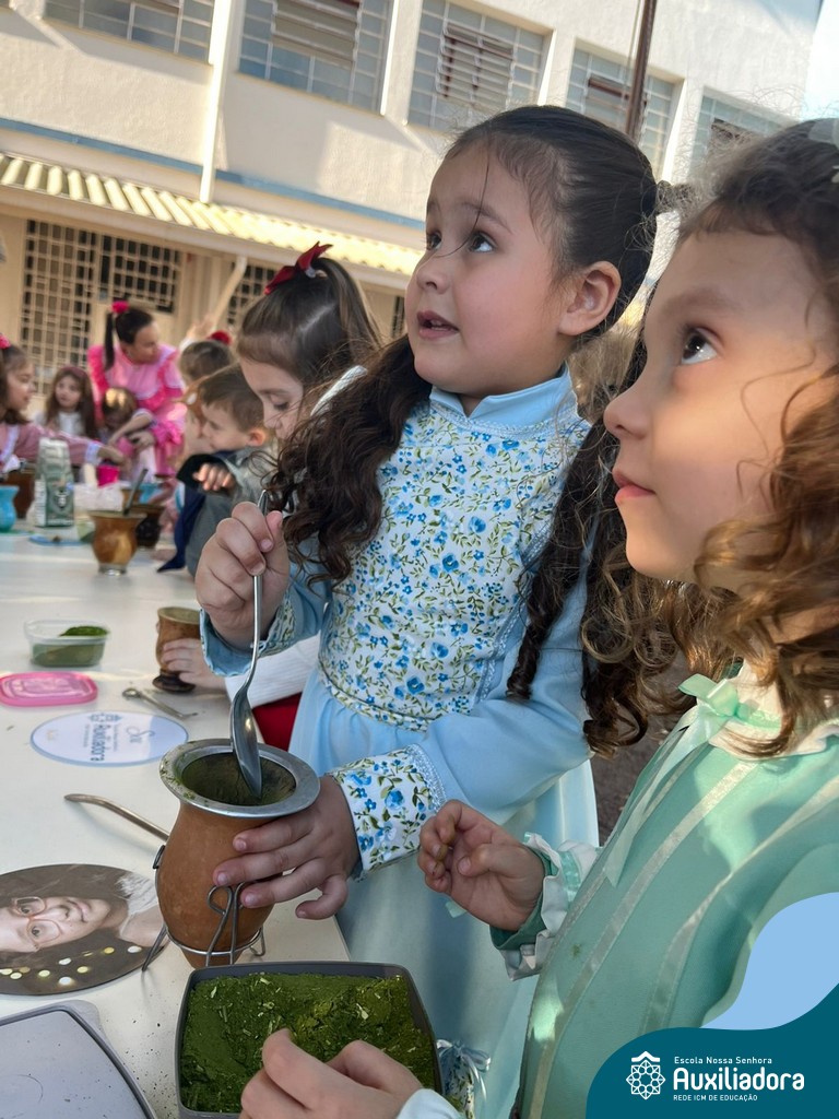 Na abertura da Semana Farroupilha, as crianças vieram vestidas a caráter, trazendo o espírito da tradição gaúcha para nossa escola. Durante a aula brincaram animadamente com seus cavalos de pau, vivenciando momentos de alegria e conexão com a cultura gaúcha.