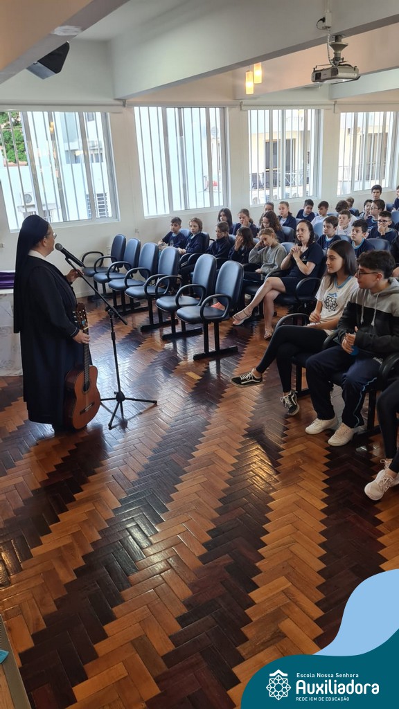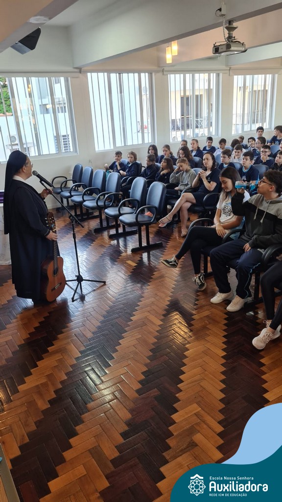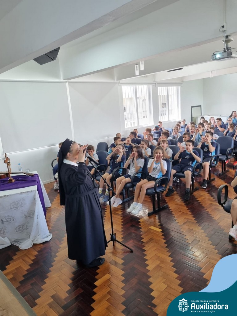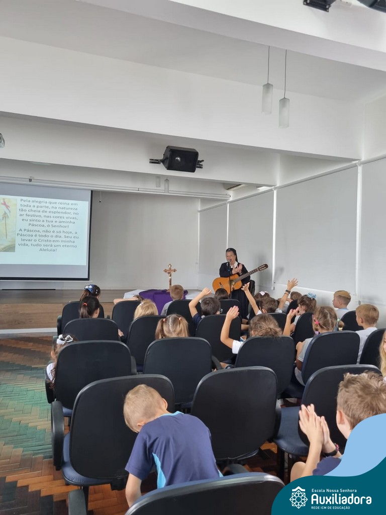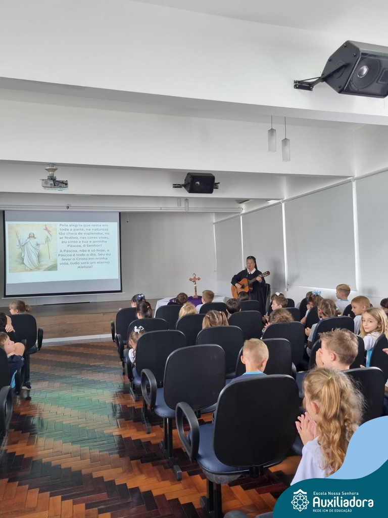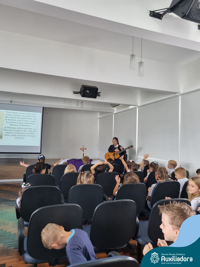Na última segunda-feira, a nossa escola foi palco de uma emocionante serenata em homenagem a Jesus, realizada pela Irmã Elaine com sua voz com voz harmoniosa e suas palavras grandiosas, o ambiente foi preenchido com louvores e gratidão. Foi um momento de união e espiritualidade, onde os estudantes expressaram sua devoção e amor por meio da música. A serenata para Jesus certamente deixou uma marca profunda em todos os presentes, lembrando-nos do verdadeiro sentido da Páscoa, da nossa fé e da comunidade na nossa jornada escolar.