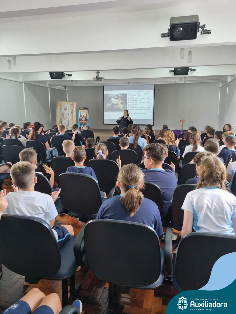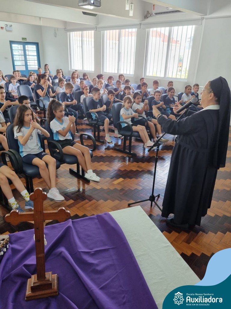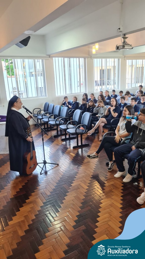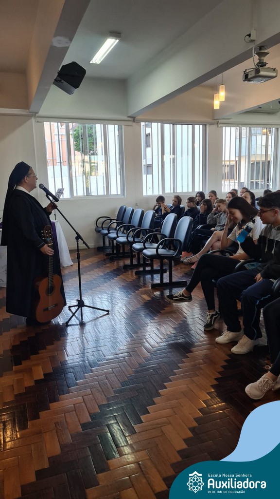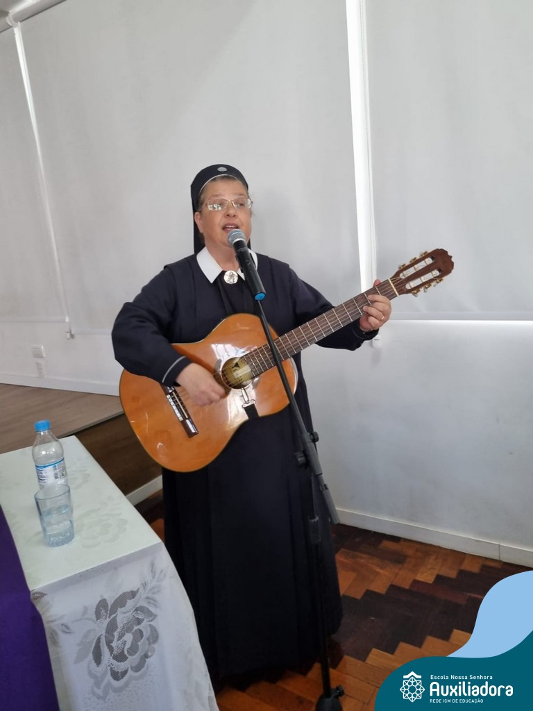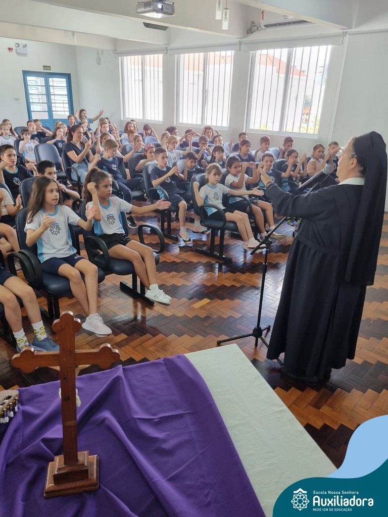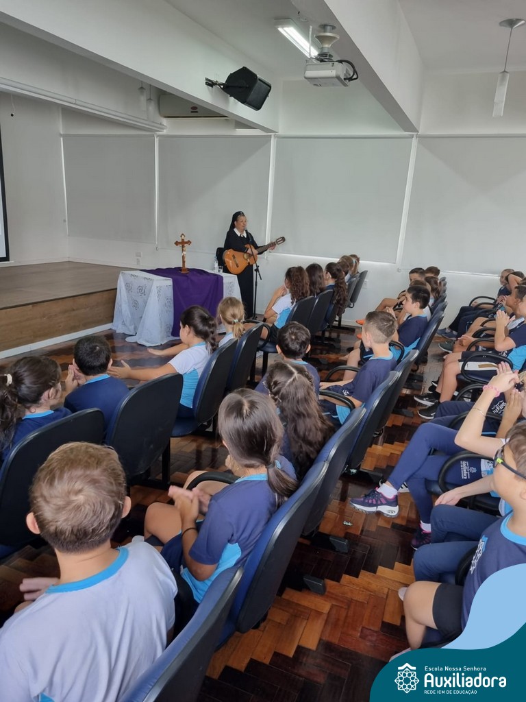 Na última segunda-feira, a nossa escola foi palco de uma emocionante serenata em homenagem a Jesus, realizada pela Irmã Elaine com sua voz com voz harmoniosa e suas palavras grandiosas, o ambiente foi preenchido com louvores e gratidão. Foi um momento de união e espiritualidade, onde os estudantes expressaram sua devoção e amor por meio da música. A serenata para Jesus certamente deixou uma marca profunda em todos os presentes, lembrando-nos do verdadeiro sentido da Páscoa, da nossa fé e da comunidade na nossa jornada escolar.